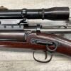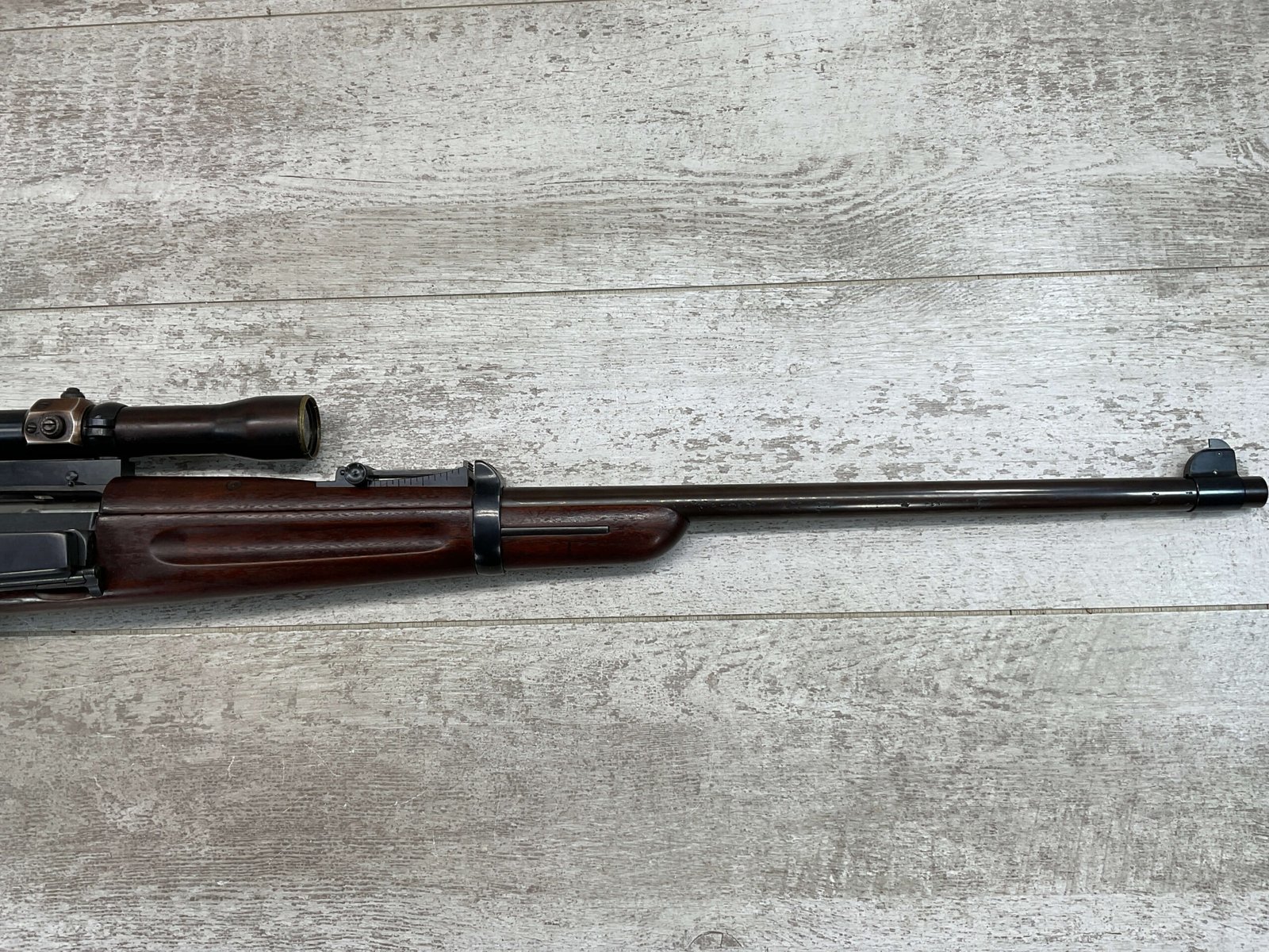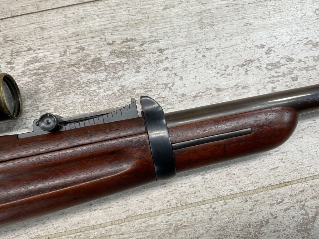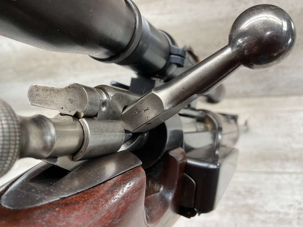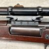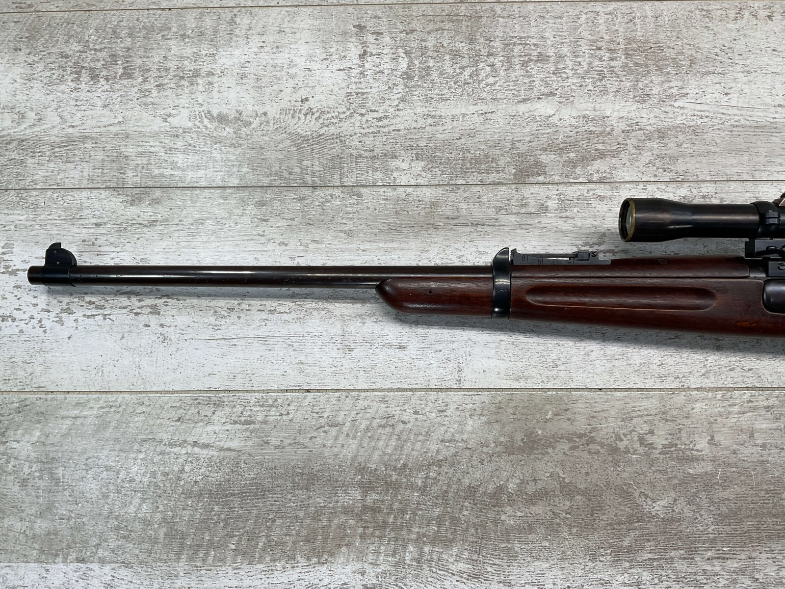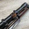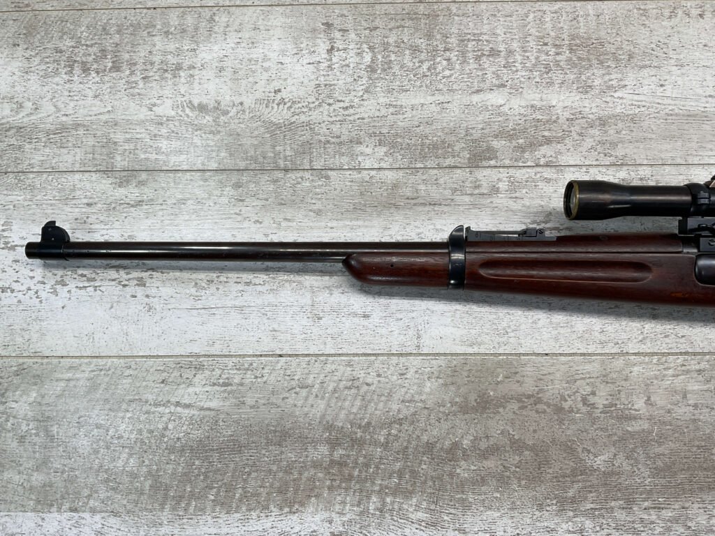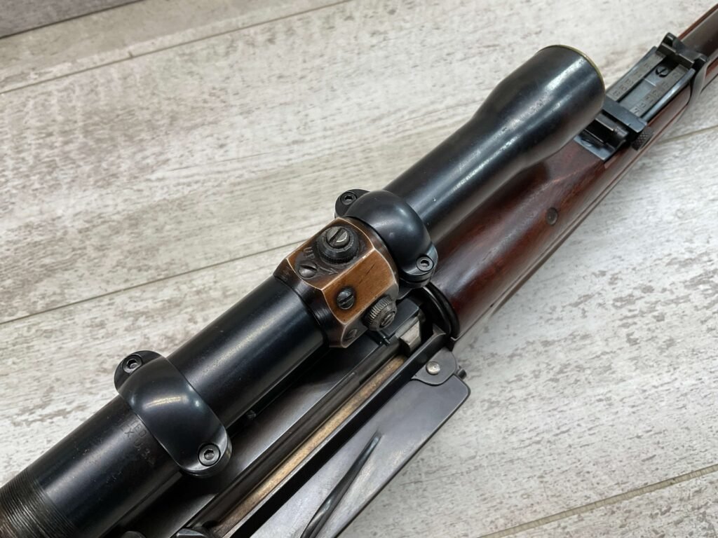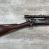 U.S. SPRINGFIELD 30-40 KRAG JORGENSEN MODEL 1898 BOLT ACTION CARBINE RIFLE #218897, BRIGHT BORE W/VG RIFLING, 90+% REFINISHED BLUE, EXC WOOD W/NORMAL DINGS/NICKS, 22″ BBL, REAR SIGHT GRADUATED FROM 7-18, “FLA/1897” CARTOUCHE ON LEFT SIDE, ALL MATCHING, SADDLE RING ON LEFT SIDE OF STOCK, PROFESSIONALLY CONVERTED TO CARBINE INCLUDING CONVERTED BORE TO .33-40,  SIDE MOUNT/QUICK DETACH MOUNT W/WEAVER  SCOPE, NICELY REFINISHED 30-40 KRAG BOLT ACTION RIFLE!!
