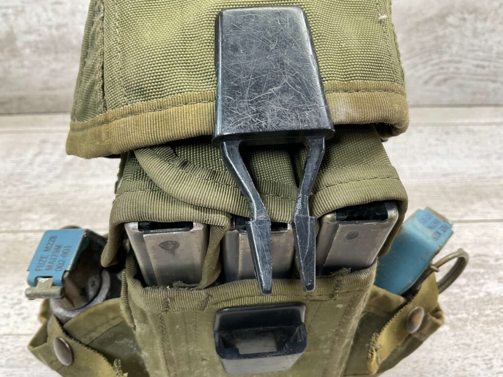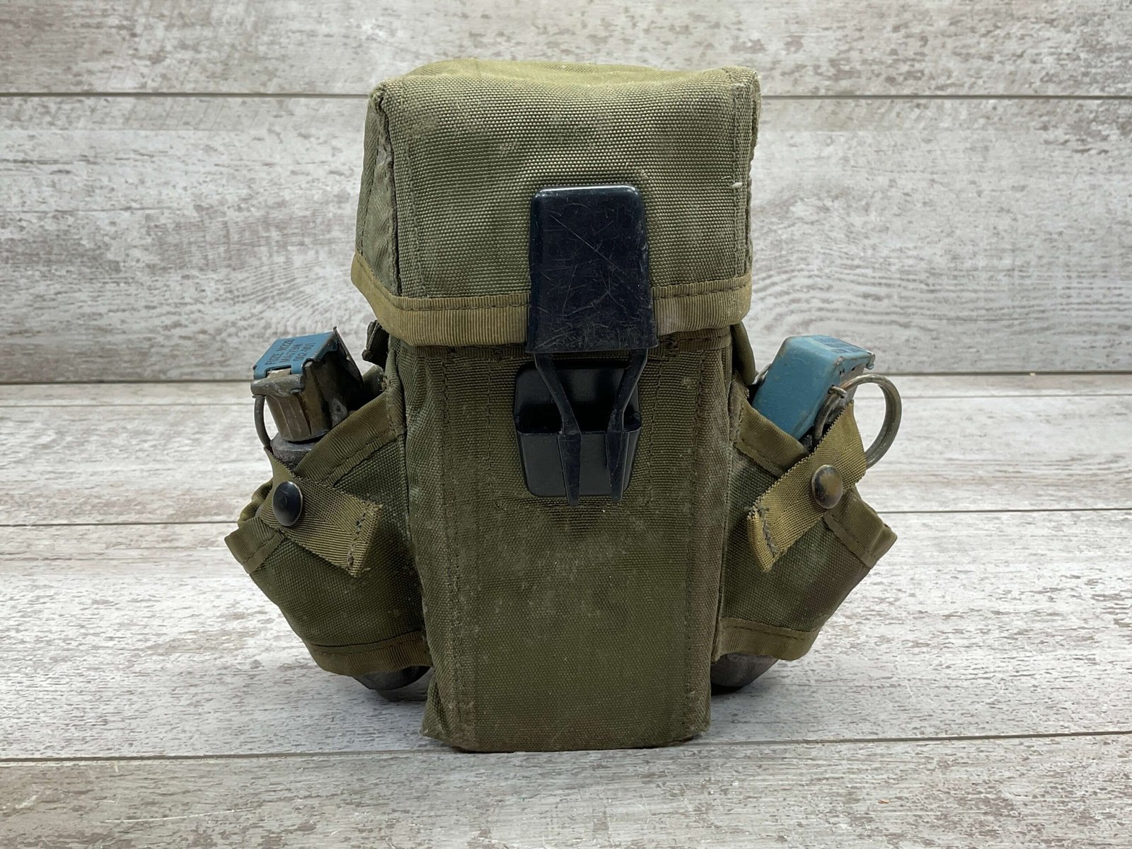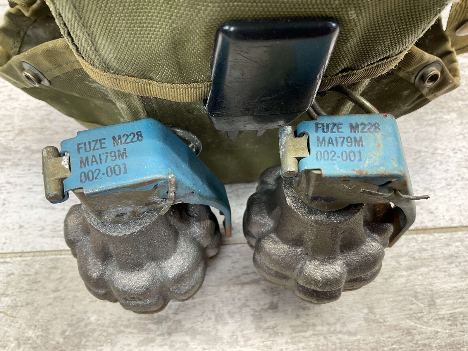 U.S. VIETNAM ERA M16 MAGAZINE & GRENADE POUCH, CONTAINS 3 MAGS & 2 DEMILLED GRENADES
