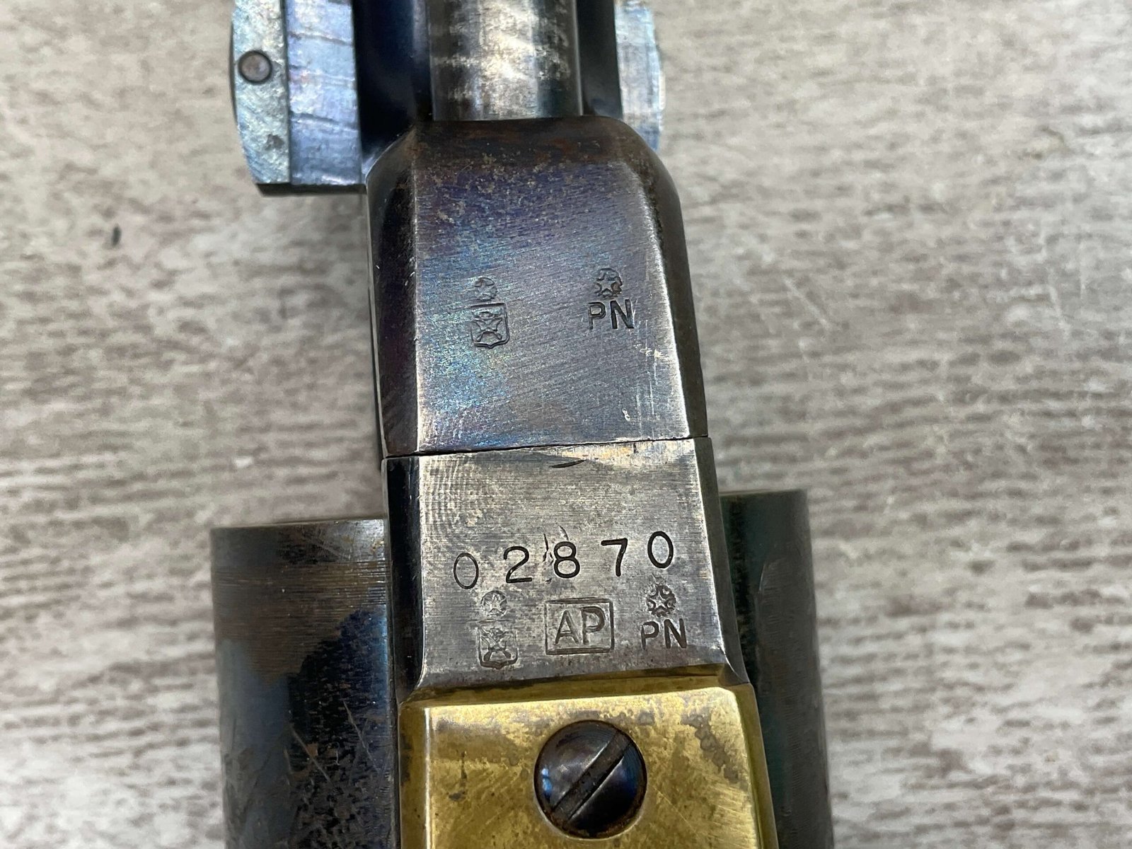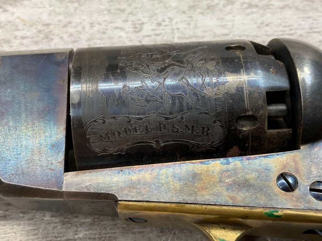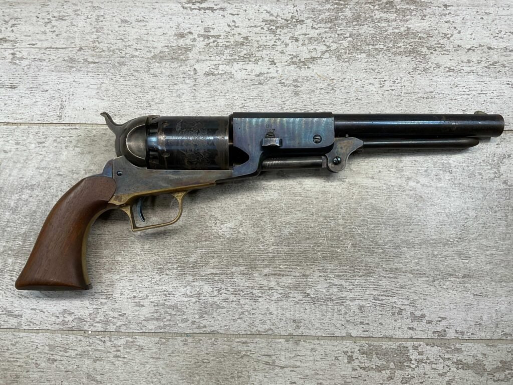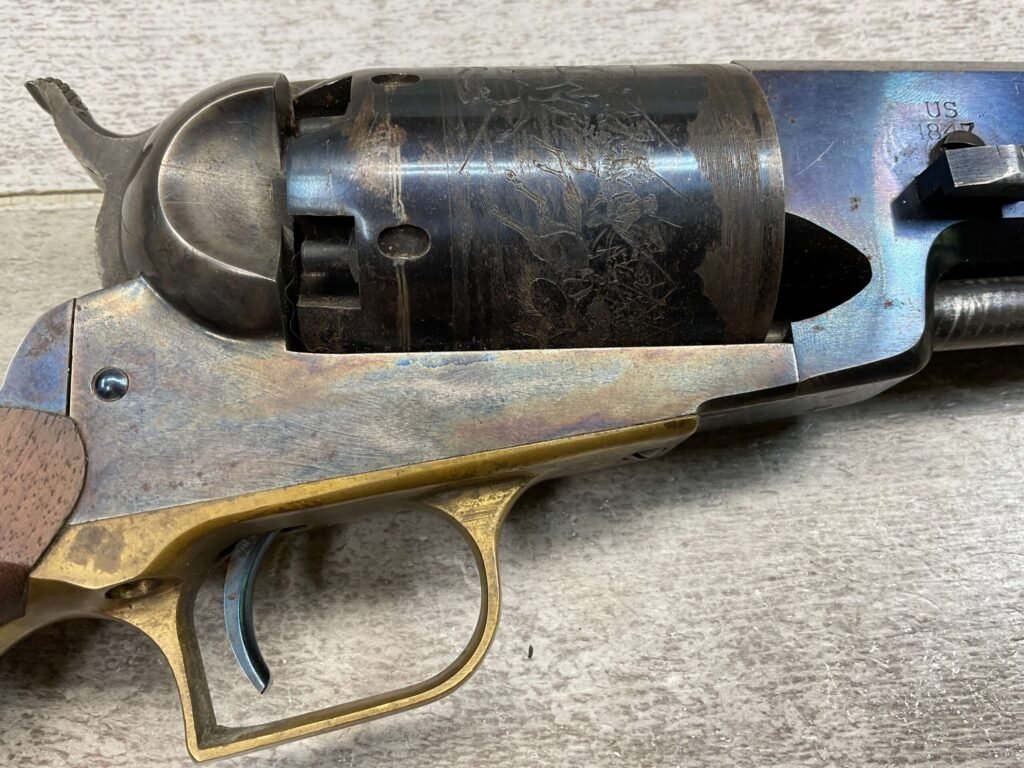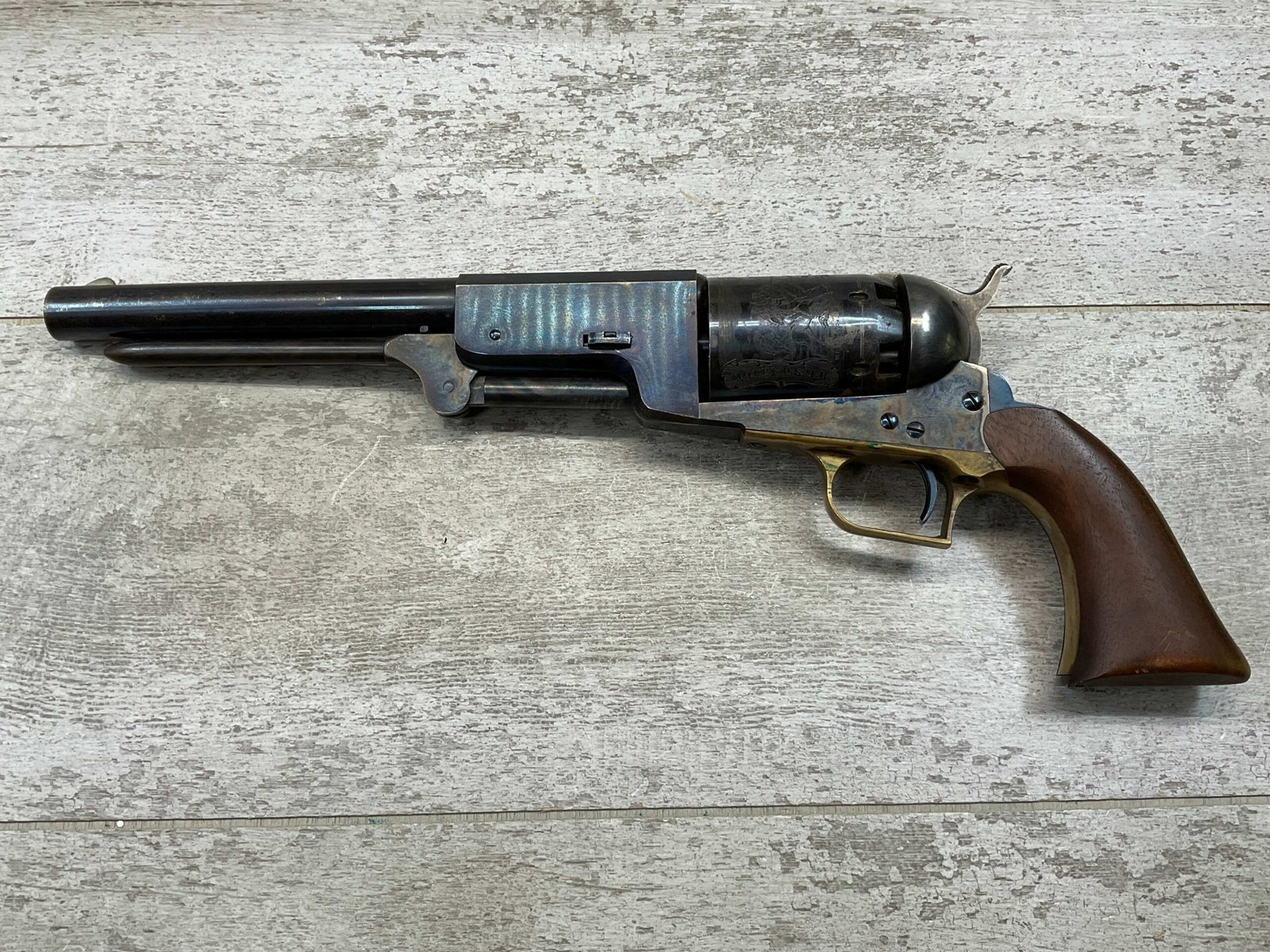 UBERTI U.S. M1847 WALKER DRAGOON PERCUSSION REVOLVER, ANTIQUE, #02870, CYLINDER MARKED WITH ENGRAVINGS AND “MODEL U.S.M.R.”, RIGHT SIDE OF FRAME MARKED “IS / 1847”, NEAR TRIGGER GUARD MARKED WITH SERIAL AND PROOFS, MARKED UNDER LOADING LEVER “CAL .44 BLACK POWDER ONLY” WITH UBERTI MARKING TO THE RIGHT,