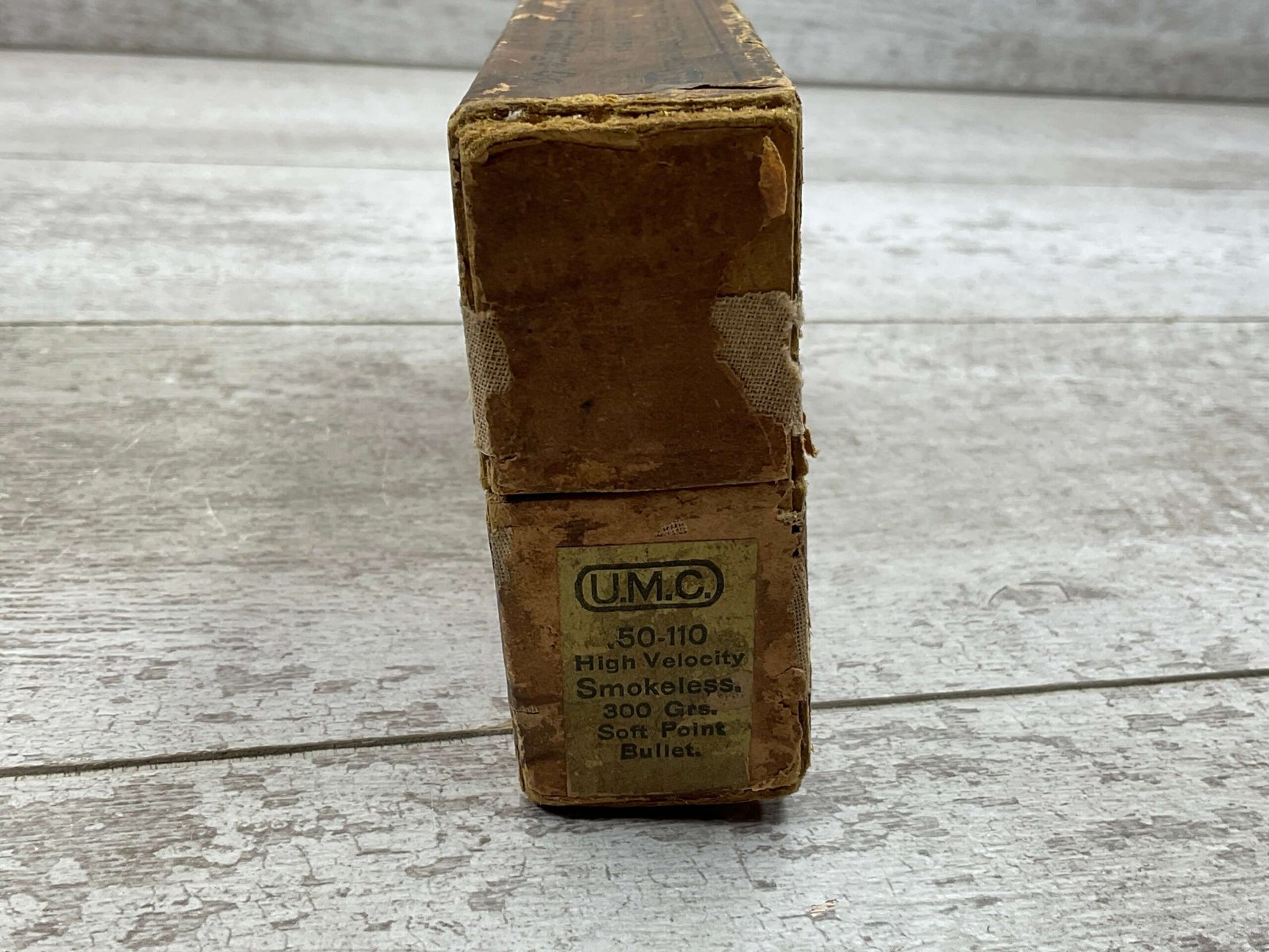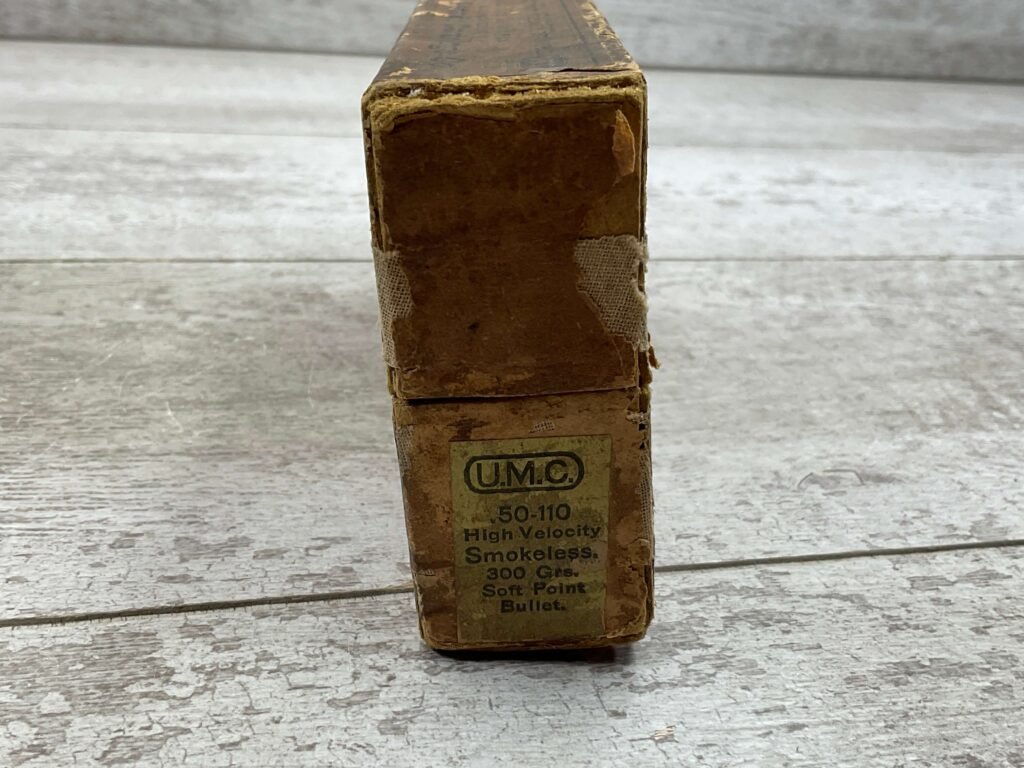UMC .50-110 HIGH VELOCITY SMOKELESS, EMPTY BOX, RARE, VINTAGE, GOOD OVERALL CONDITION BUT A BIT WORN FROM AGE.