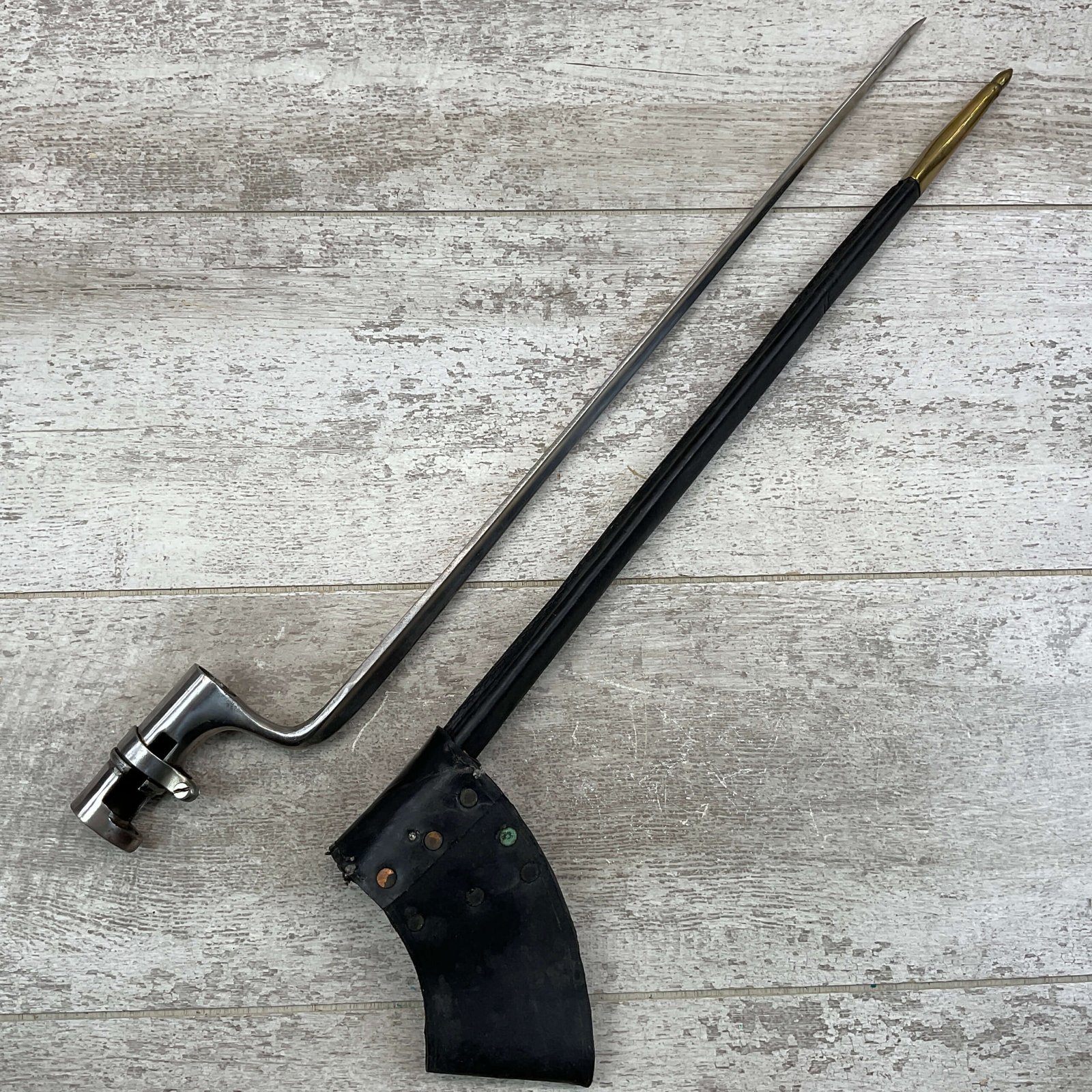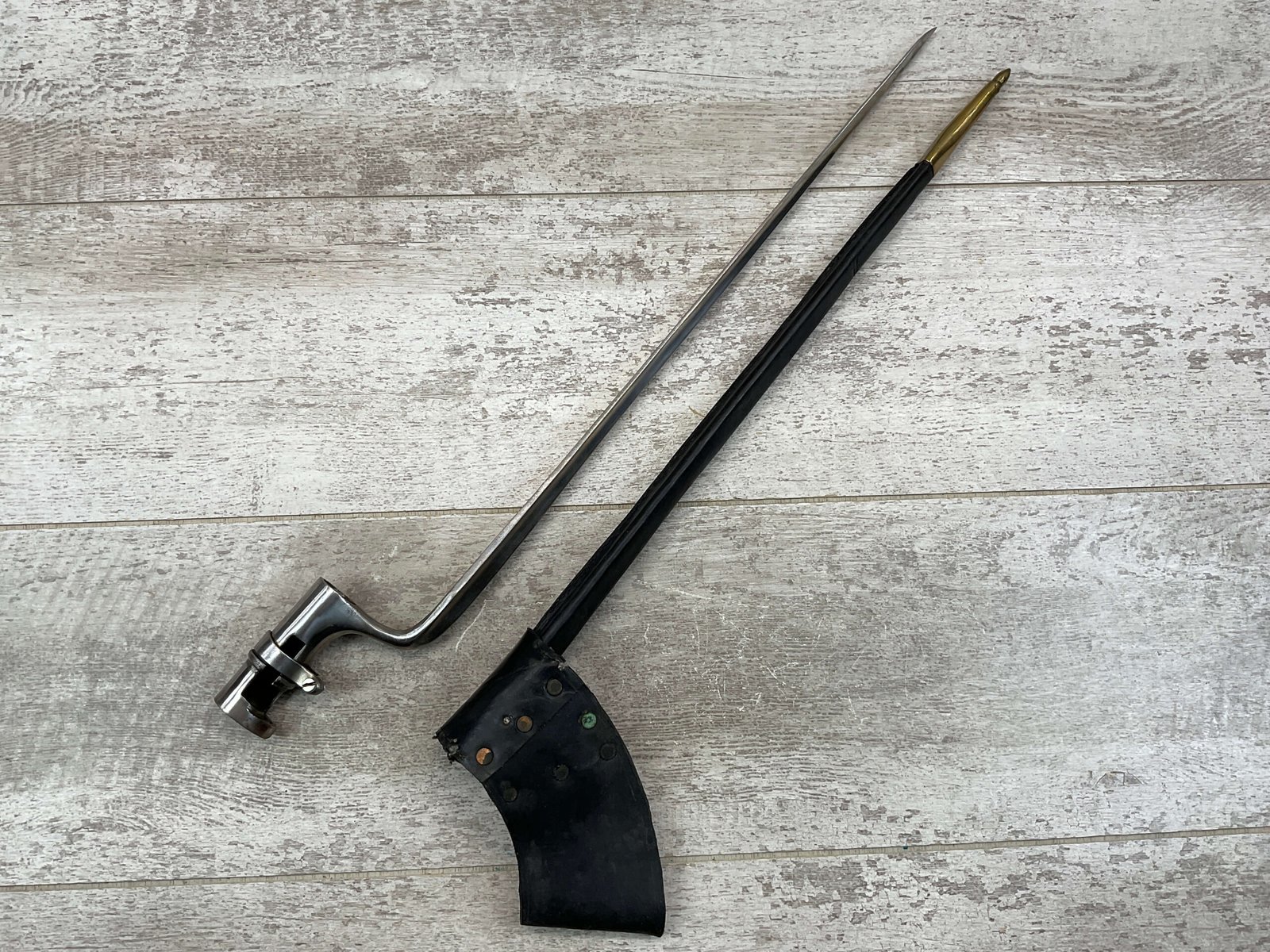 UNMARKED U.S. CIVIL WAR ERA SOCKET BAYO W/ SCABBARD, FOR M1855-70, VINTAGE, NEITHER BAYO NOR SCABBARD ARE MARKED, BUT IN EXC CONDITION FOR AGE!