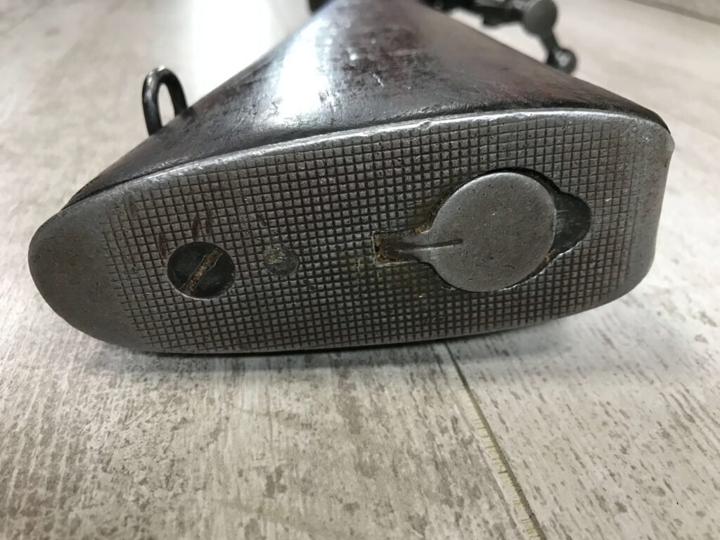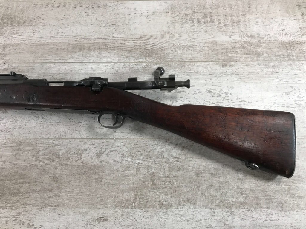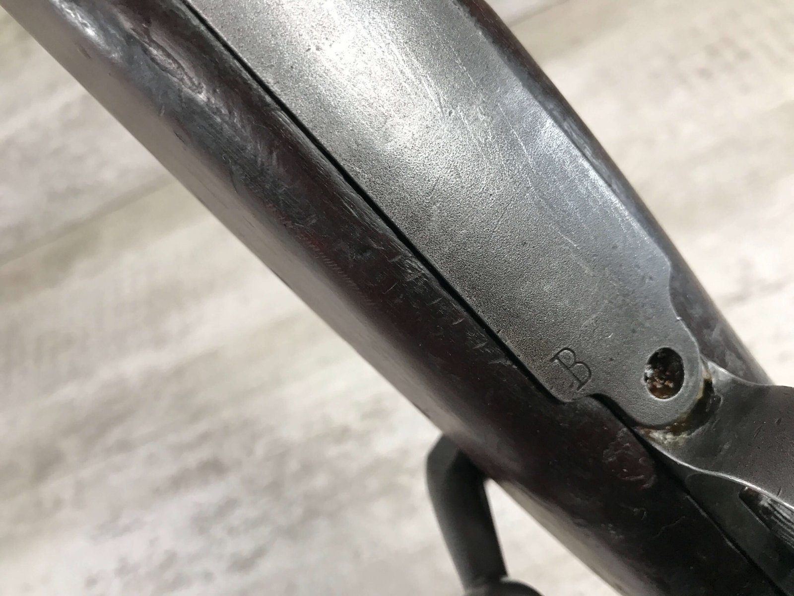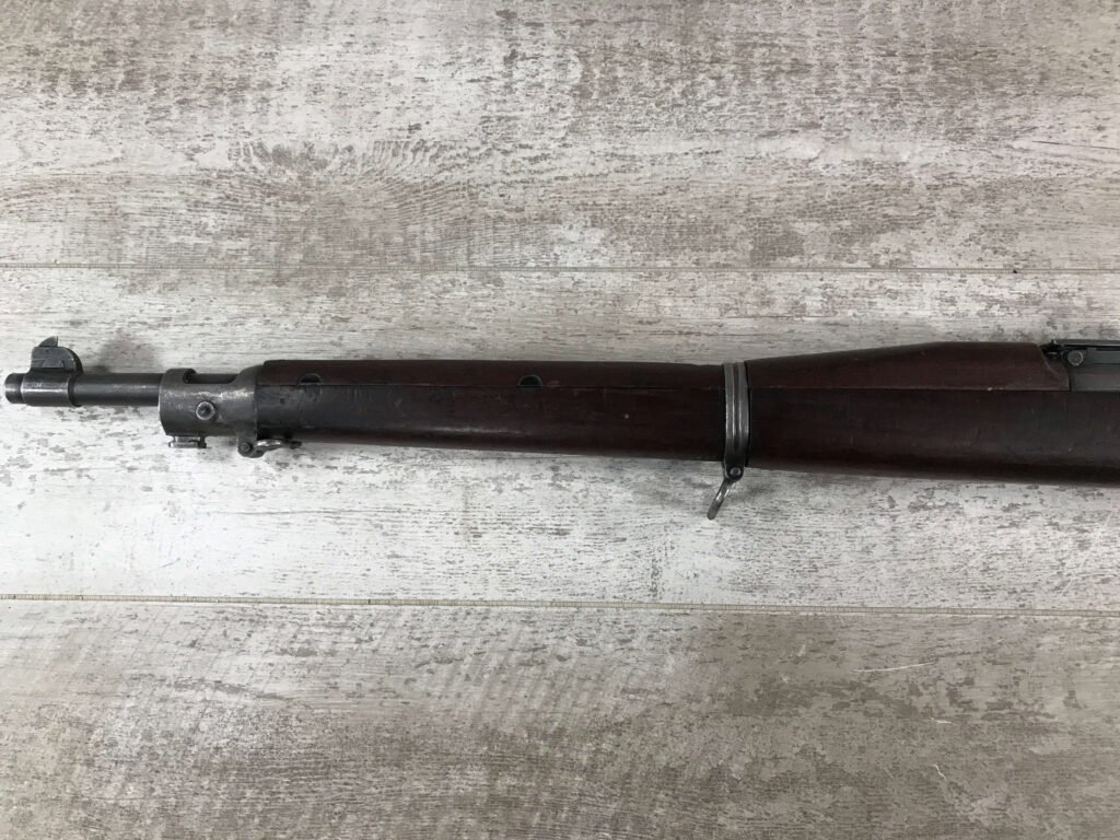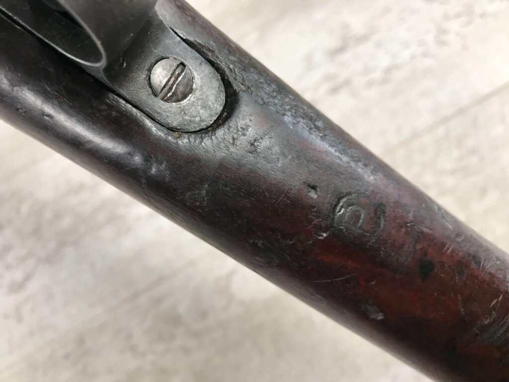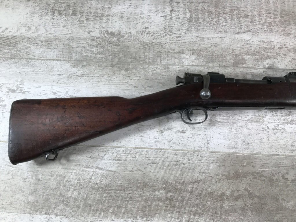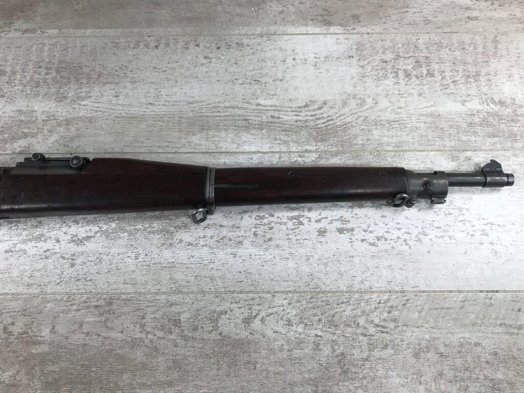 US SPRINGFIELD 1903 MARK I W/PEDERSON DEVICE CUTOUT BOLT ACTION RIFLE, #1127957, 30-06, PEDERSON MACHINED SLOT, 270 YRD REAR SIGHT, BLADE FRONT SIGHT, SA/FLAMING BOMB/6-42 BBL (REBARREL), VG ORIGINAL BLUE, GOOD WOOD W/NICKS AND DENTS, CIRCLE P BEHIND TRIGGER, EXC BRIGHT BORE W/VG RIFLING, 85+% OVERALL