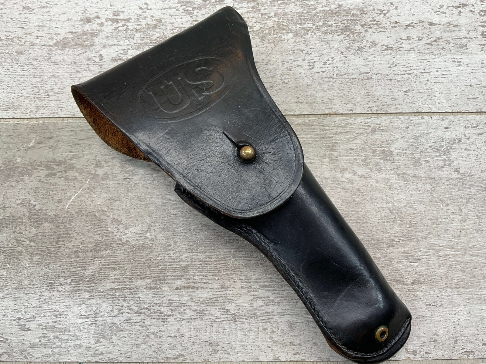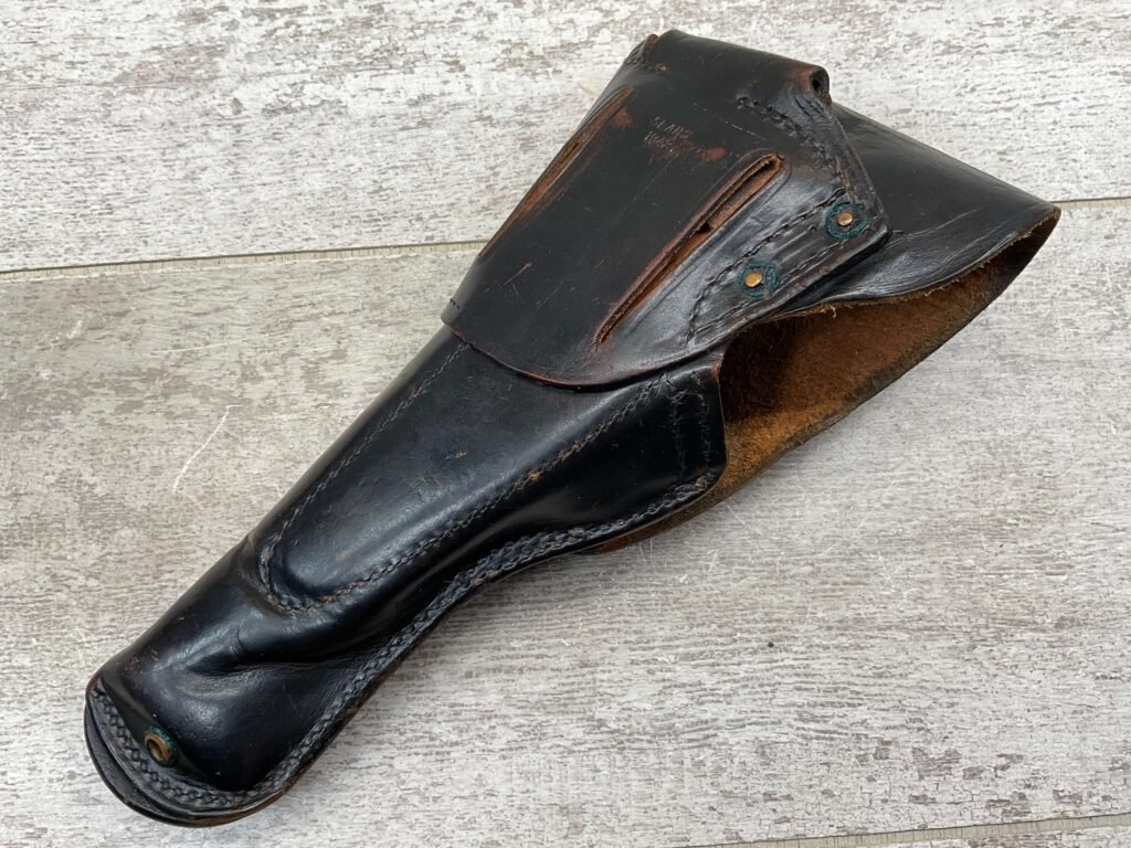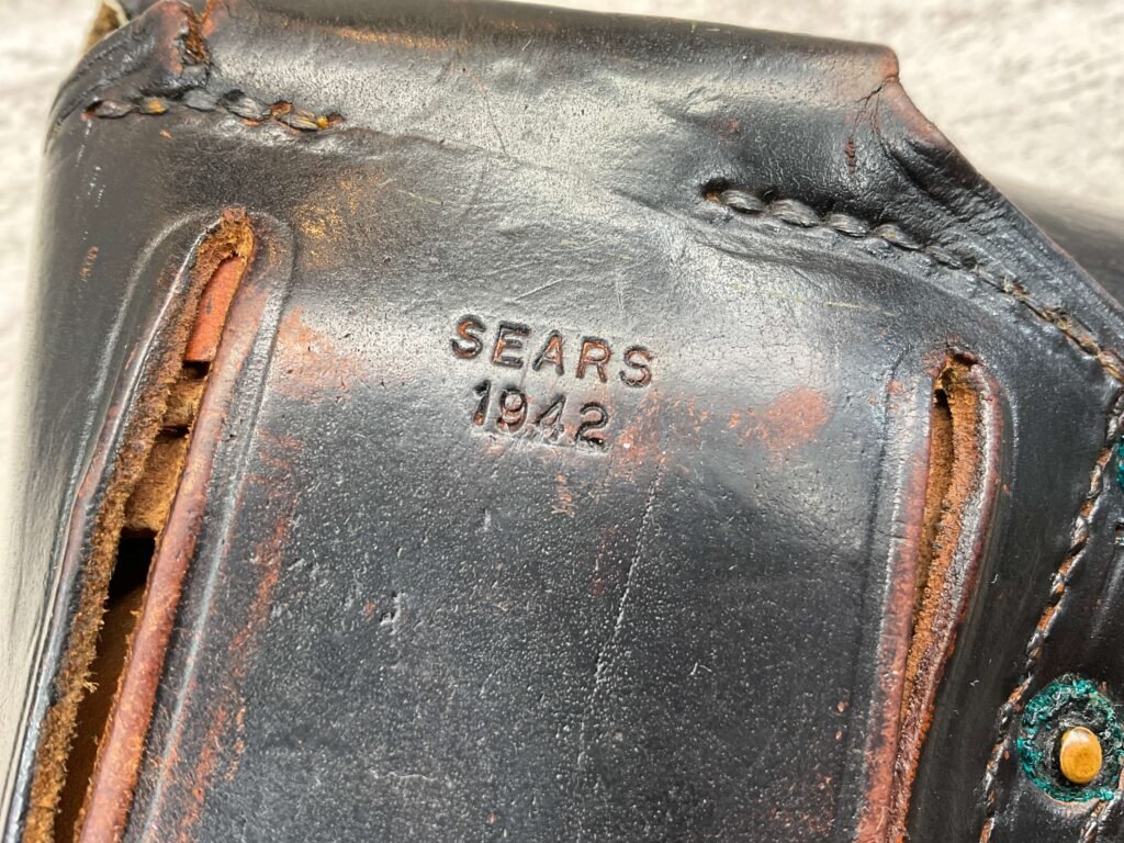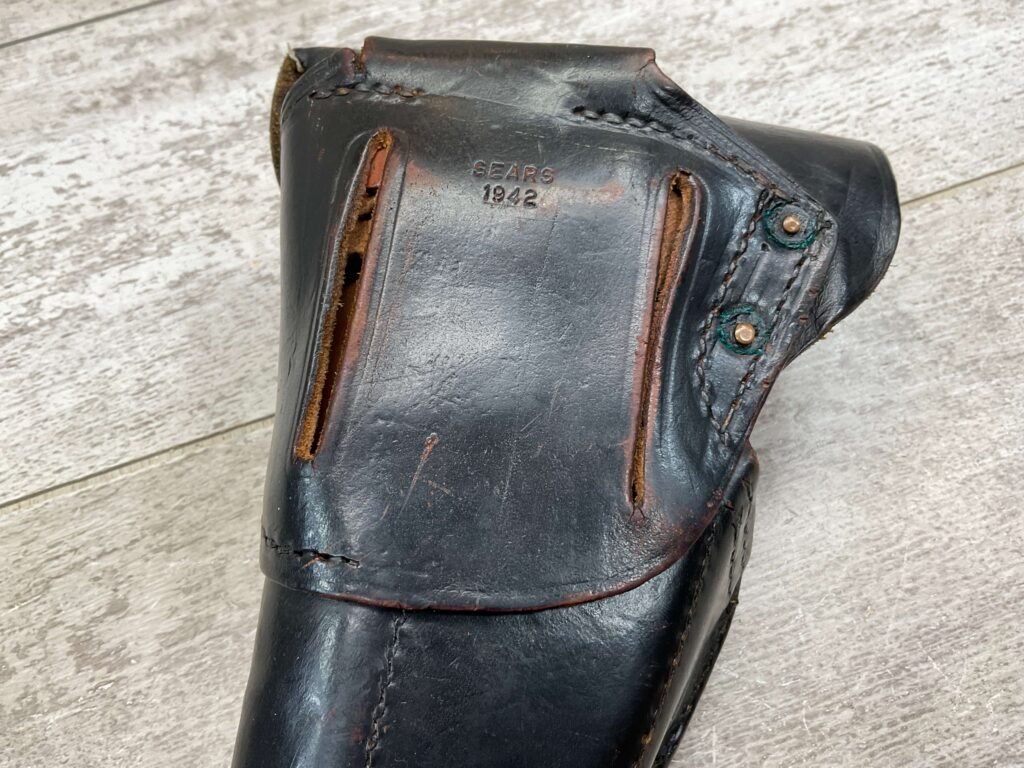 US WW2 1911 BLACK HOLSTER MARKED SEARS 1942, VG-EXC BLACK FINISH, NO WIRE BELT HANGER, EXC STITCHING, VG-EXC OVERALL