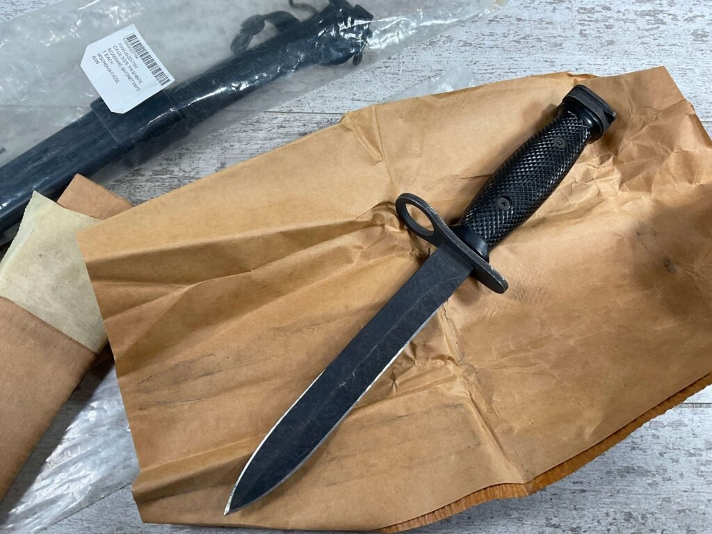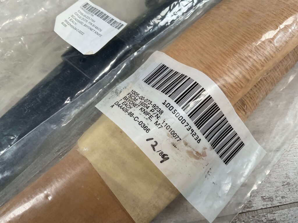 USGI M7 BAYONET W/M10 SCABBARD, UNOPENED PACKAGE, DATED 12/89, EXC CONDITION