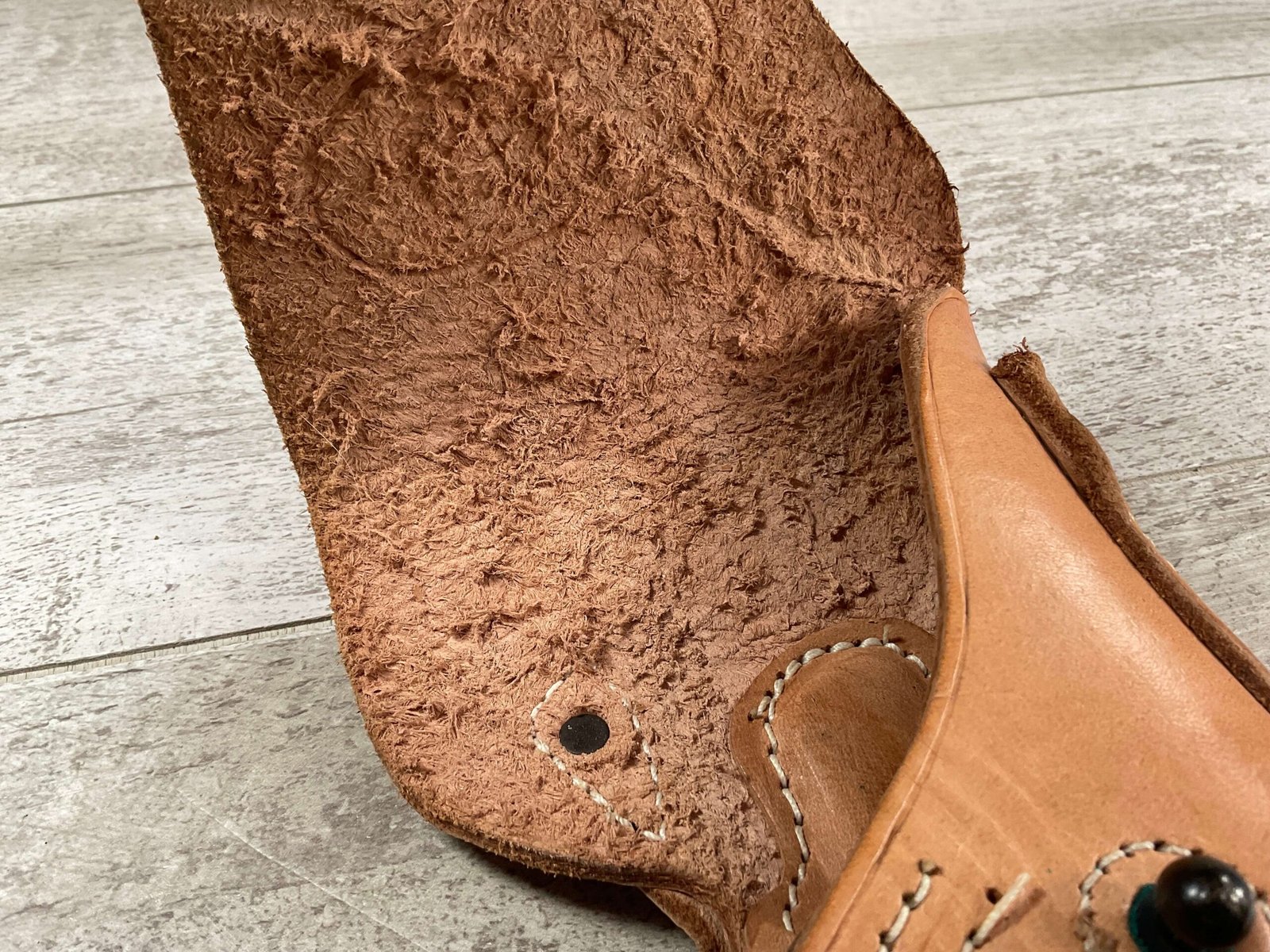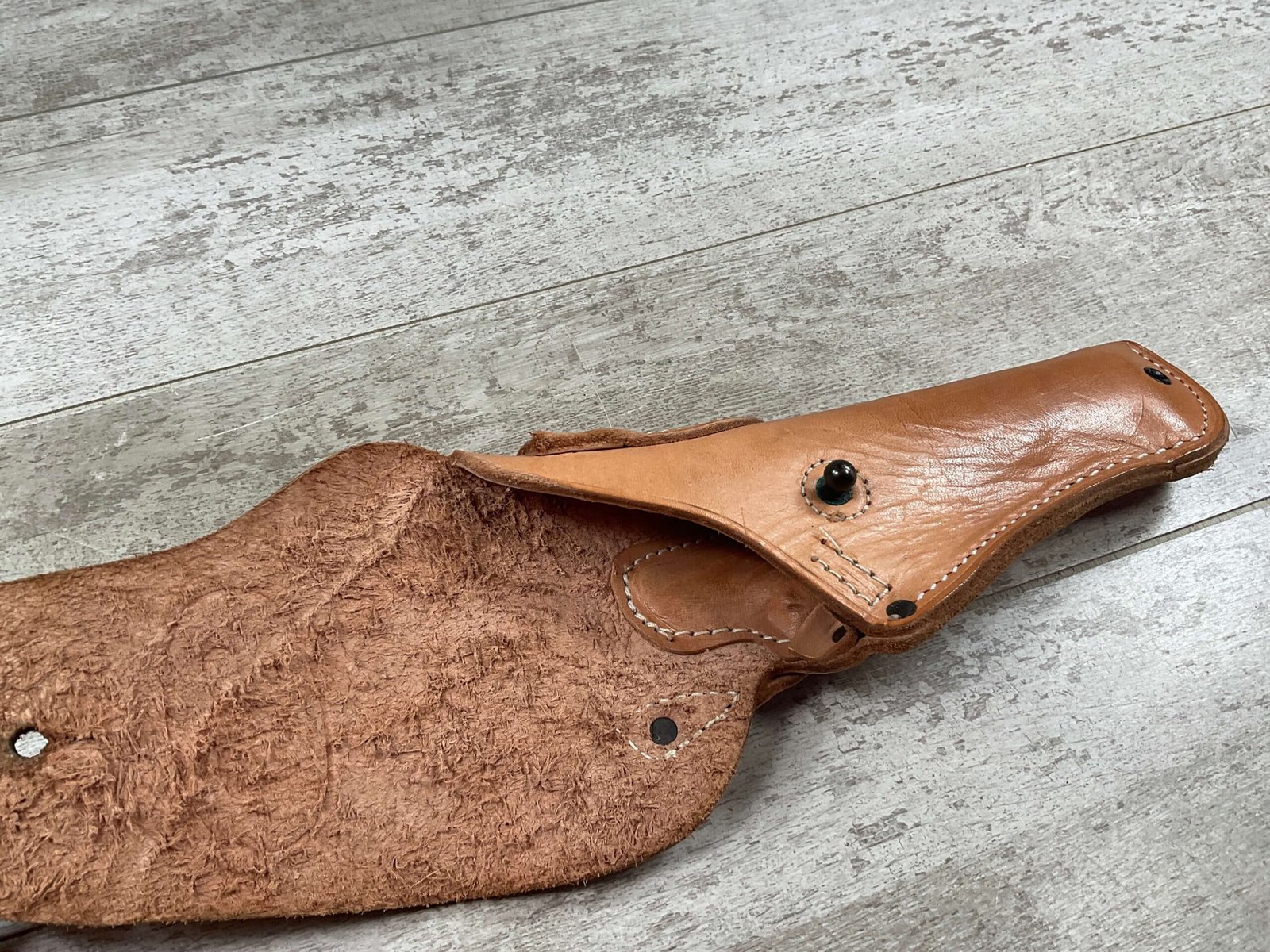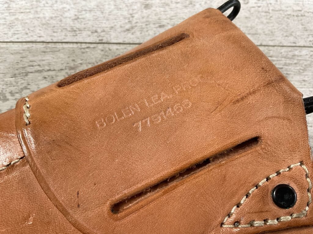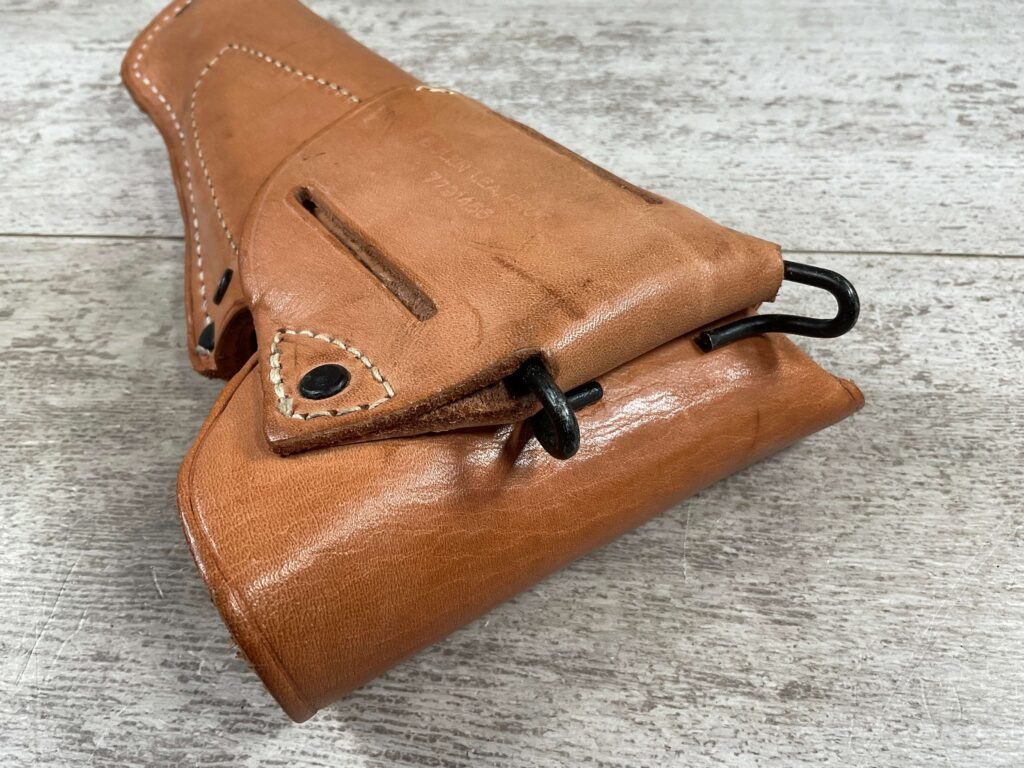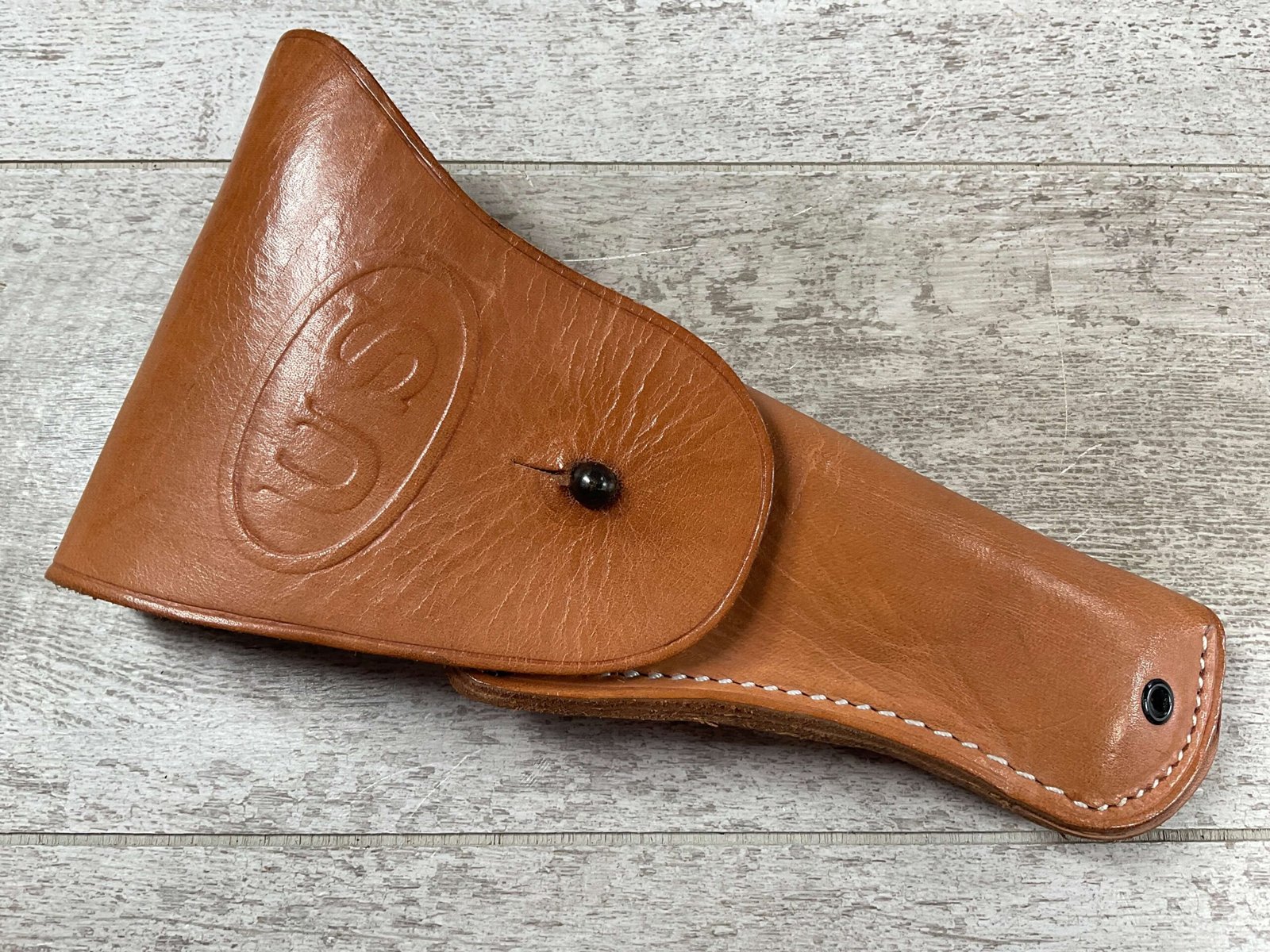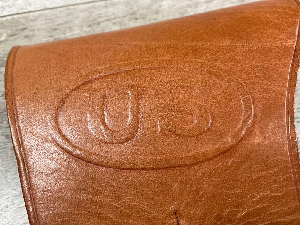 VIETNAM ERA US COLT 1911 TAN HOLSTER, “US” EMBOSSED ON THE FRONT FLAP, “BOLEN LEA PROD / 7791466” STAMPED ON BELT LOOP, SUPPLIER OF HOLSTERS DURING THE VIETNAM WAR AND SUPPLIED TO THE US MILITARY, EXC MINTY OVERALL CONDITION