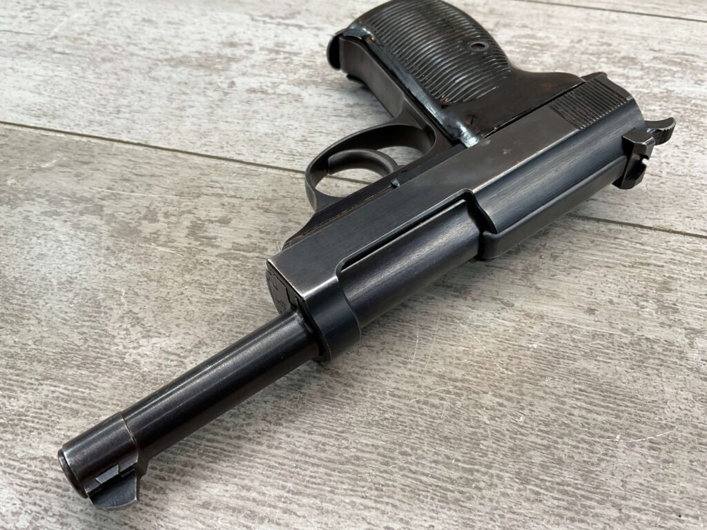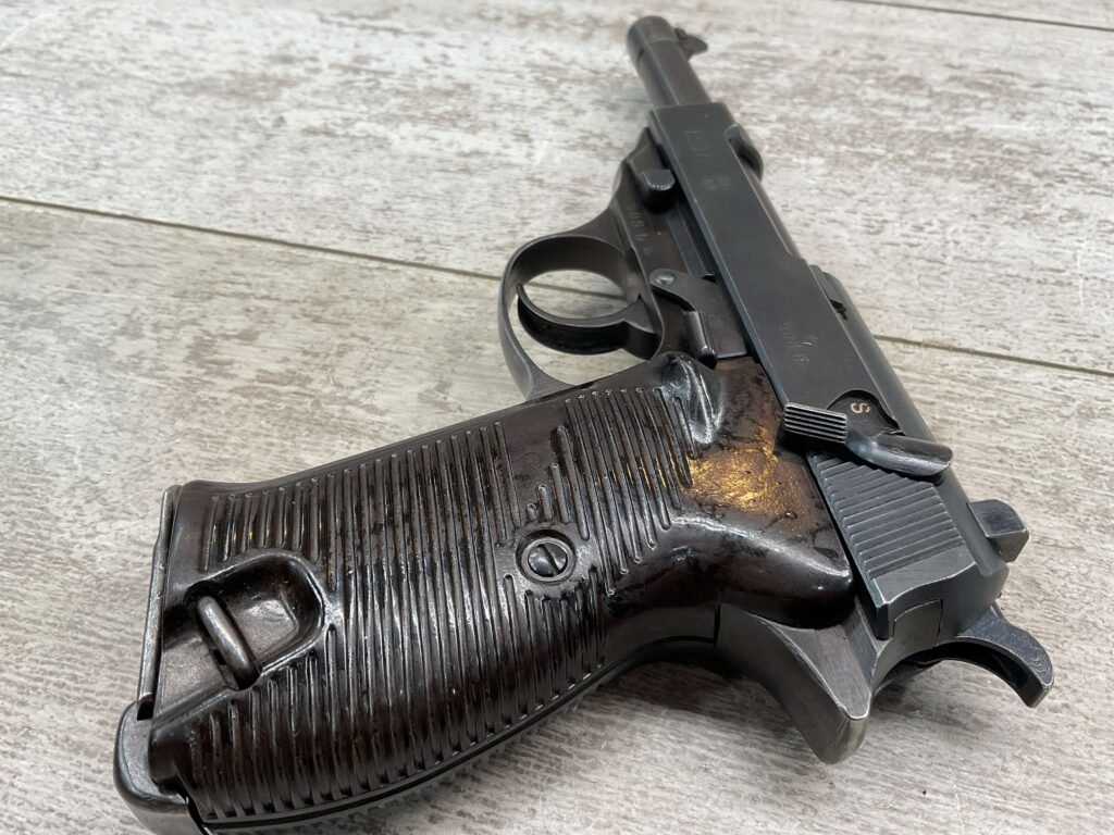 The P38 was known for its reliability, ease of use, and innovative features for its time, such as a decocker safety mechanism. It became a symbol of German military hardware during World War II and has remained popular among collectors and enthusiasts of firearms history.