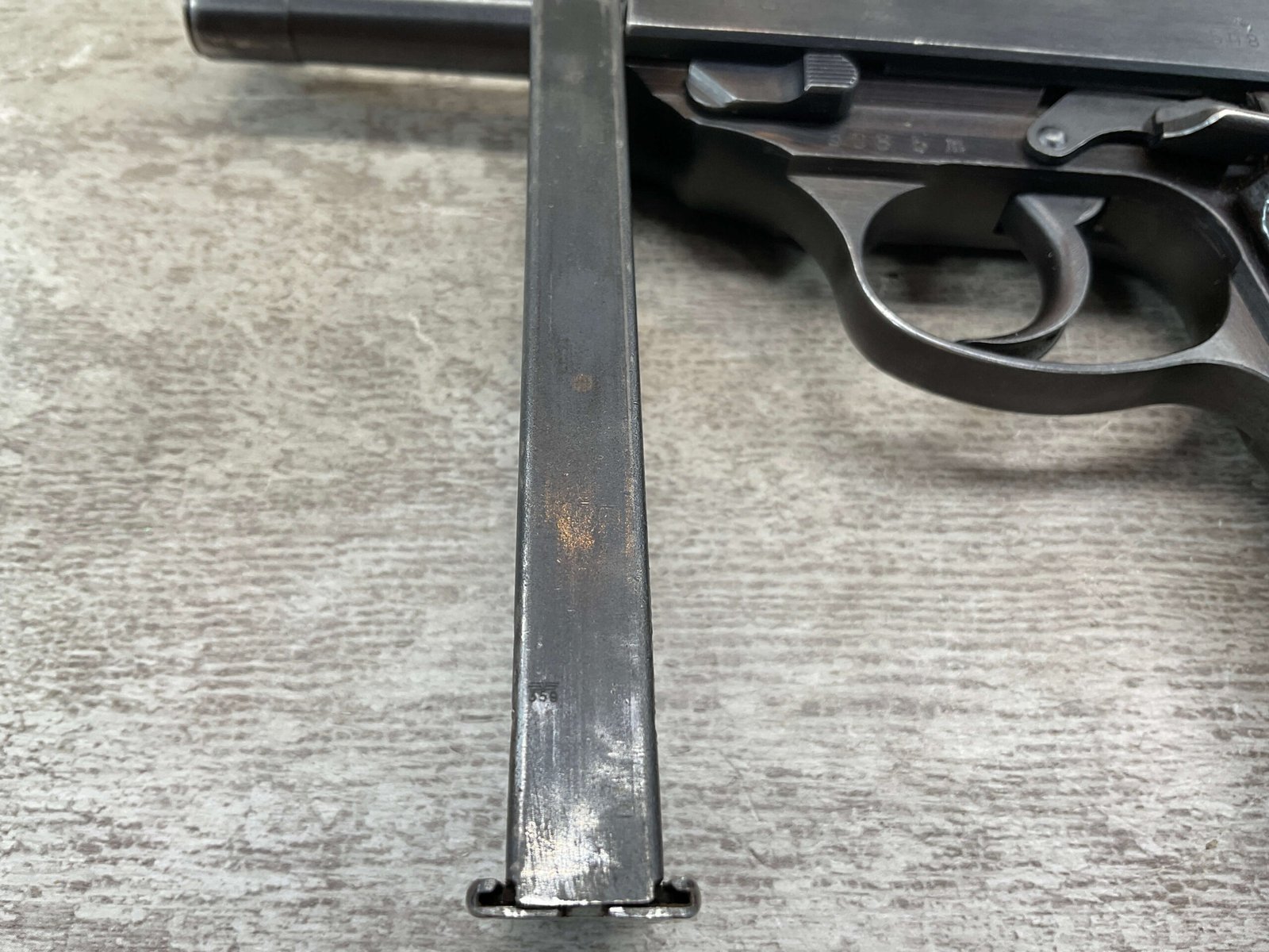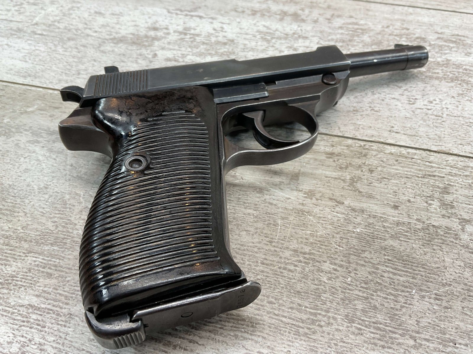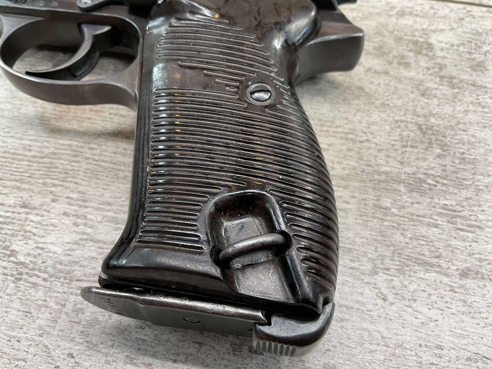 The P38 was known for its reliability, ease of use, and innovative features for its time, such as a decocker safety mechanism. It became a symbol of German military hardware during World War II and has remained popular among collectors and enthusiasts of firearms history.