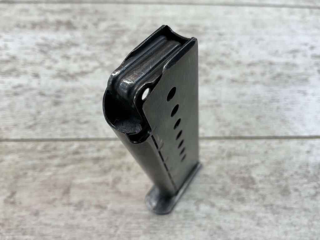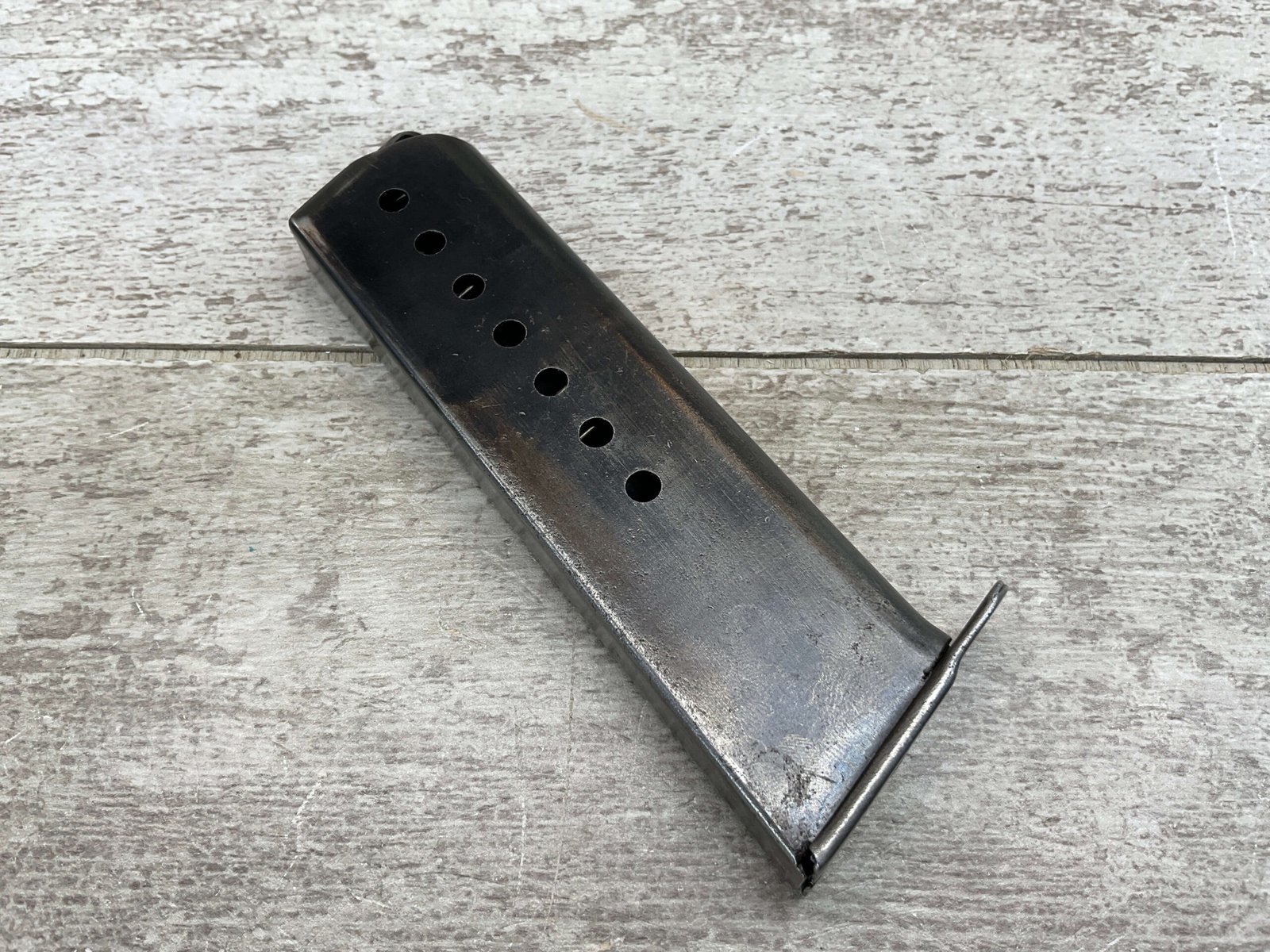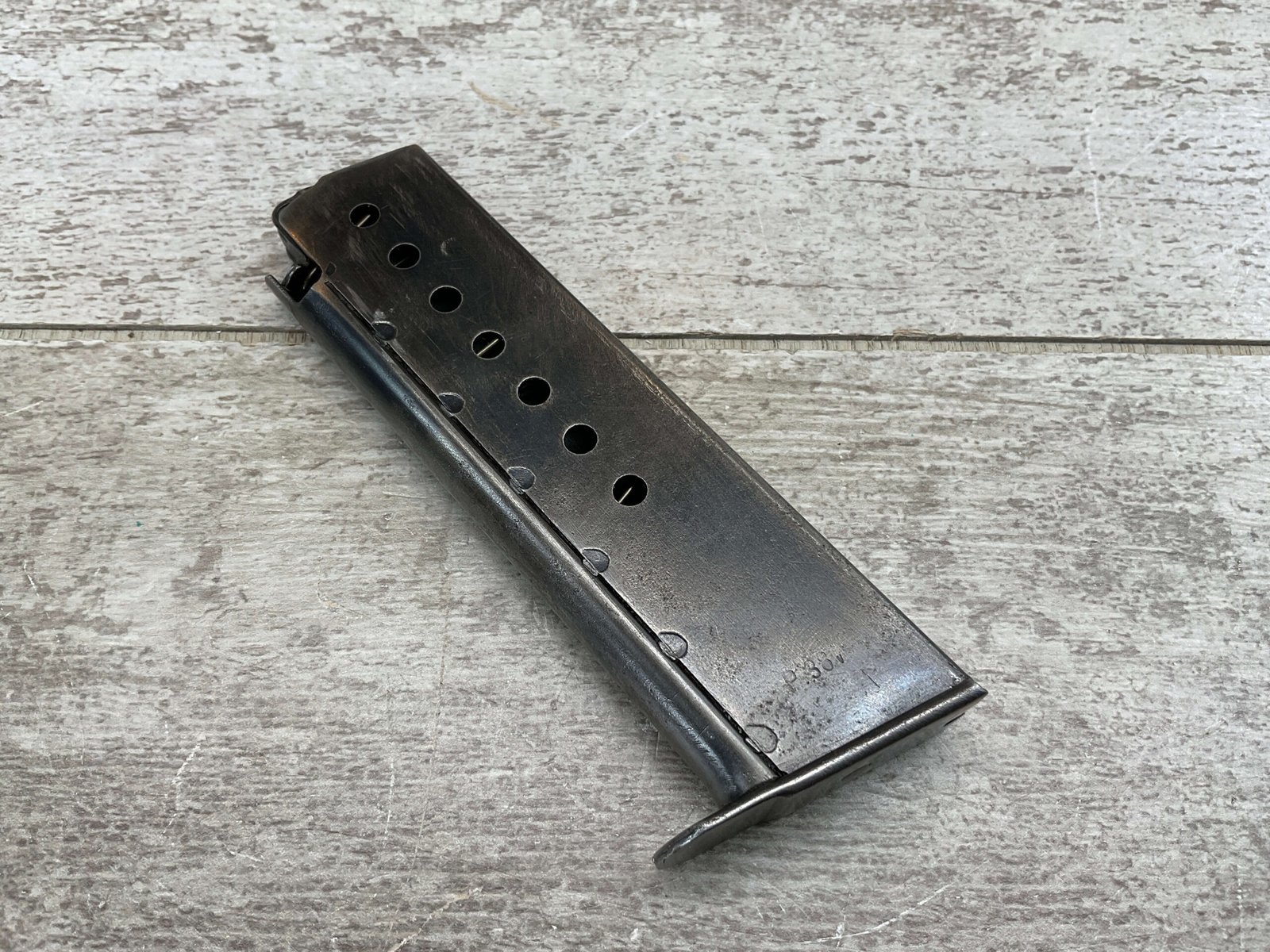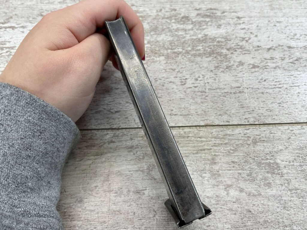 FACTORY ORIGINAL, WALTHER PRODUCED MAGAZINE FOR P38, RIGHT SIDE MARKING “P.38v”, LEFT SIDE MARKING, NONE. SPINE MARKING “E/359” , LITE WEAR, VG. CONDITION
