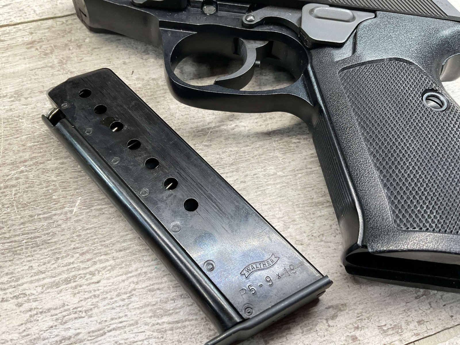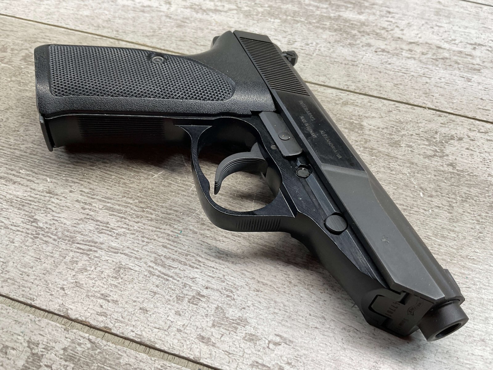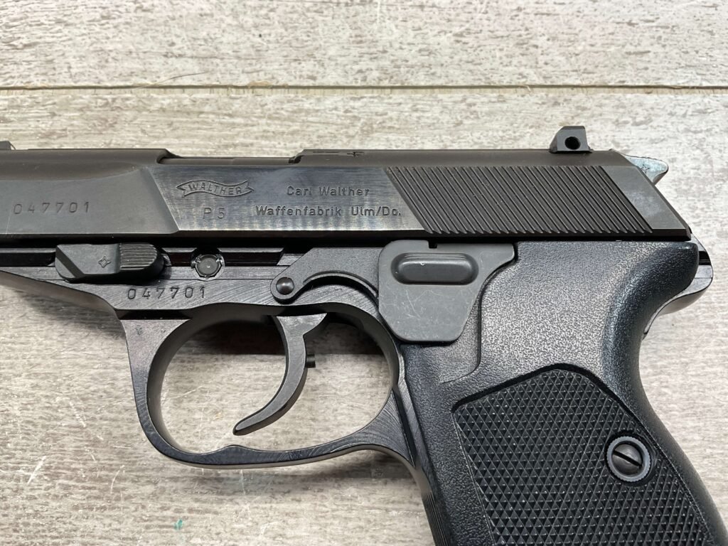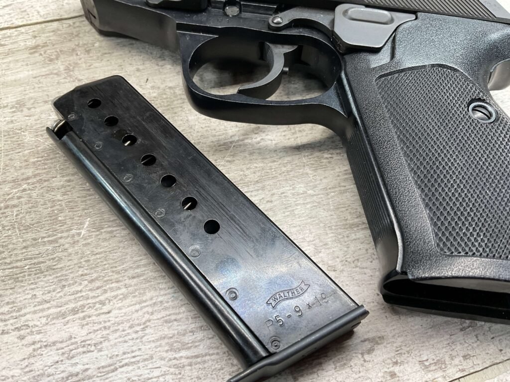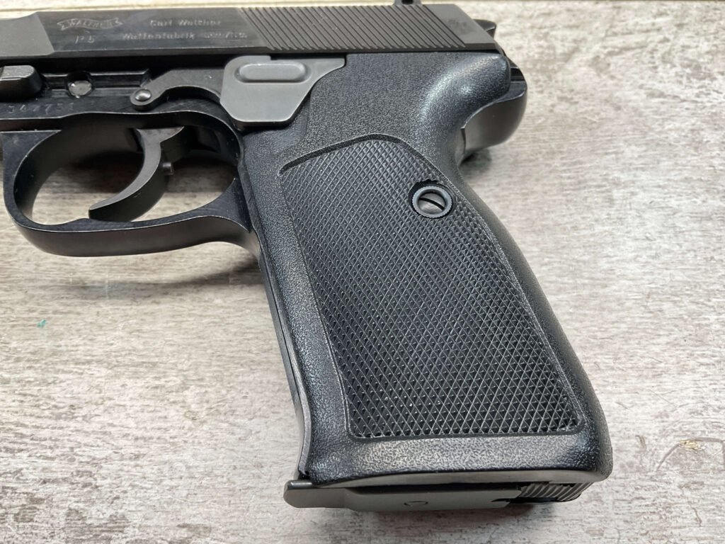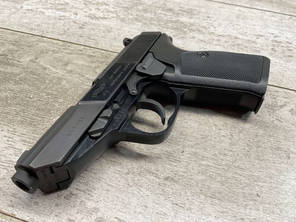 The P5 was especially designed for use as a police pistol. This double-action (DA/SA) pistol does not have a safety lever. It only has a decocking lever that also serves as a slide catch. It features an alloy frame and adjustable sights.