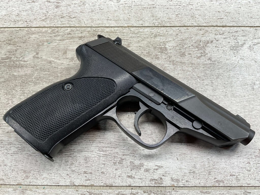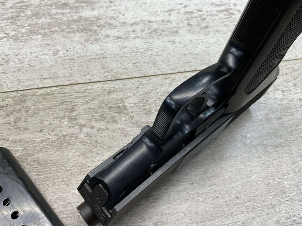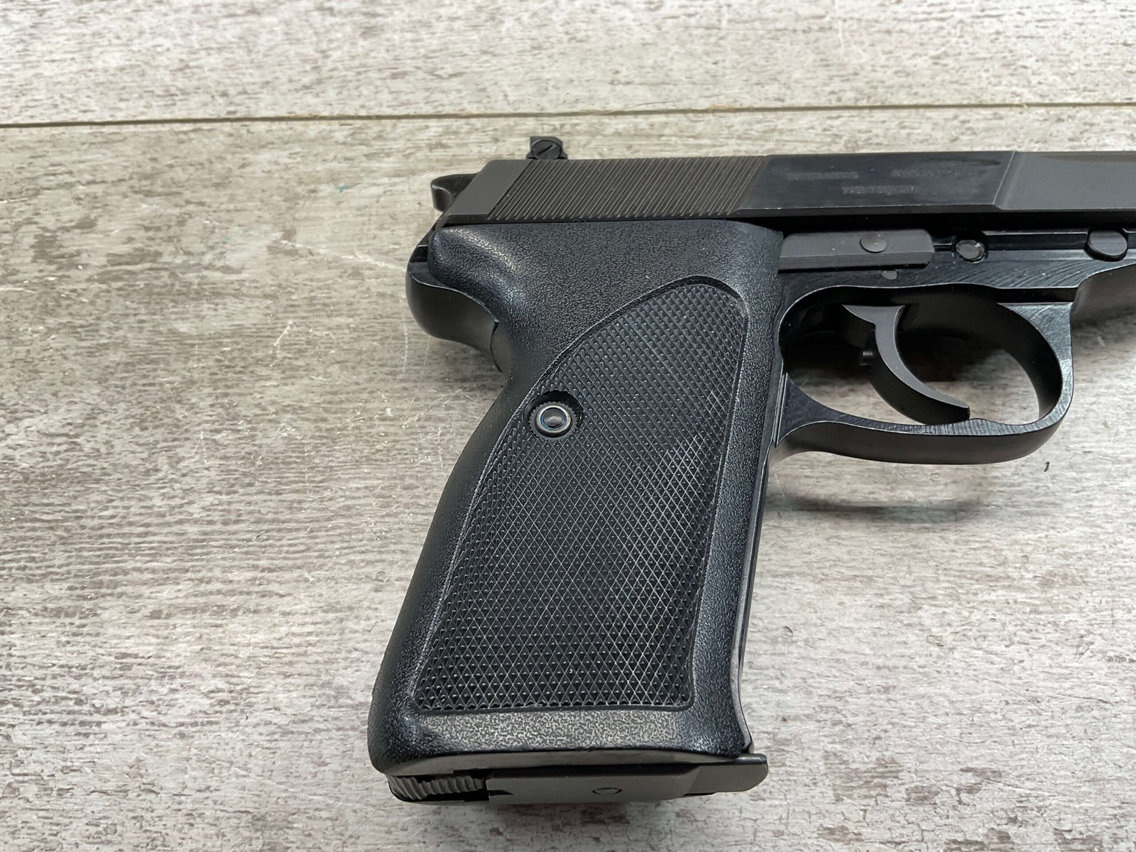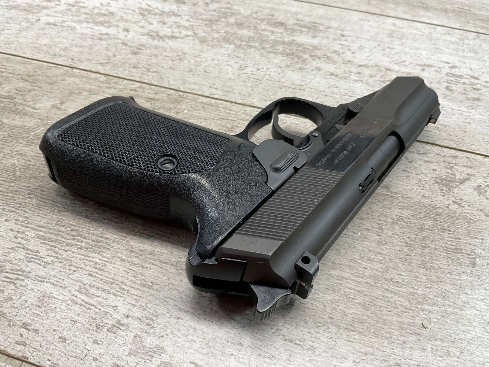 The P5 was especially designed for use as a police pistol. This double-action (DA/SA) pistol does not have a safety lever. It only has a decocking lever that also serves as a slide catch. It features an alloy frame and adjustable sights.