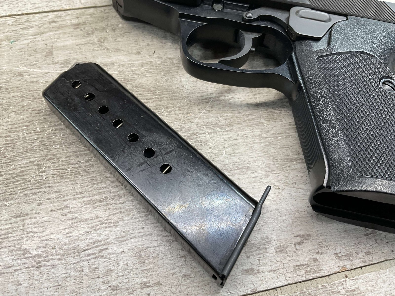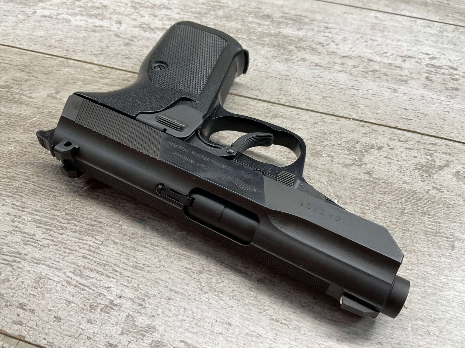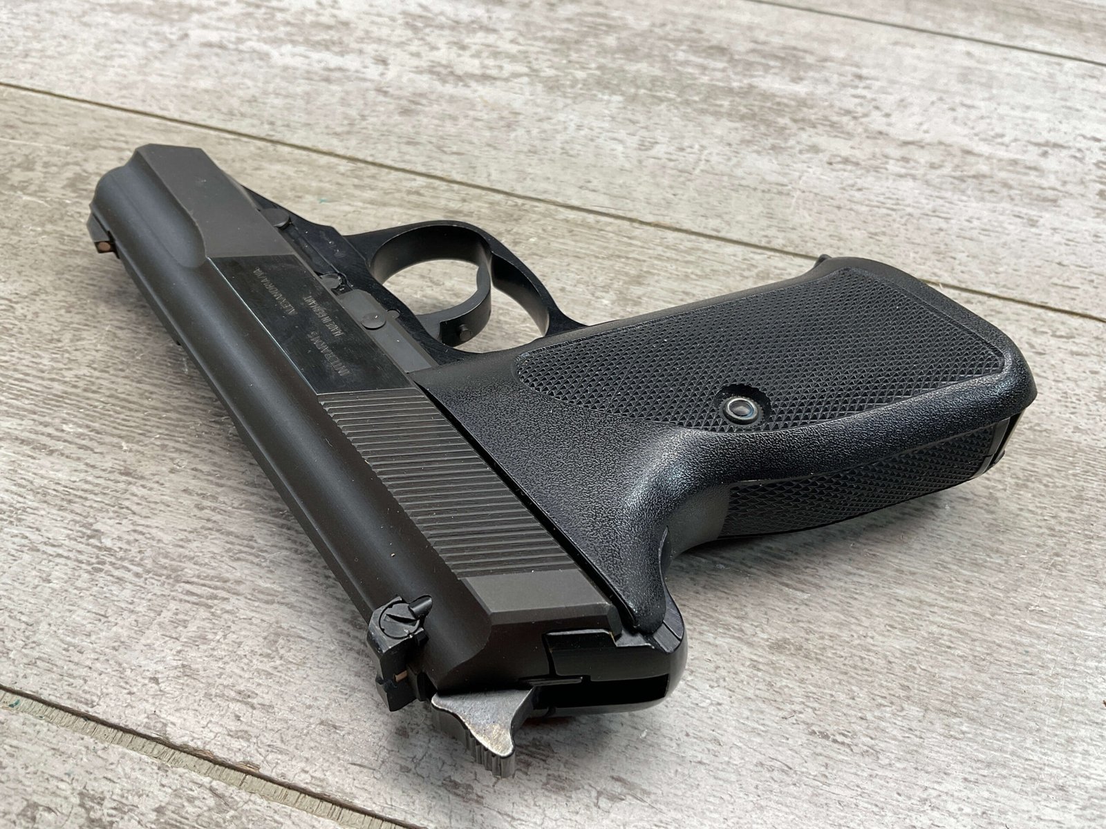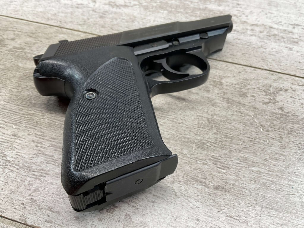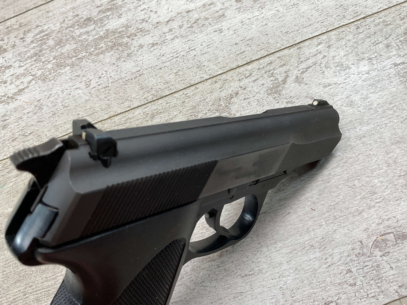 The P5 was especially designed for use as a police pistol. This double-action (DA/SA) pistol does not have a safety lever. It only has a decocking lever that also serves as a slide catch. It features an alloy frame and adjustable sights.