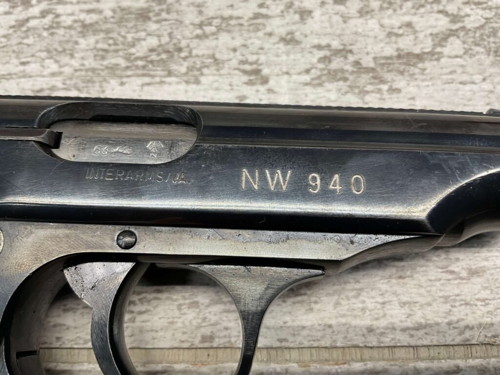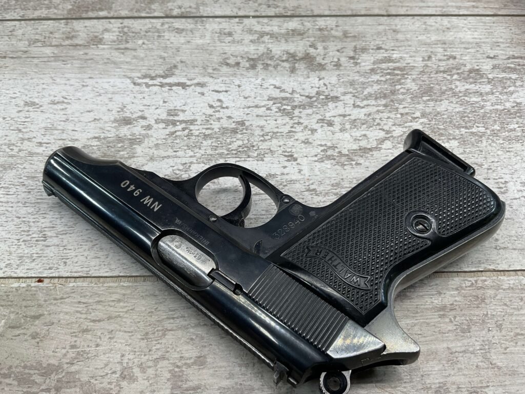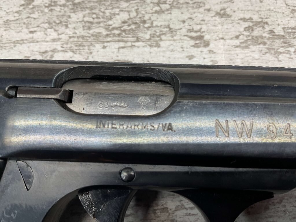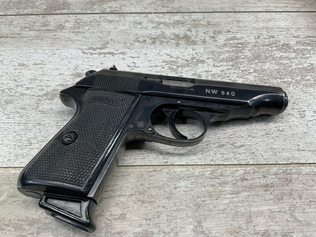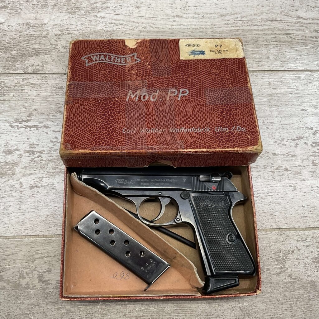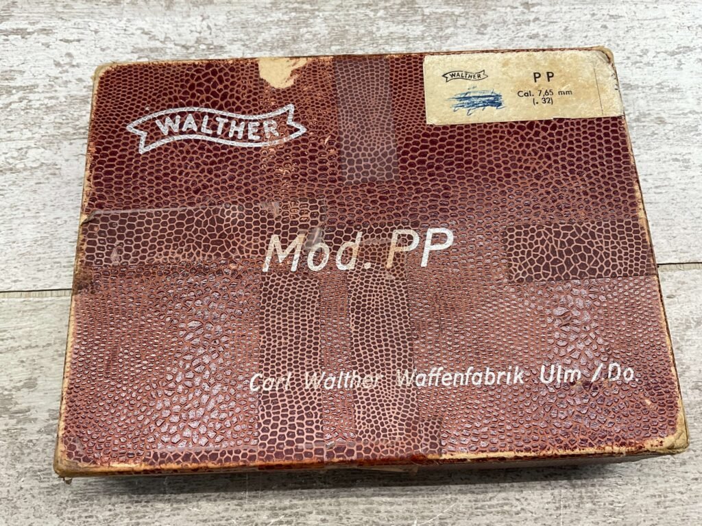 - Slide: Marked with “Walther” banner, “Carl Walther Waffenfabrik Ulm/Do. Modell PP Cal. 7.65mm” on the left side.
