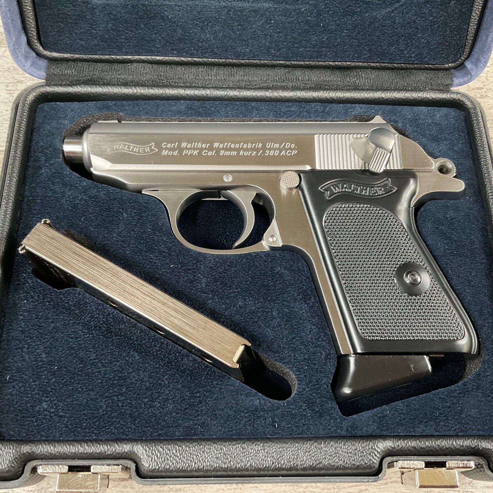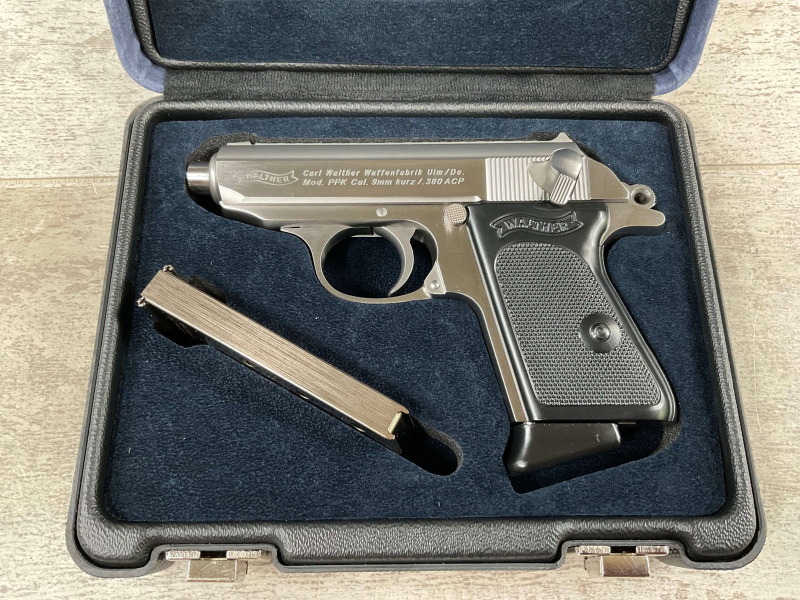 WALTHER PPK STAINLESS .380ACP PISTOL #xxxxx, DA/SA TRIGGER, 3.3″ BBL, 6 RDS, OVERALL LENGTH 6.1″, MANUAL SAFETY, 2 MAGAZINES, TRIGGER LOCK, CASE, FACTORY NIB