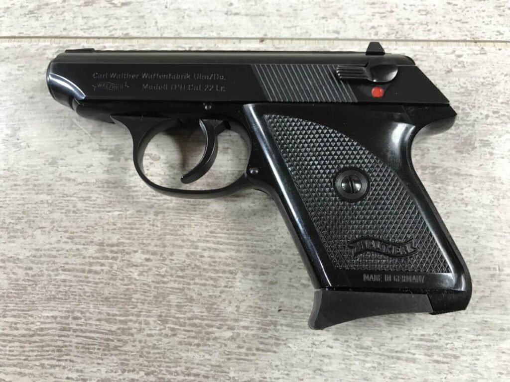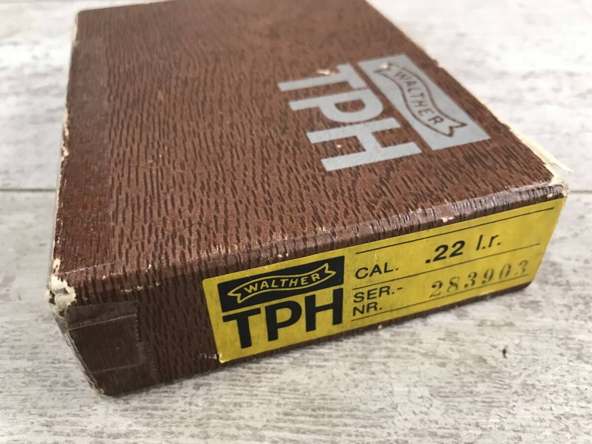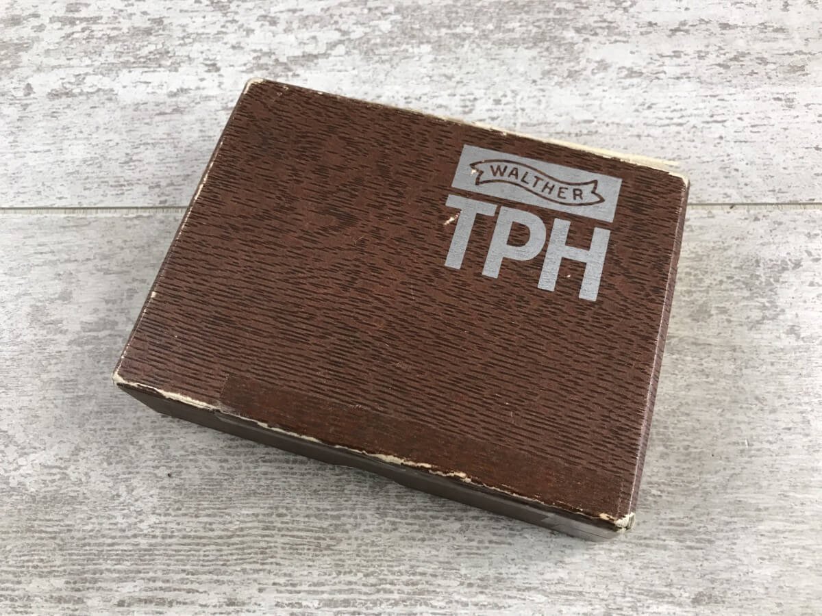 SKU#138 WALTHER TPH .22LR POCKET PISTOL IN BOX W/PAPERWORK #283903, MADE IN GERMANY, INTRA ARMS IMPORT MARKED, 6+1 ROUNDS, 1 MAG, 2″ BARREL, DECOCK/SAFETY, EXC BORE, EXC PLASTIC GRIPS, EXC BLUE FINISH, 98+%
