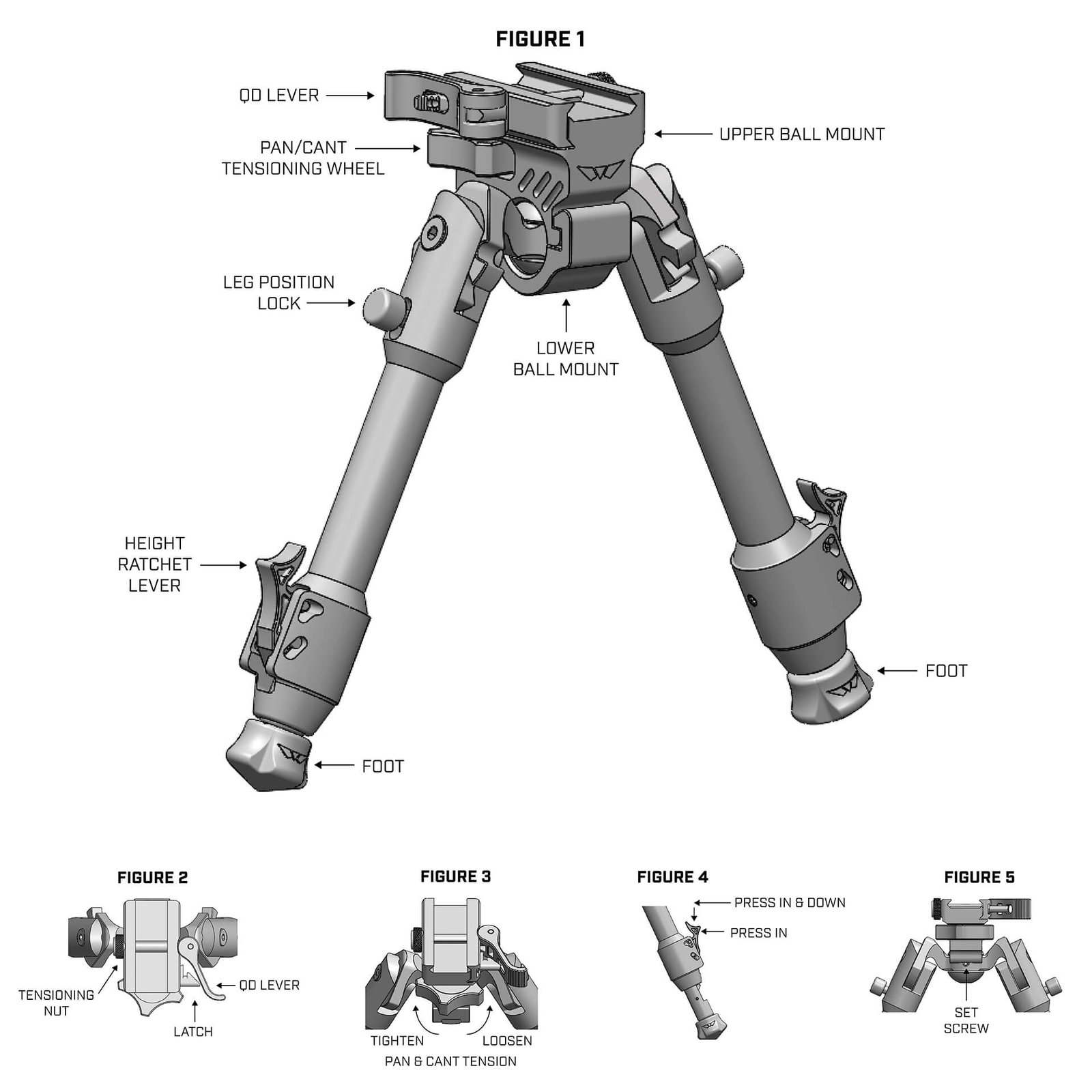 WARNE 7901M PRECISION BIPOD, PIC RAIL INTERFACE, NEW, MADE IN USA