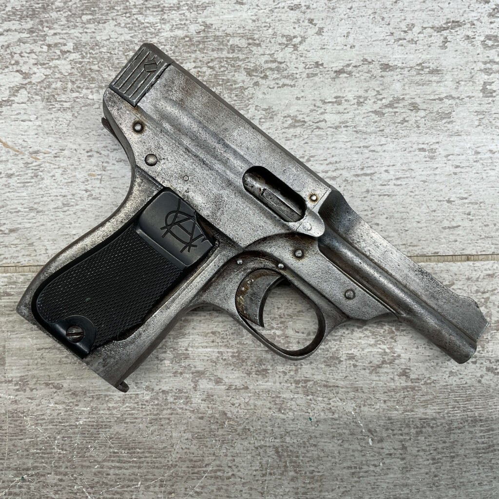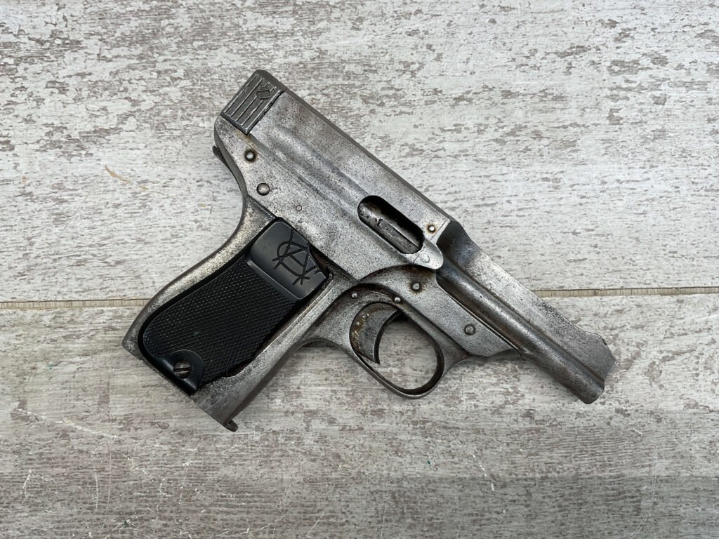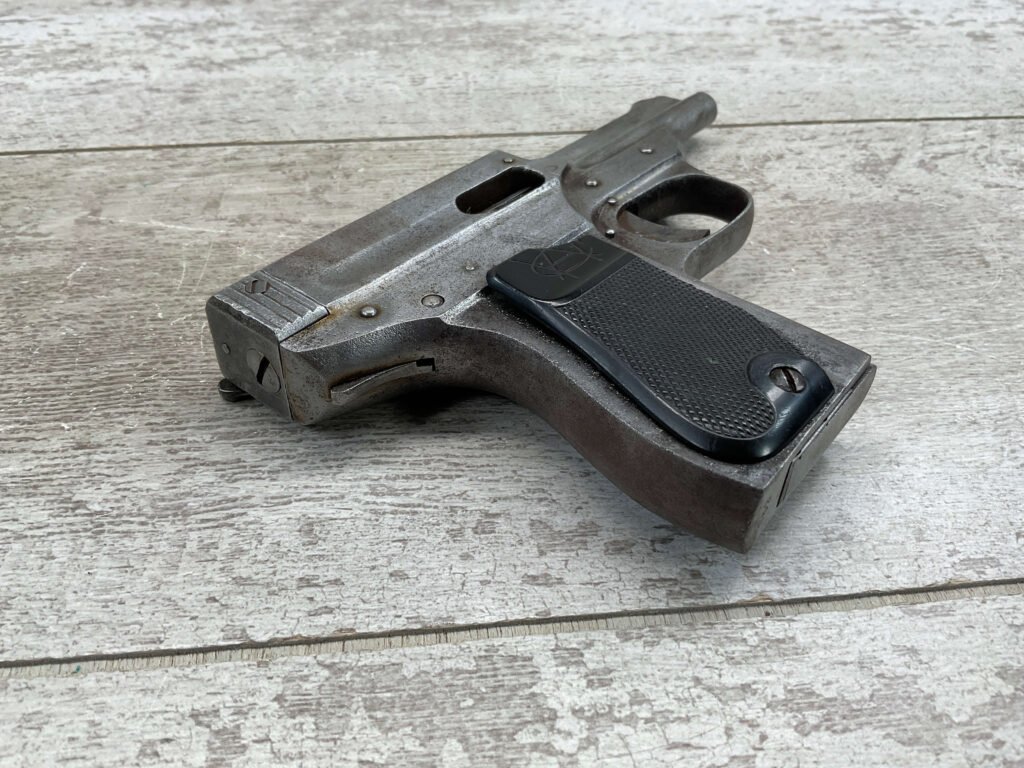 When the importer Warner Arms Co. could no longer get the Austrian Schwarzlose Model 1908 pistols from Germany, they had .32 pocket pistols made in the United States in three variations. Designer and manufacture Andrew Fyrberg’s blowback-action .32ACP pistol was put into production, called — The Infallible — and is rare today. The design and production of the early model Type I was influenced by left over pieces and tools from the production of the Austrian Schwarzlose 1908 blow-forward pistol. Put into production around the time of the Great War, less than 8000 of these firearms where made, featuring a 3-inch barrel, fixed sights, and rubber grip panels, they had an odd history.