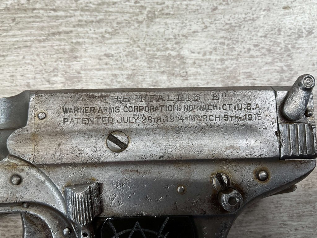The Infallible Pistol was a .32 ACP caliber handgun manufactured by the Warner Arms Corp around 1914.