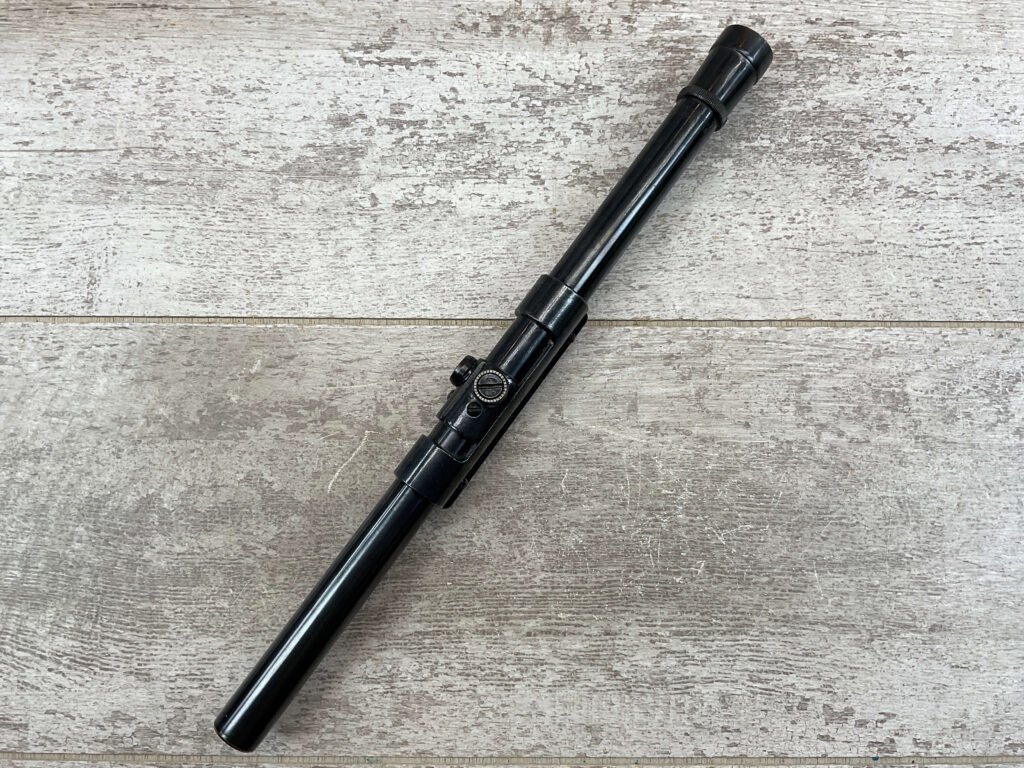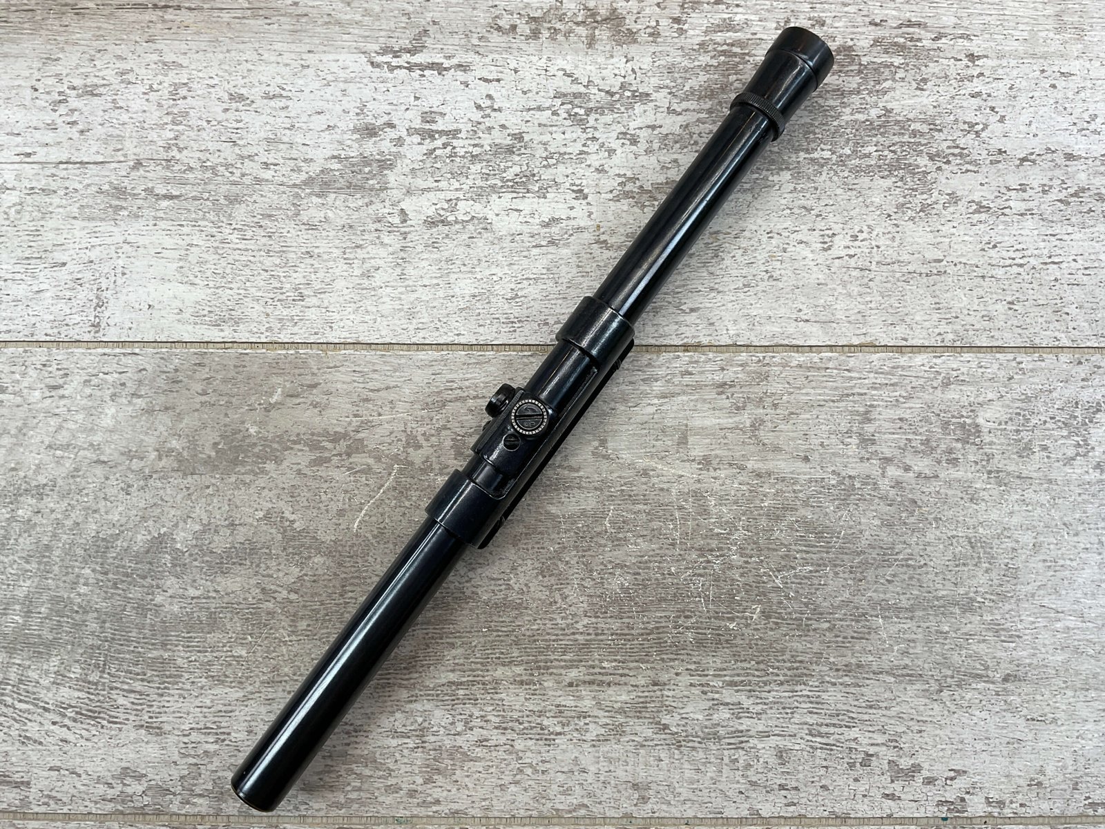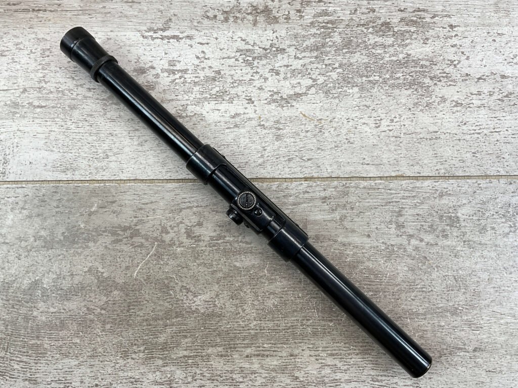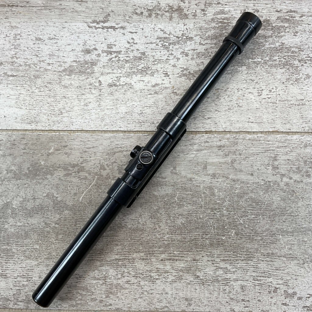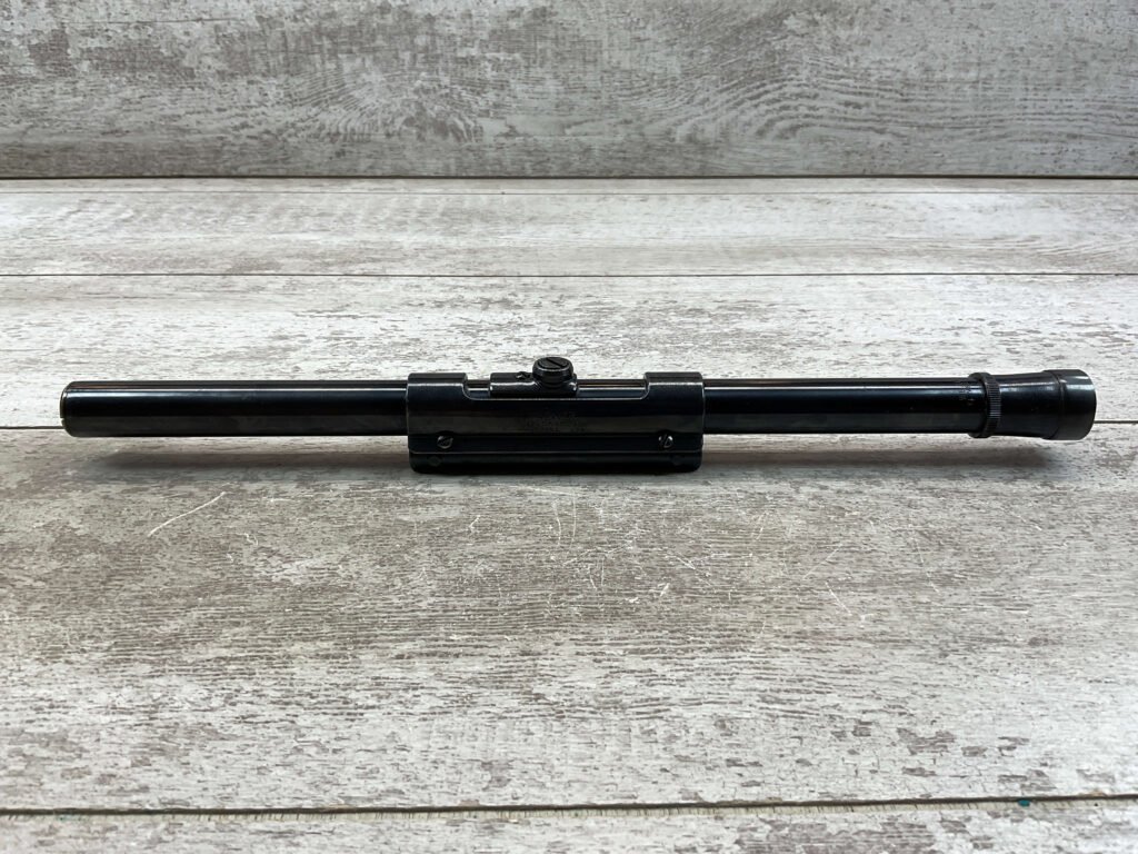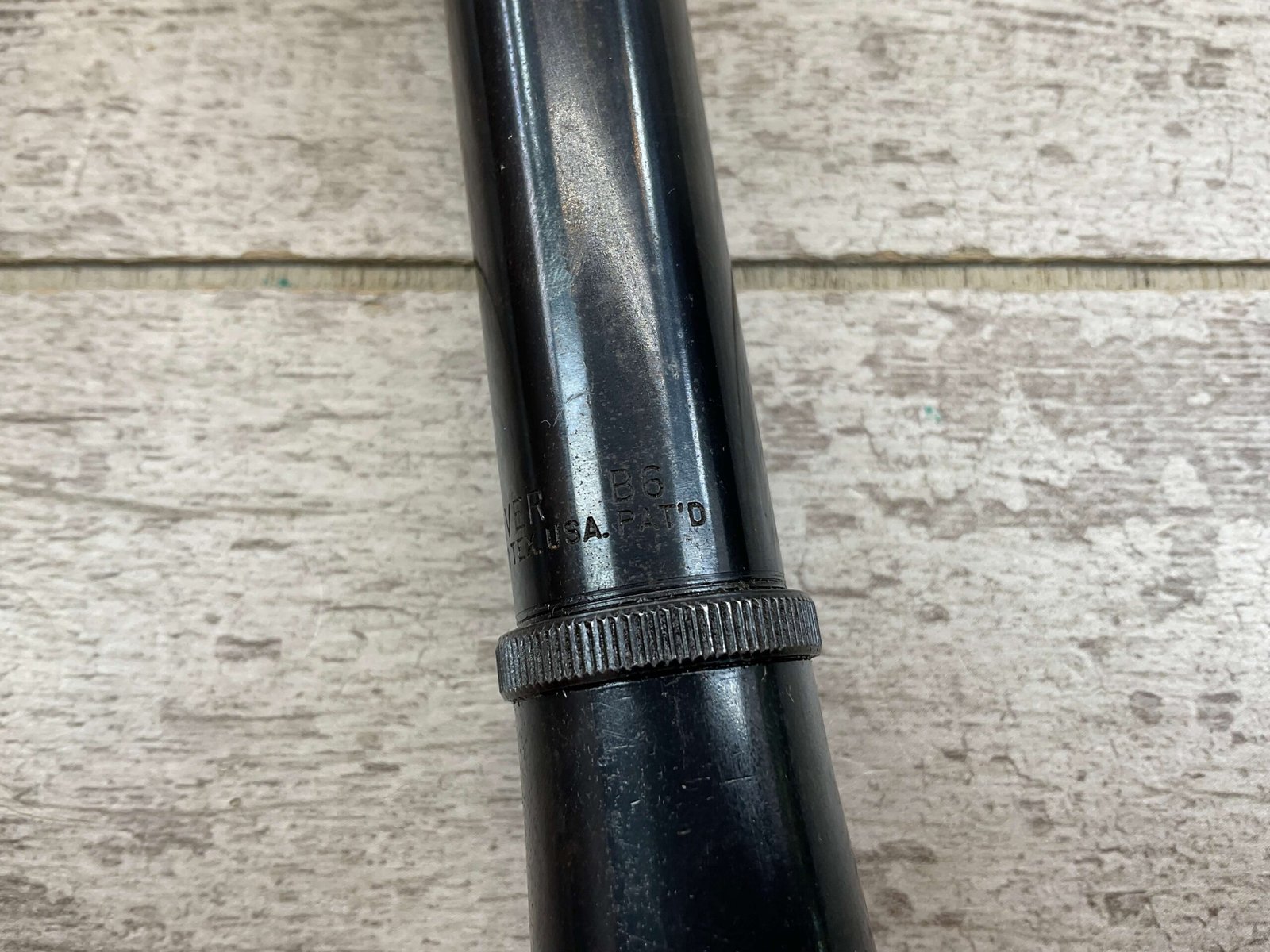 WEAVER B6 WITH .22 TIP-OFF 3/4″ MOUNT, CROSSHAIR SCOPE, VINTAGE, NEAR MINT, LENGTH: 13 1/2″, SCOPE MARKED “WEAVER B6 / EL PASO TEX. USA. PATD”, MOUNT MARKED “WEAVER / .22 TIP-OFF 3/4″ / PAT.PEND. USA”, VERY RARE?, IN EXC/NEAR MINT CONDITION!