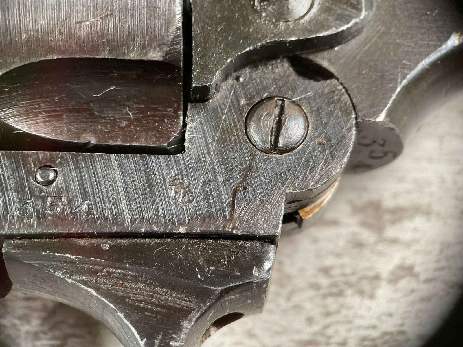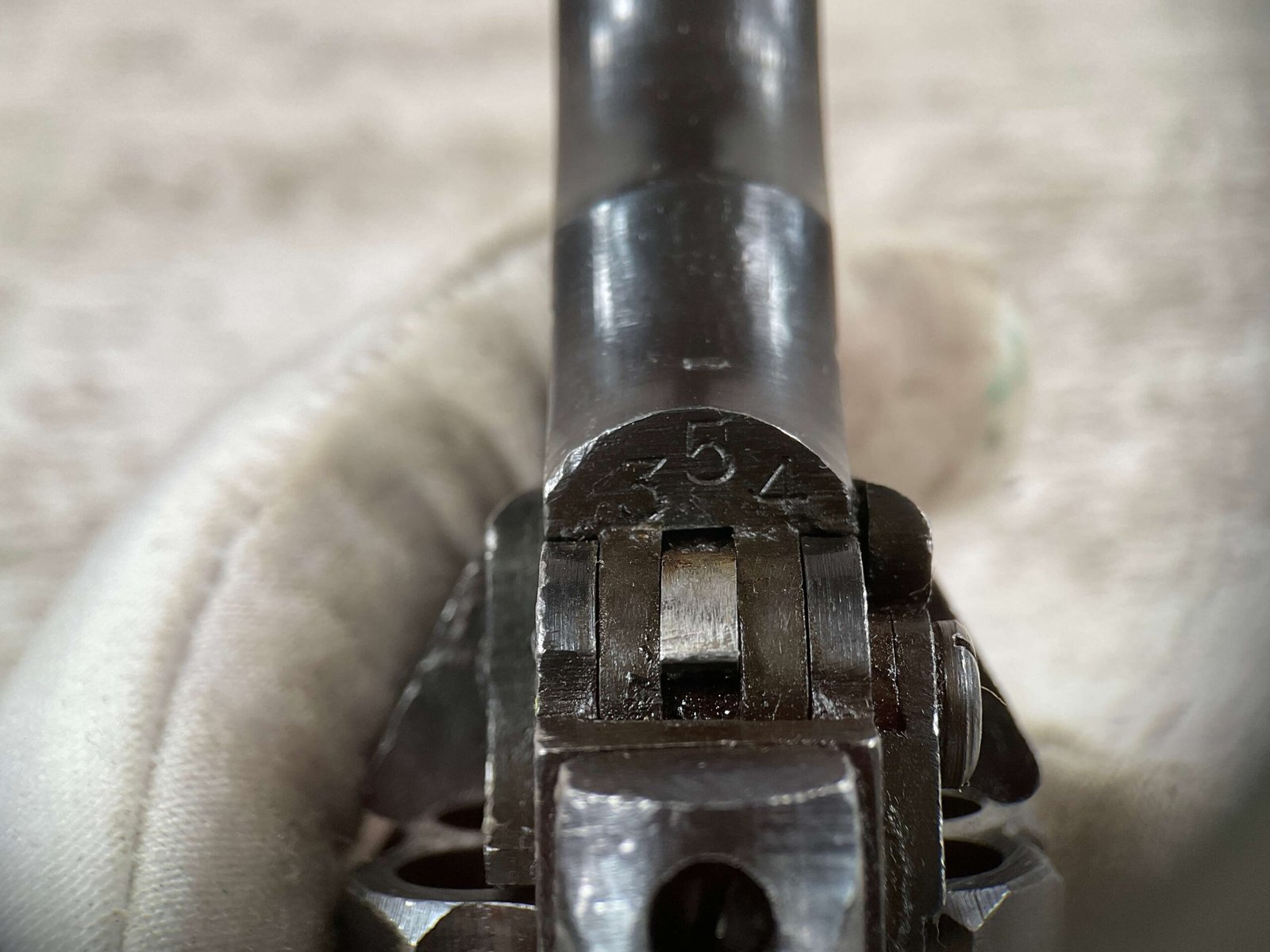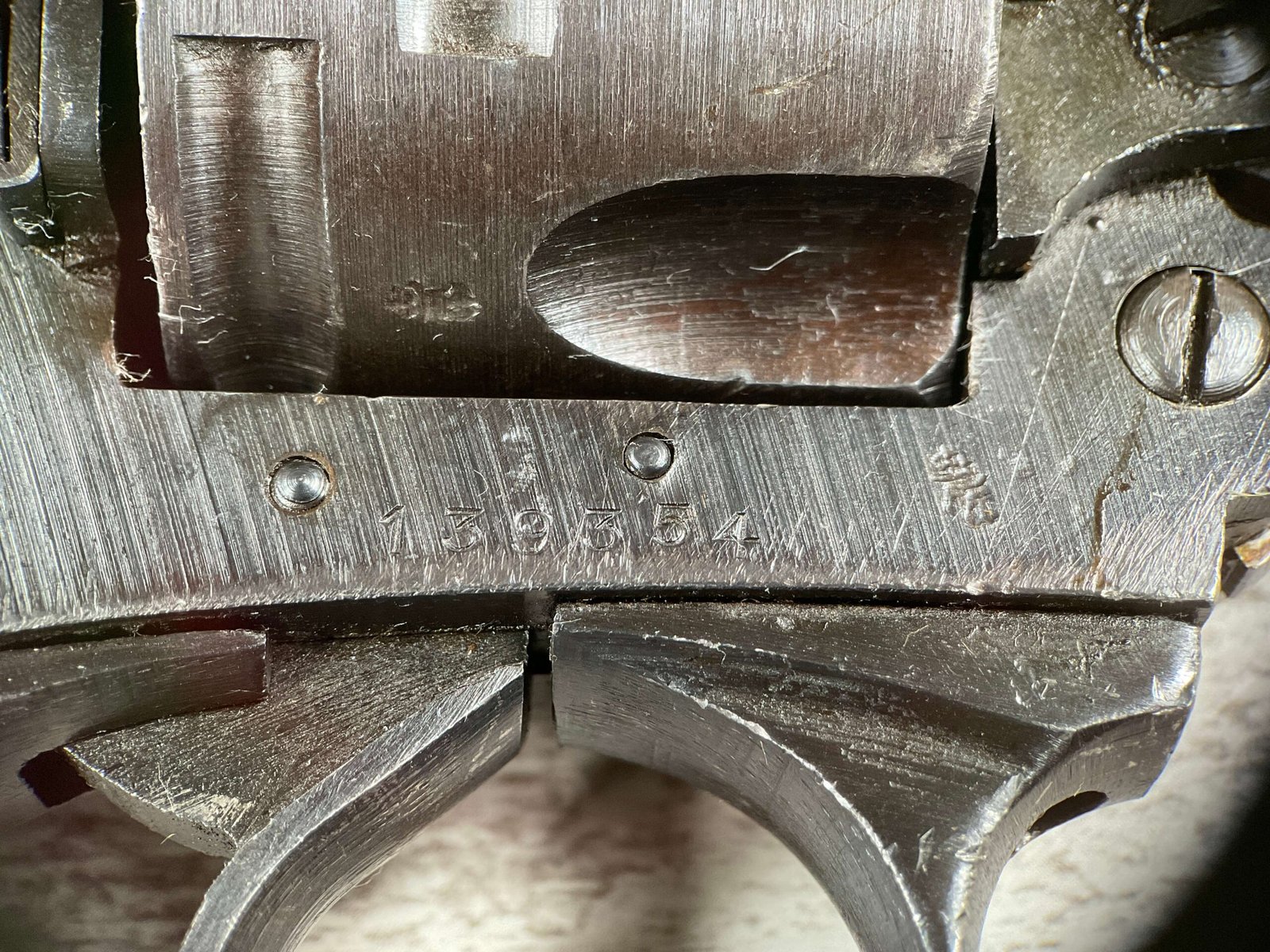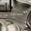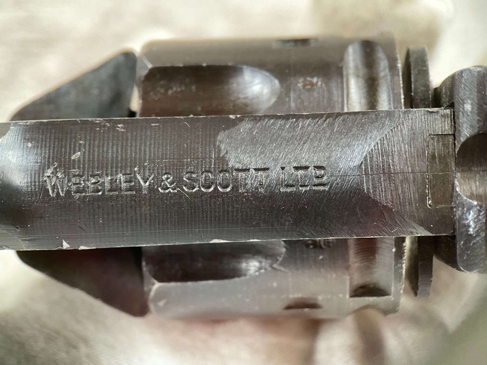 WEBLEY MKIV MARK IV .38-200 REVOLVER W/CANVAS HOLSTER, WAR FINISH #139354, DA, ALL MATCHING, 5″ BBL, EXC BRIGHT BORE & EXC STRONG RIFLING (10/10), EXC BLACK PLASTIC GRIPS MARKED “WEBLEY”, 97+% BLUE, VERY LIGHT HIGH EDGE WEAR, LANYARD RING PRESENT, NO IMPORT MARKS, EXC CANVAS HOLSTER MARKED “LL&T.LTD./1942” INSIDE FLAP, 98%
