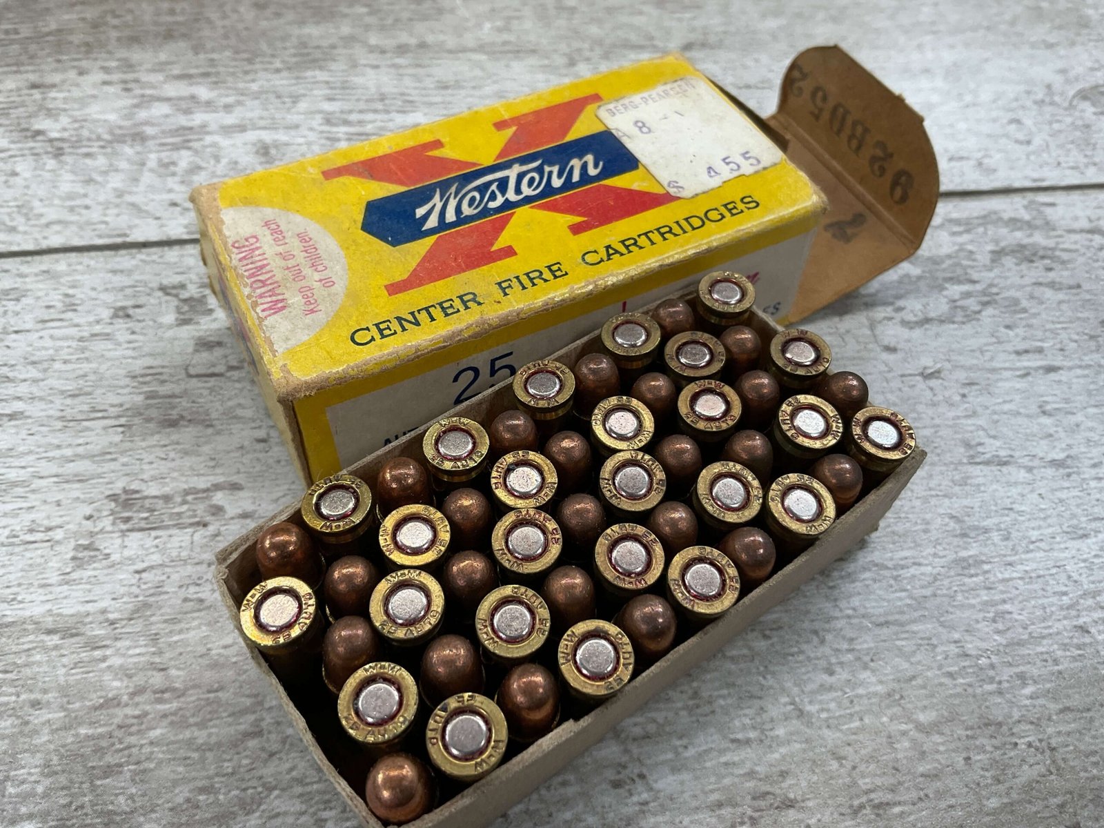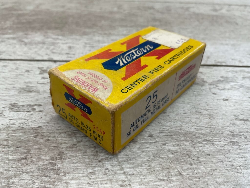 WESTERN 25 AUTO 50 GRN FMC AMMO, VINTAGE, BOX IS IN VG CONDITION