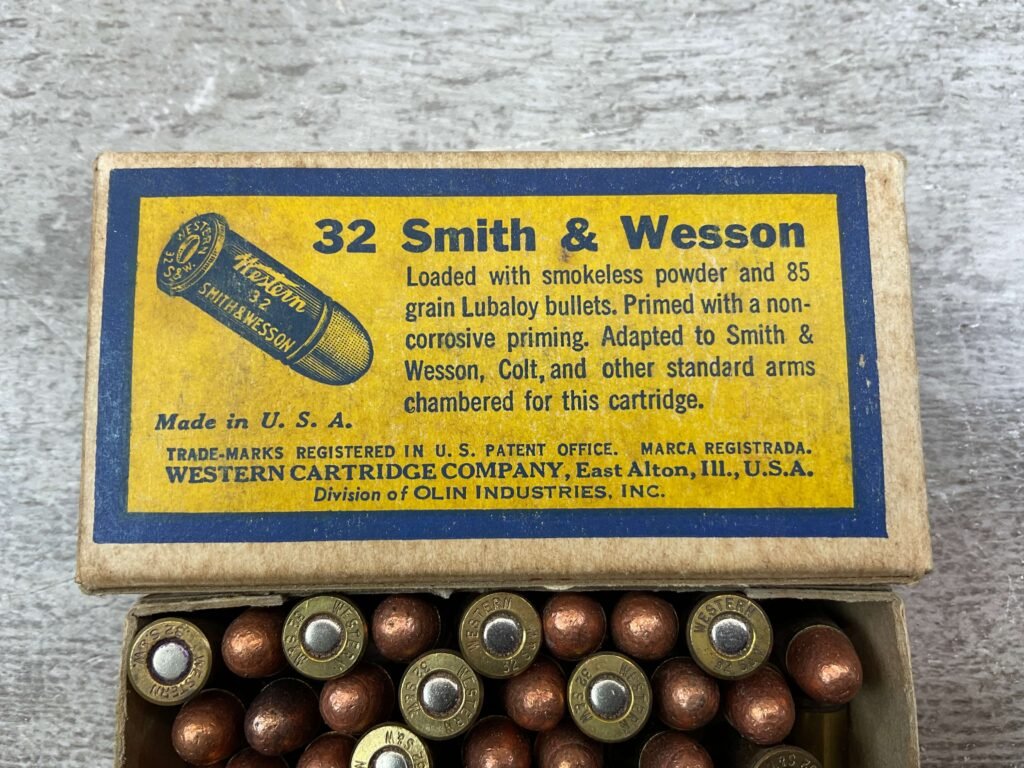 WESTERN 32 S&W CENTER FIRE 85 GR. LUBALOY BULLET, NON-CORROSIVE PRIMING, SMOKELESS POWDER, QTY 46, VINTAGE