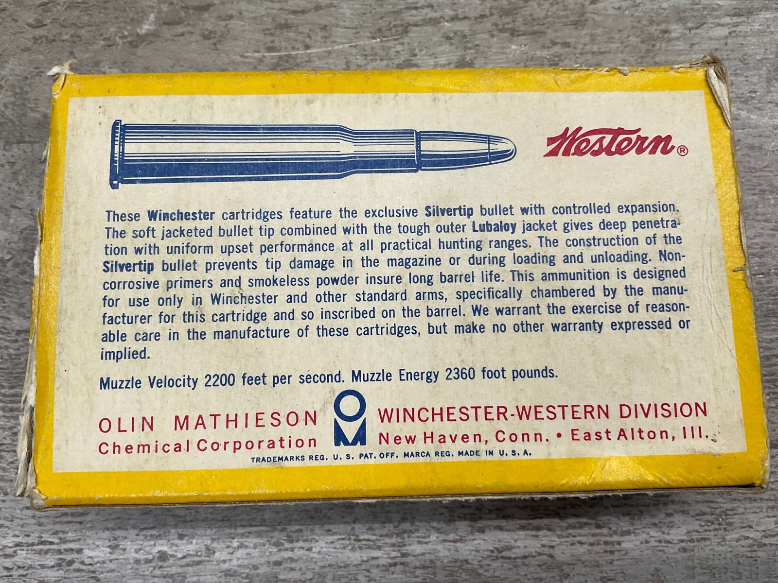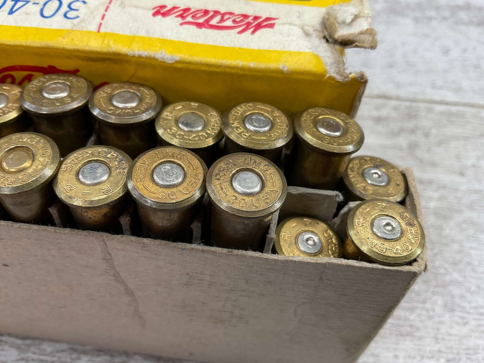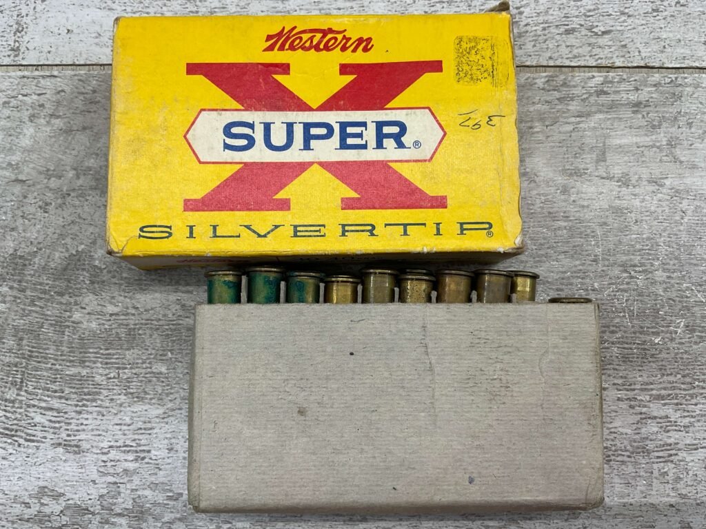 WESTERN SUPER X SILVERTIP 30-40 KRAG, 220 GR. EXPANDING BULLET, VINTAGE AMMO, #30404, 3 EMPTY SHELLS, 17 FULL. BOX IS IN GOOD CONDITION WITH SOME PEN WRITING ON FRONT “397” AND SMALL AMOUNTS OF RIPS EXPECTED FOR AGE.