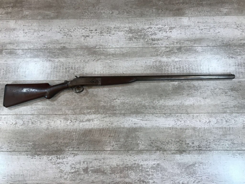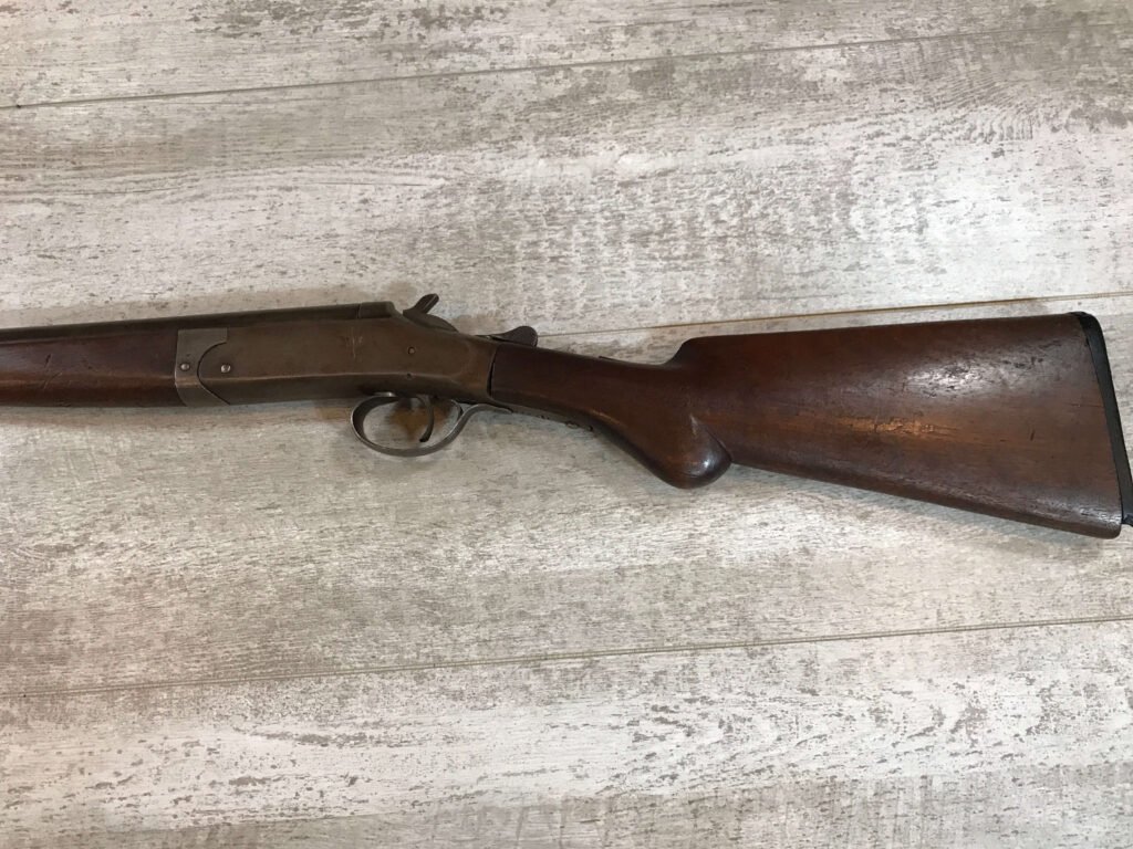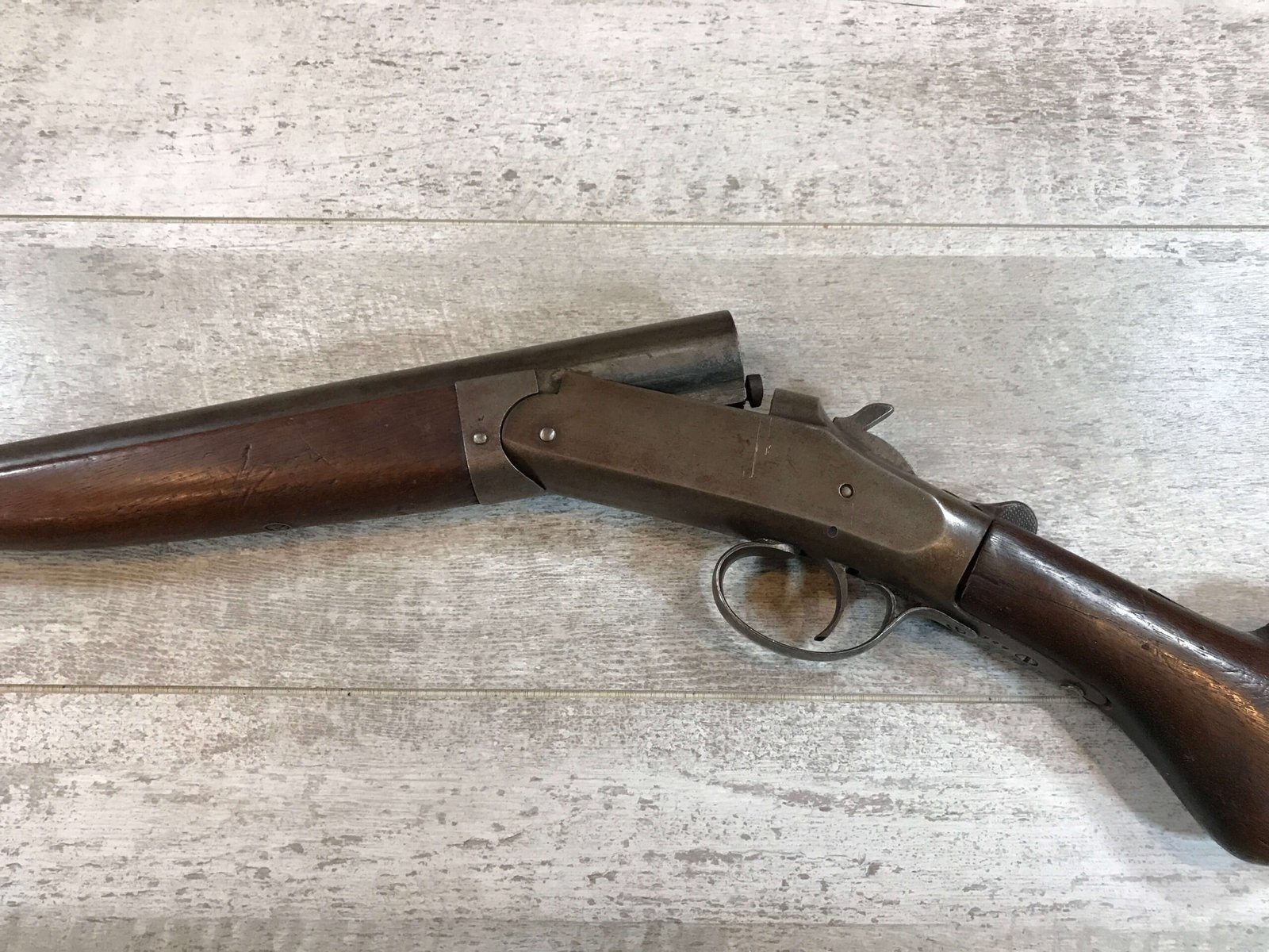 WH DAVENPORT MODEL 1900 SINGLE BARREL 12GA SHOTGUN #187, MISSING HINGE PIN, TAN/GREY PATINA, GREAT WALLHANGER!!