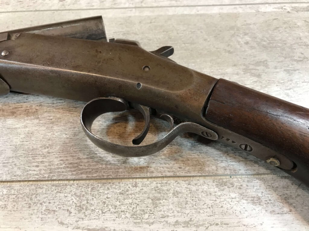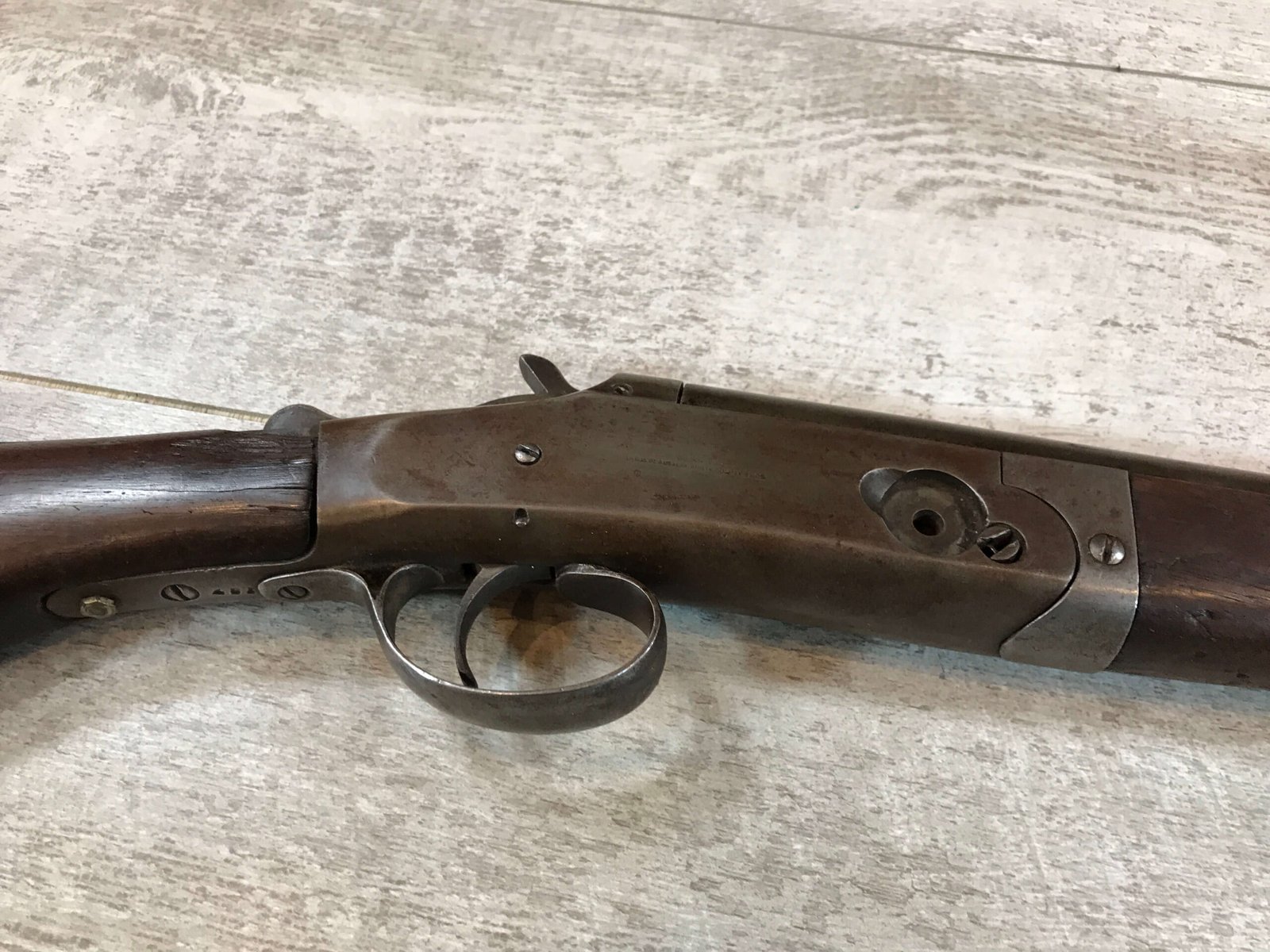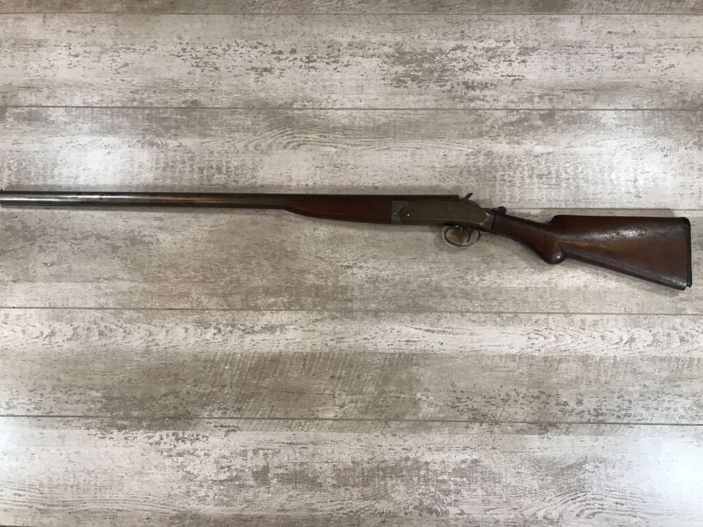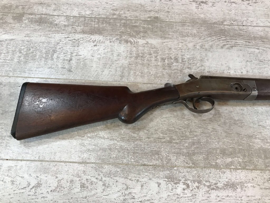 WH DAVENPORT MODEL 1900 SINGLE BARREL 12GA SHOTGUN #187, MISSING HINGE PIN, TAN/GREY PATINA, GREAT WALLHANGER!!