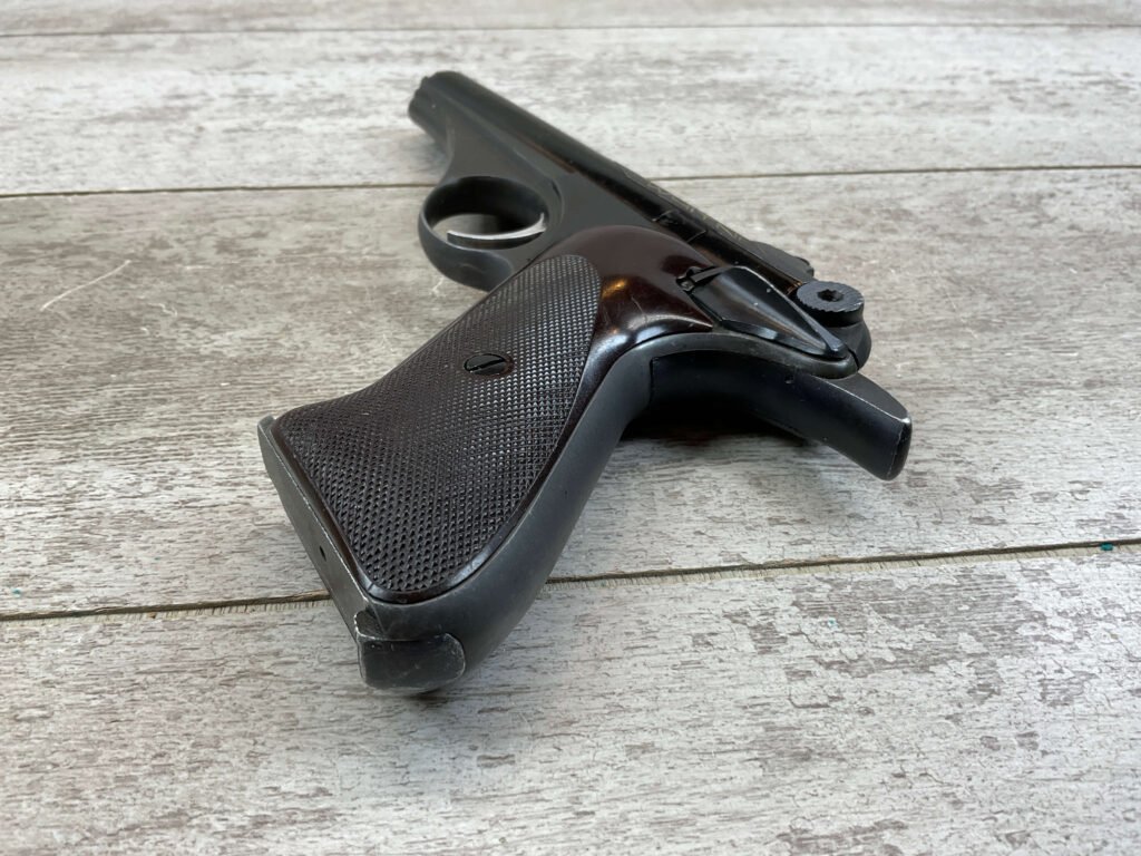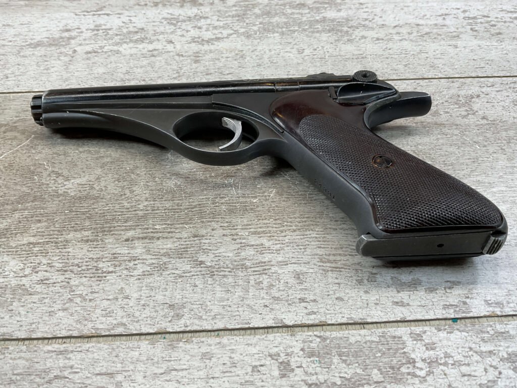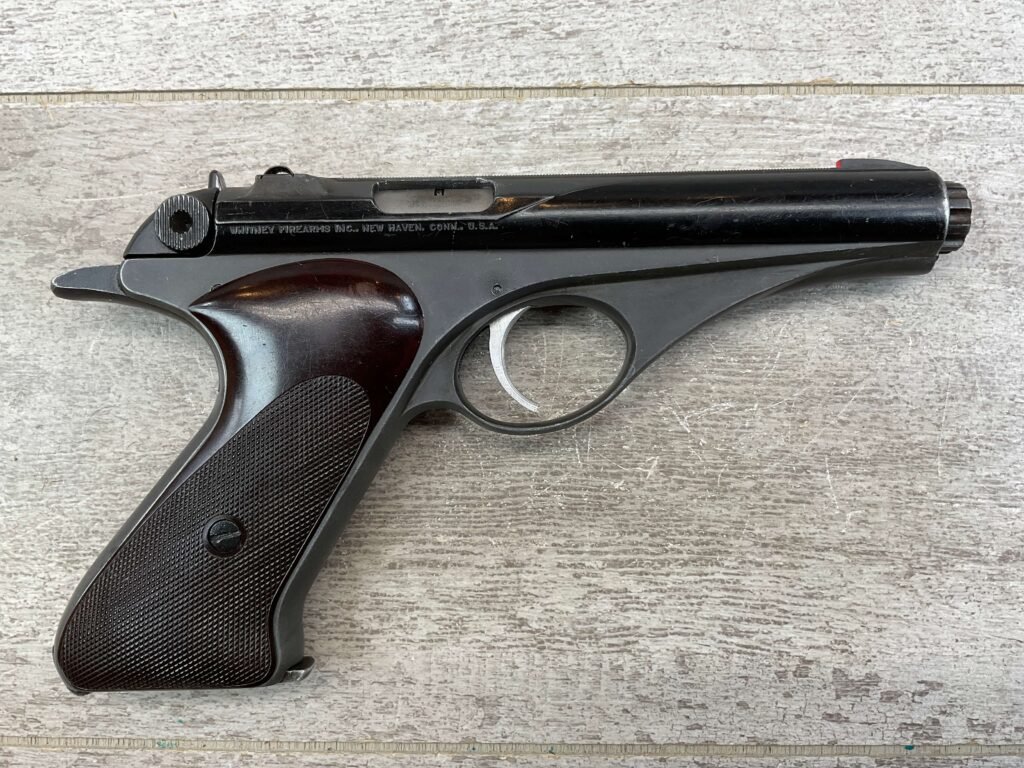The Whitney Wolverine is an advanced, “space-aged”, lightweight aluminum, semi-automatic, .22 LR caliber pistol created in 1956. The Wolverine was engineered by Robert Hillberg, who learned about aluminum casting during WWII while working with aircraft guns and later became a research engineer for High Standard Manufacturing Company. Only 13,371 of these pistols were made in its short period of production between 1956 and 1958.