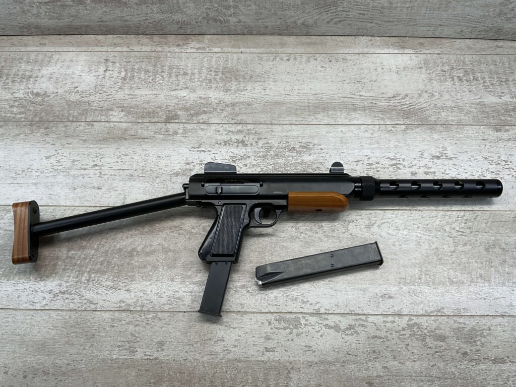 WILKINSON ARMS “LINDA” 9MM SEMI AUTO CARBINE, LIKE NEW #933954, 9MM, 16″ BARREL W/SHROUD, ALUMINUM ALLOY EXTRUDED RECEIVER, FIXED FRONT & REAR SIGHTS, EJECTION PORT DUST COVER, WOOD FOREGRIP & BUTTPLATE, CROSS-BOLT SAFETY, THUMB OPERATED MAG RELEASE, 2 31 ROUND MAGAZINES, LIKE NEW & VERY HARD TO FIND!!