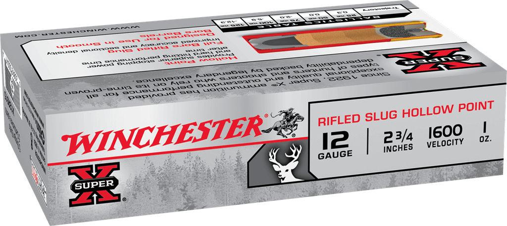 WINCHESTER 12 GAUGE RIFLED SLUG HOLLOW POINT 1OZ LEAD 5/BOX, 2.75″, 1600 PFS, 12 GAUGE, DEER SLUGS, SUPER-X AMMO, NEW