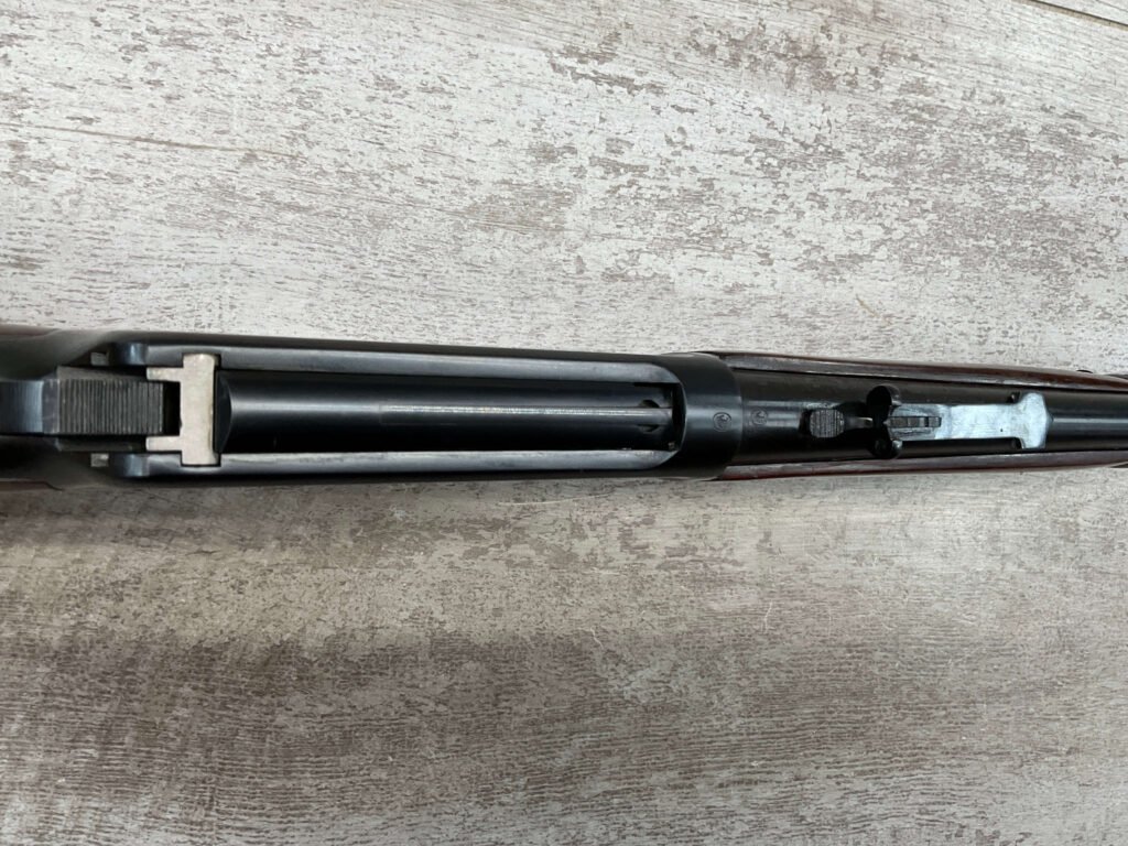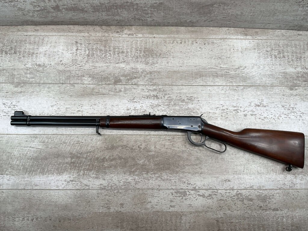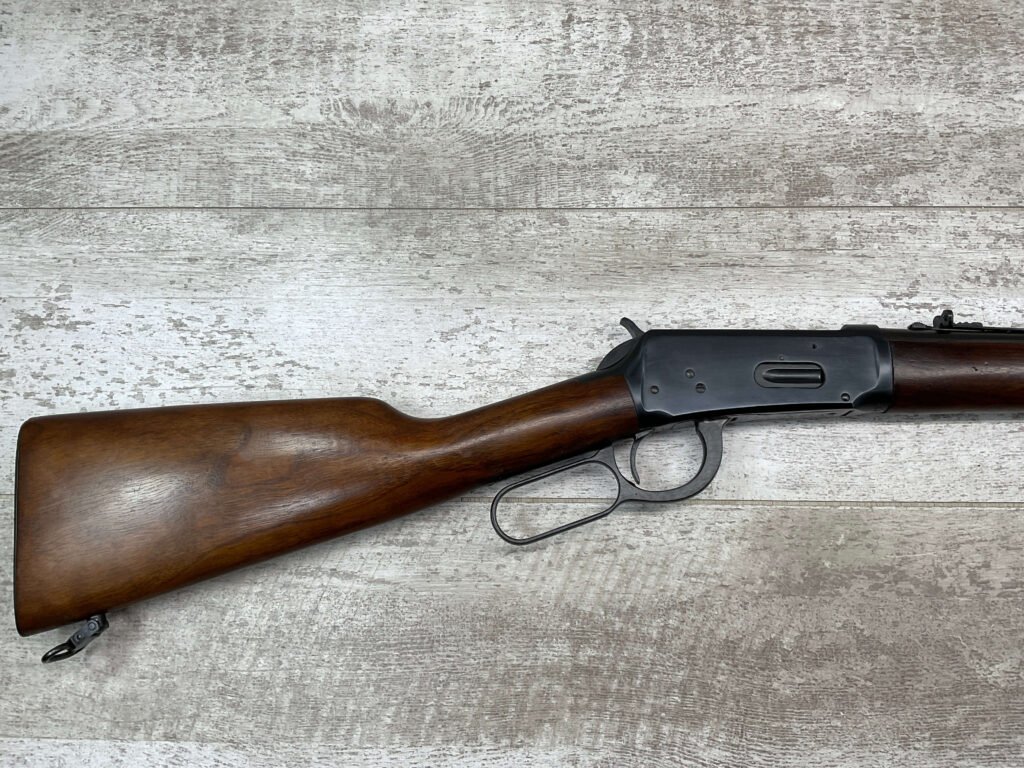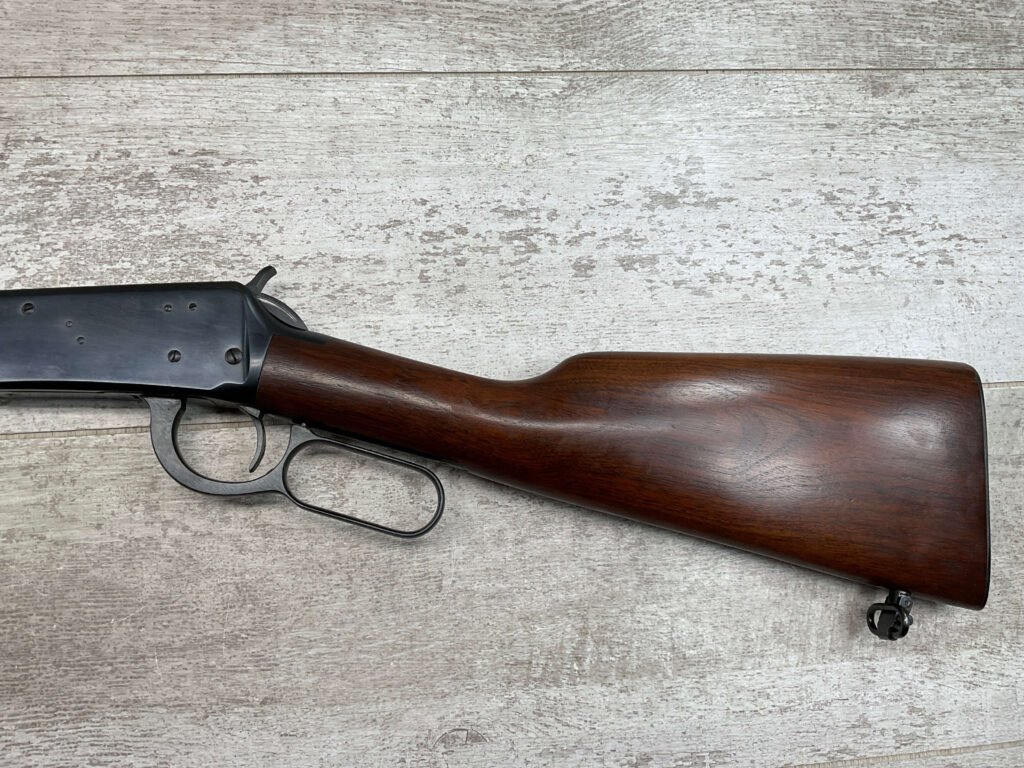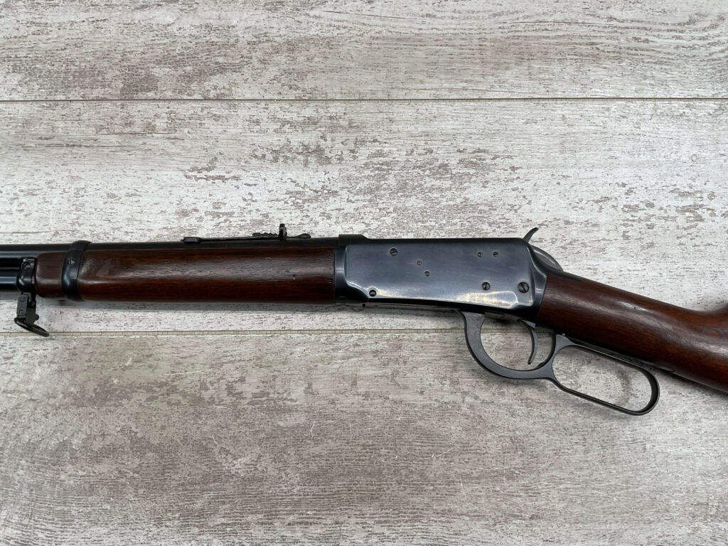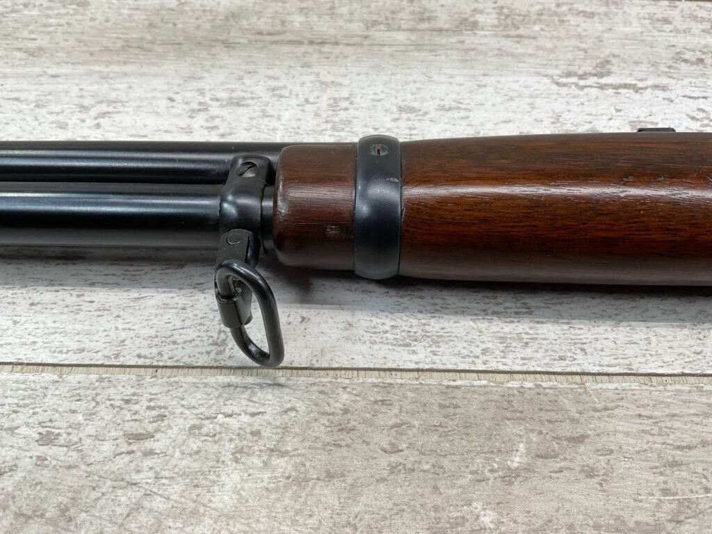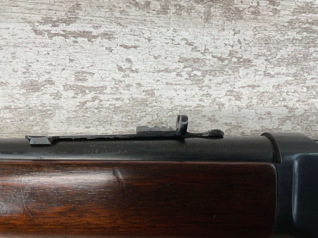 WINCHESTER MODEL 94 30-30 WIN 1955 LEVER ACTION RIFLE ORIGINAL #2131121, 20″ ROUND BARREL, EXC BRIGHT MIRROR BORE & RIFLING (10/10), EXC WOOD STOCK AND FOREARM (10/10), IRON FRONT & REAR SIGHTS, SLING SWIVELS FRONT & REAR, EXC ORIGINAL BLUE (10/10), TIGHT / SMOOTH ACTION & FIT, ORIGINAL PLASTIC BUTT PLATE, 98+% OVERALL