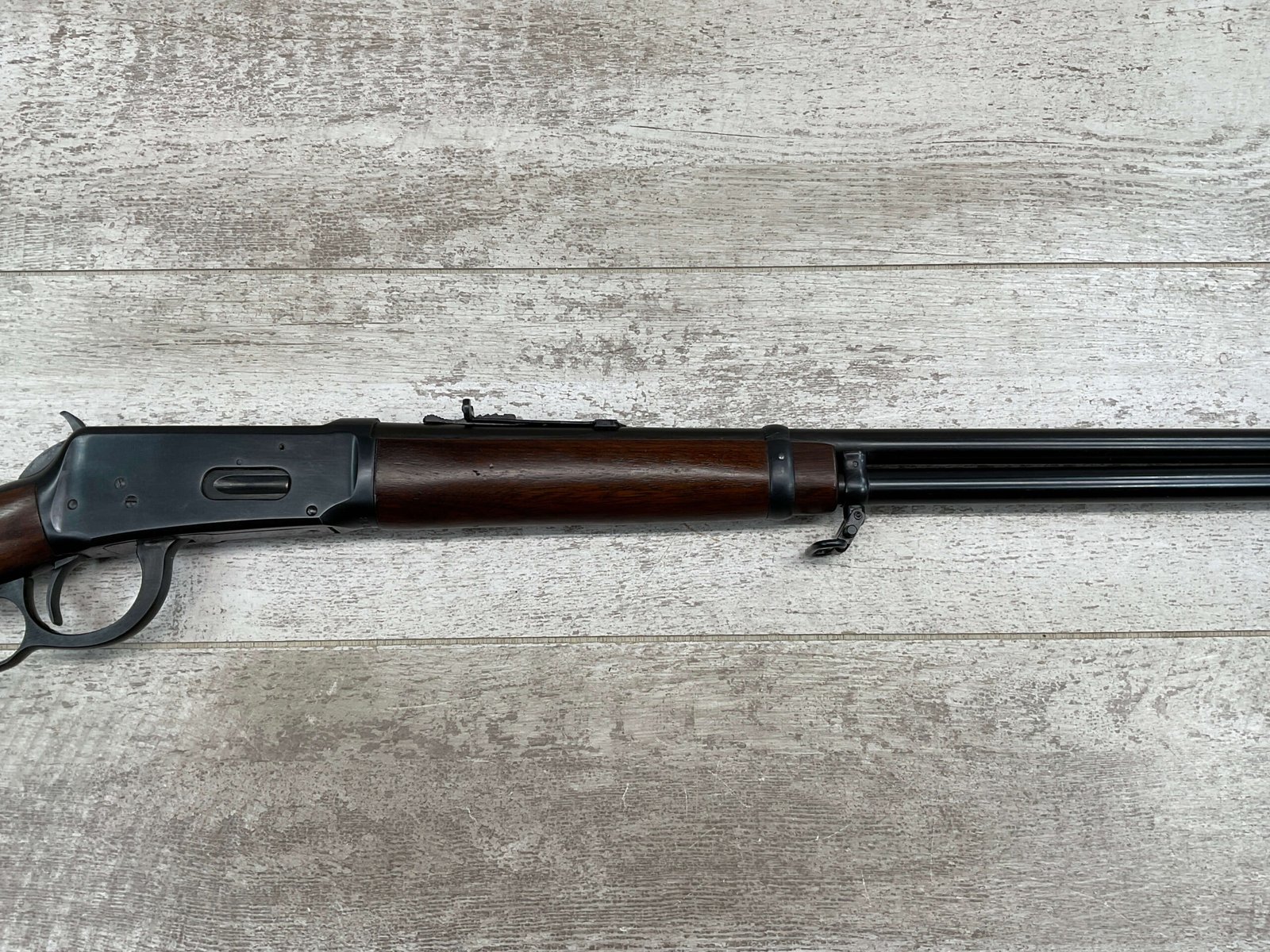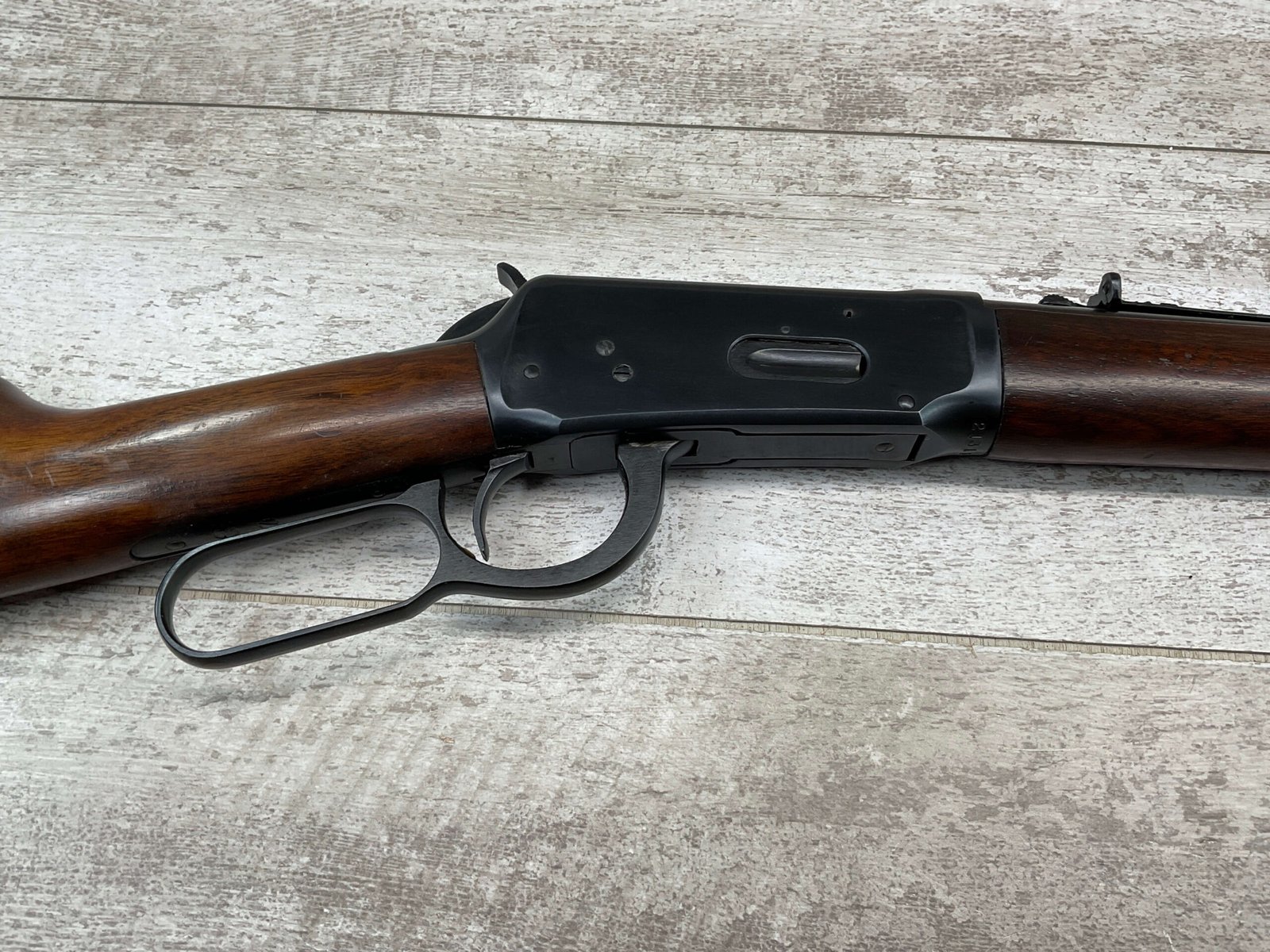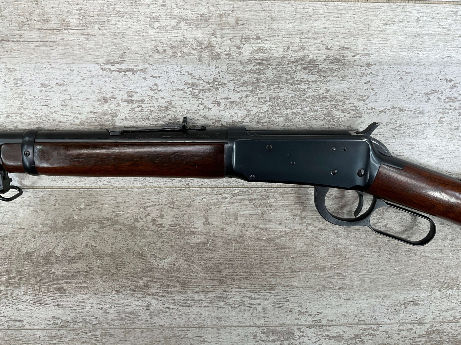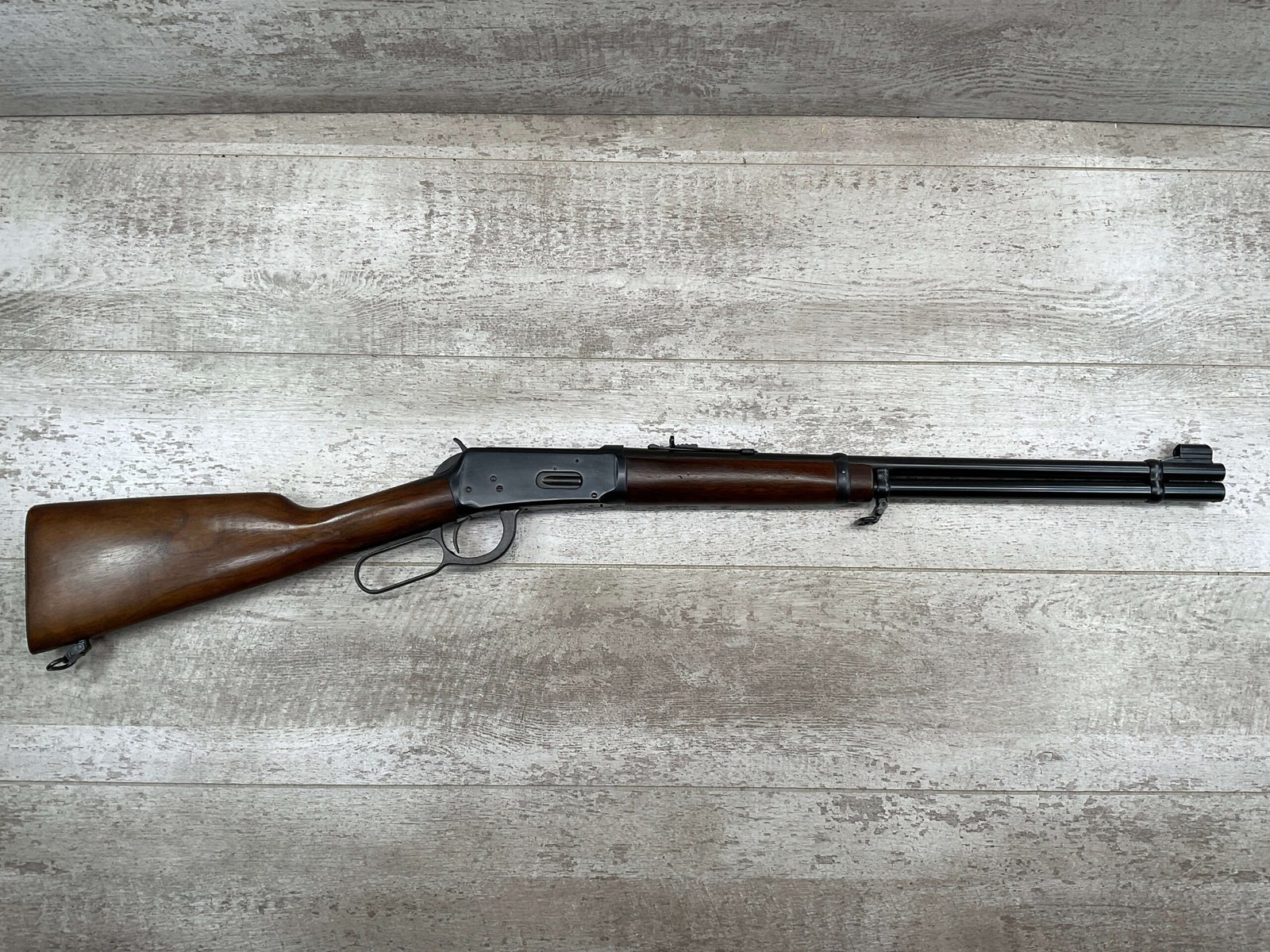 WINCHESTER MODEL 94 30-30 WIN 1955 LEVER ACTION RIFLE ORIGINAL #2131121, 20″ ROUND BARREL, EXC BRIGHT MIRROR BORE & RIFLING (10/10), EXC WOOD STOCK AND FOREARM (10/10), IRON FRONT & REAR SIGHTS, SLING SWIVELS FRONT & REAR, EXC ORIGINAL BLUE (10/10), TIGHT / SMOOTH ACTION & FIT, ORIGINAL PLASTIC BUTT PLATE, 98+% OVERALL