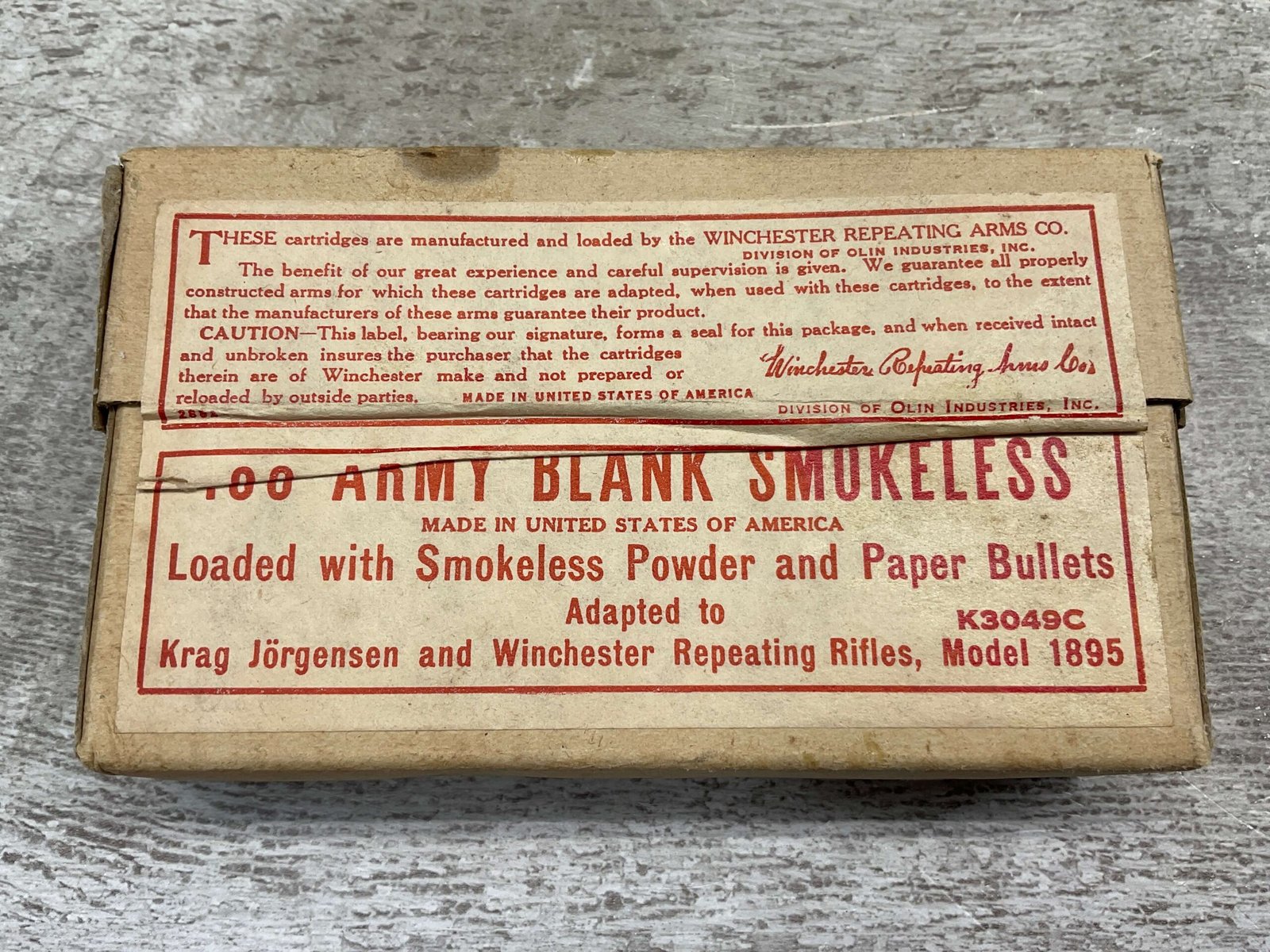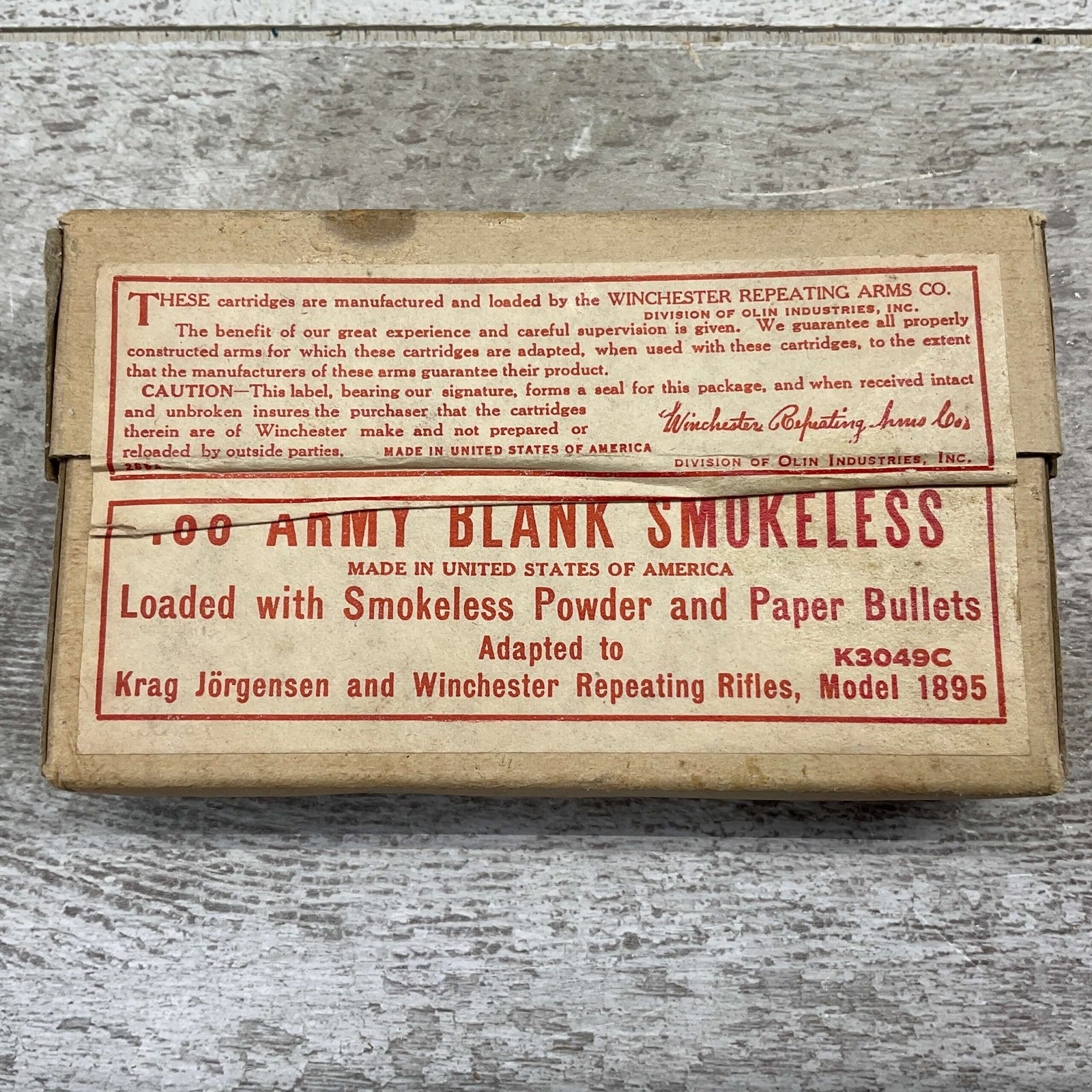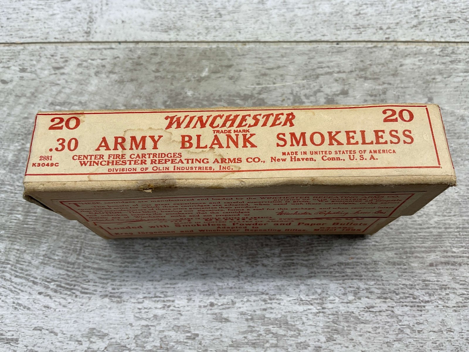 WINCHESTER .30 ARMY BLANK SMOKELESS AMMO, FULL BOX, VINTAGE, BOX IS IN EXCELLENT CONDITION AND UNOPENED! 2 AVAILABLE.