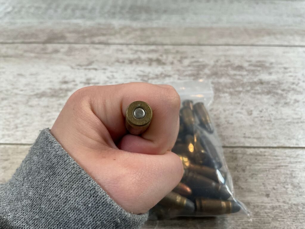 WINCHESTER WRA AND WESTERN HEAD STAMP, 30 CAL LUGER AMMUNITION, VARIOUS BULLET TYPES, BOX IS IN POOR CONDITION QTY 33