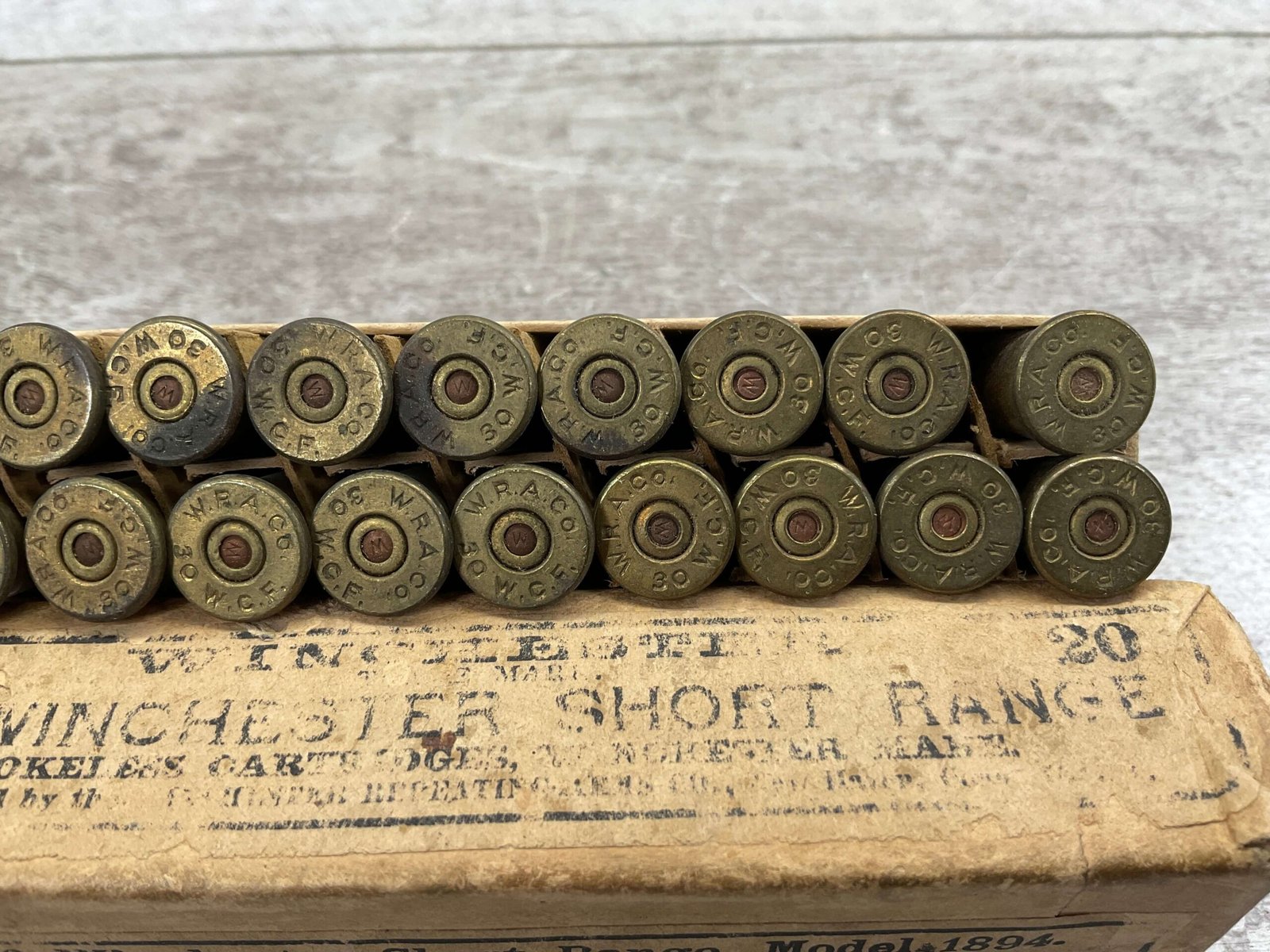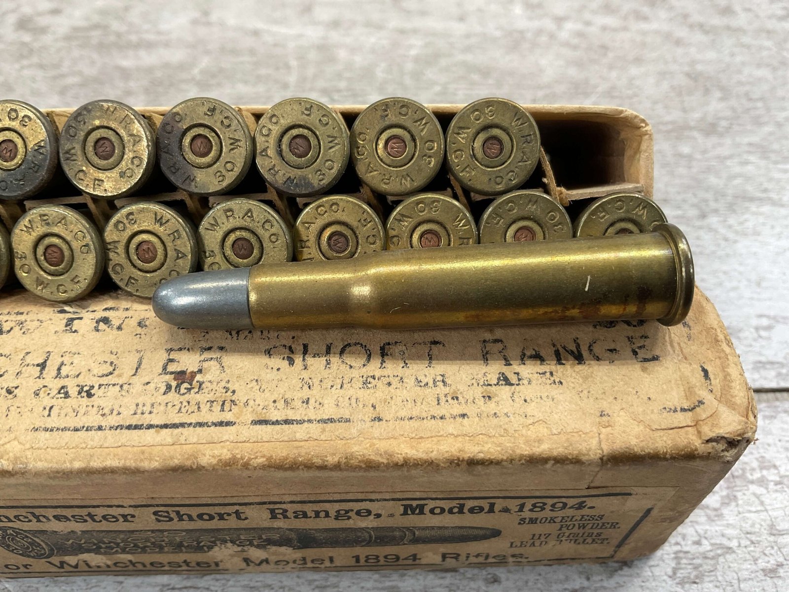 WINCHESTER .30 SHORT RANGE, MODEL 1894, VINTAGE, FULL BOX, FAIR CONDITION FOR AGE
