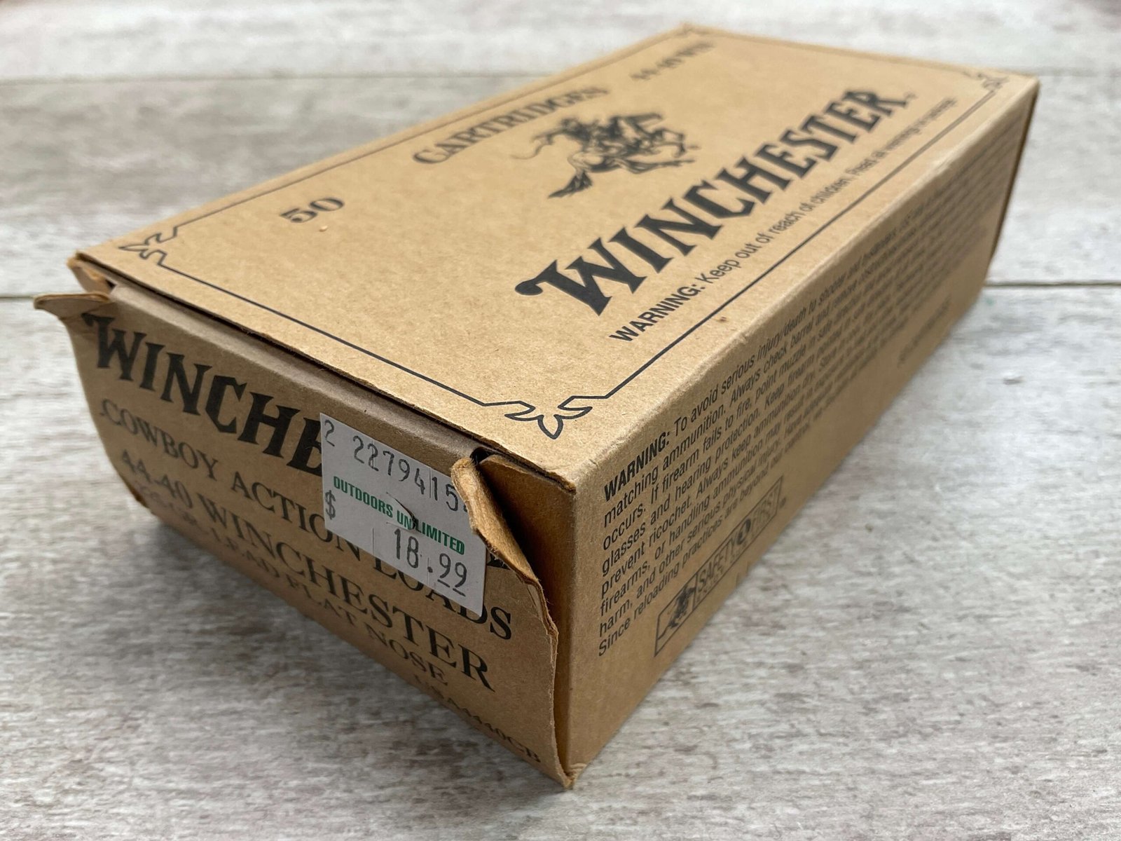 WINCHESTER 44-40 WIN. AMMUNITION, COWBOY ACTION LOADS, 225 GR LEAD FLAT NOSE, 4440CB, 50 RNDS, FULL BOX