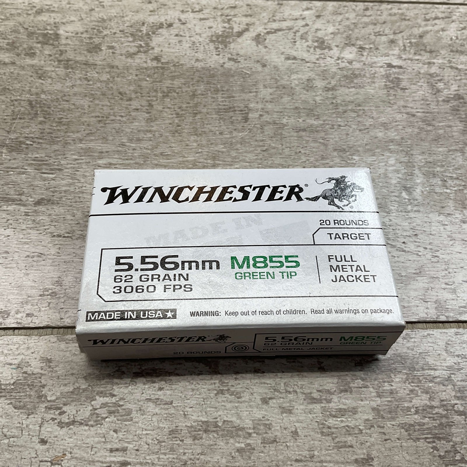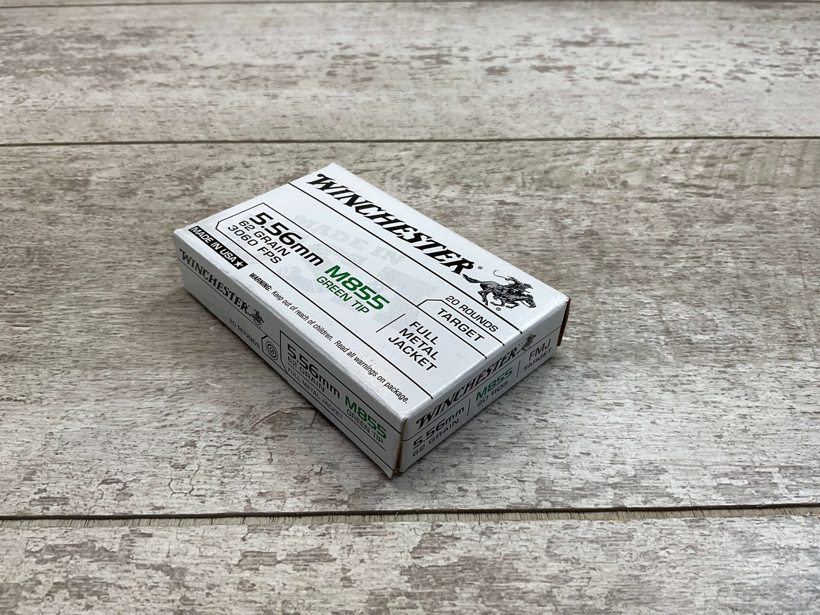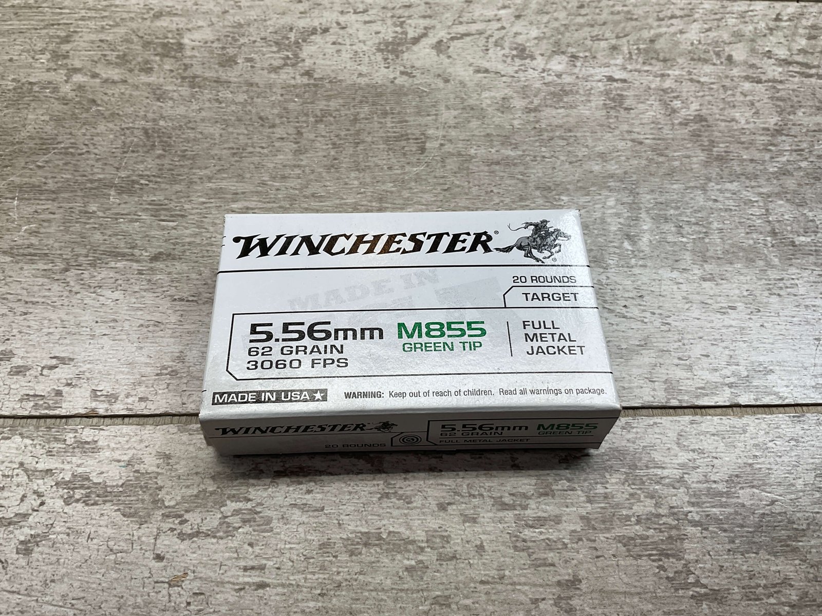 WINCHESTER 5.56 M855 GREEN TIP 62 GRN FMJ AMMO, FULL BOX, UNOPENED BOX, QTY 20