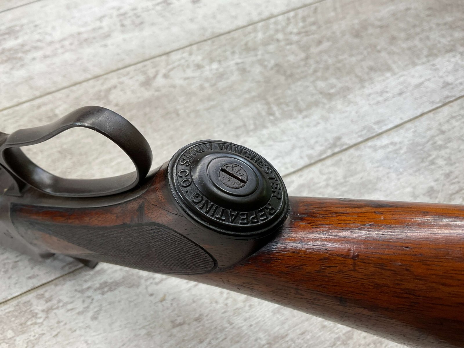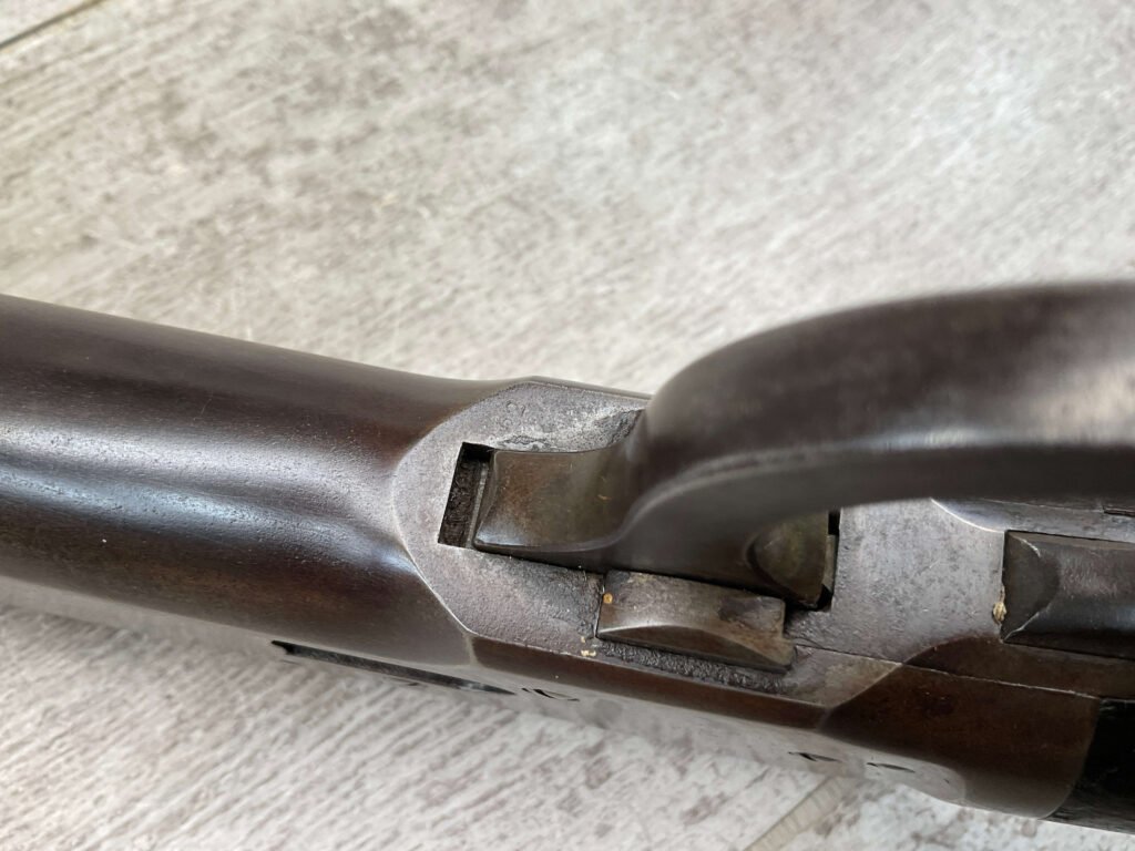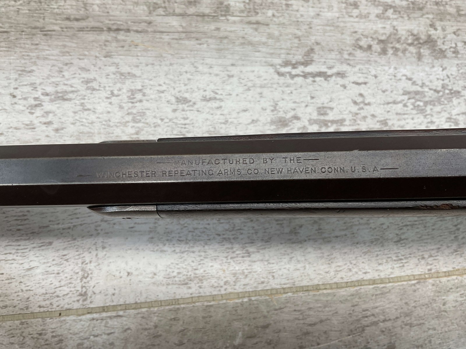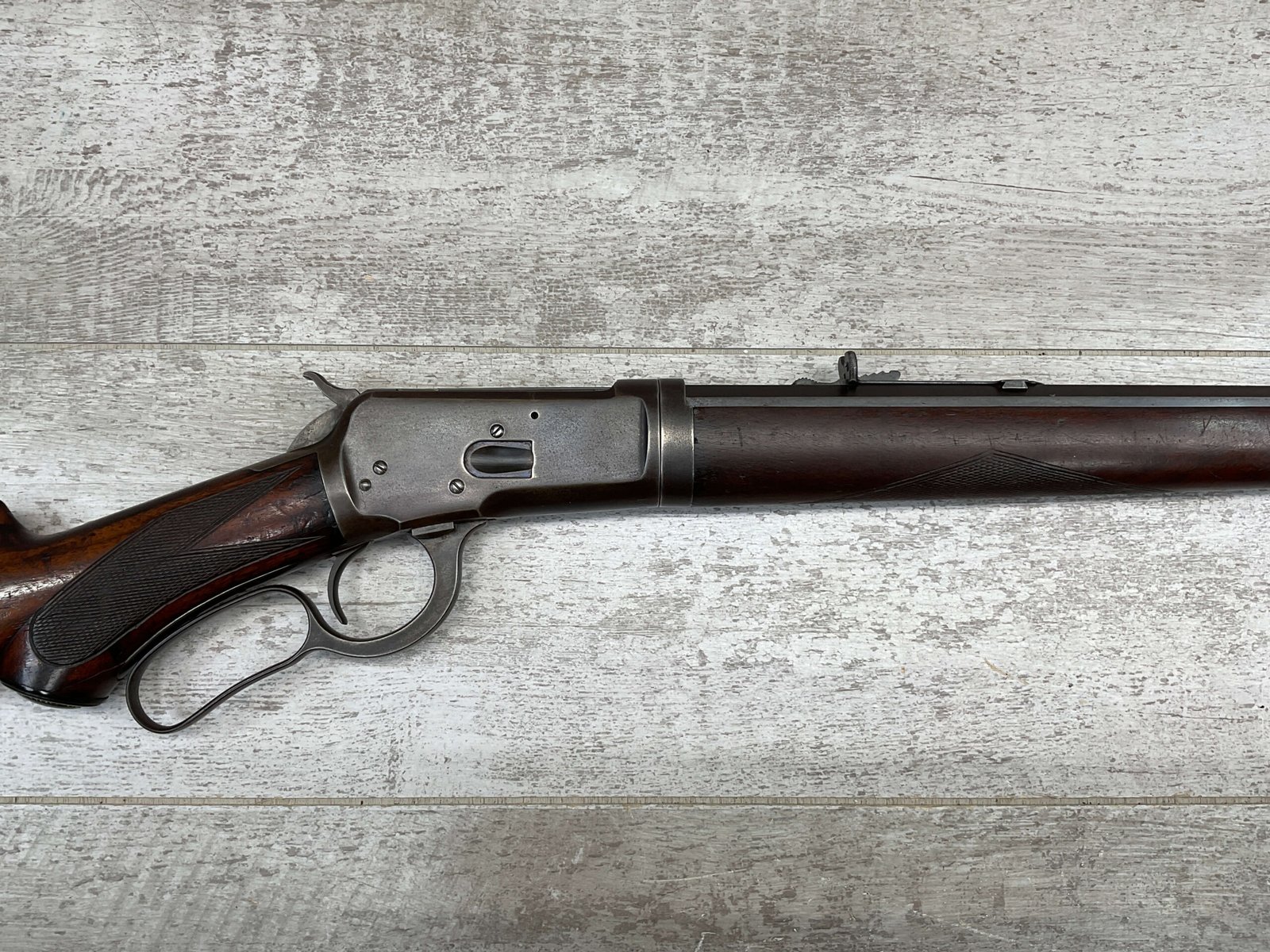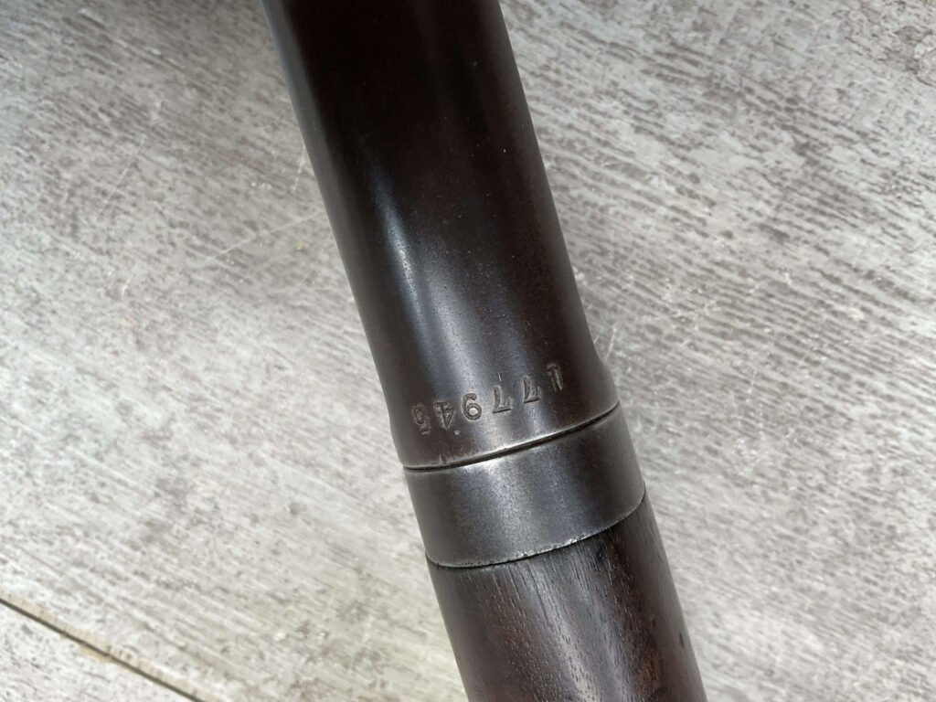 WINCHESTER MODEL 1892 TAKEDOWN 32-20 LEVER ACTION RIFLE, 1901 MFR #177945, 24″ OCTAGON BARREL, EXC BRIGHT BORE & RIFLING, VG PISTOL GRIP WALNUT STOCK W/ CRESCENT BUTT & METAL PLATE (CHECKERING BELIEVED TO BE ADDED LATER) & SHOWING NICKS & DINGS FROM AGE / USE, ORIGINAL FINISH TURNING VERY NICE BROWN PATINA, FULL LENGTH MAGAZINE TUBE W/ TAKEDOWN, BEAUTIFUL FIREARM W/ SMOOTH ACTION!