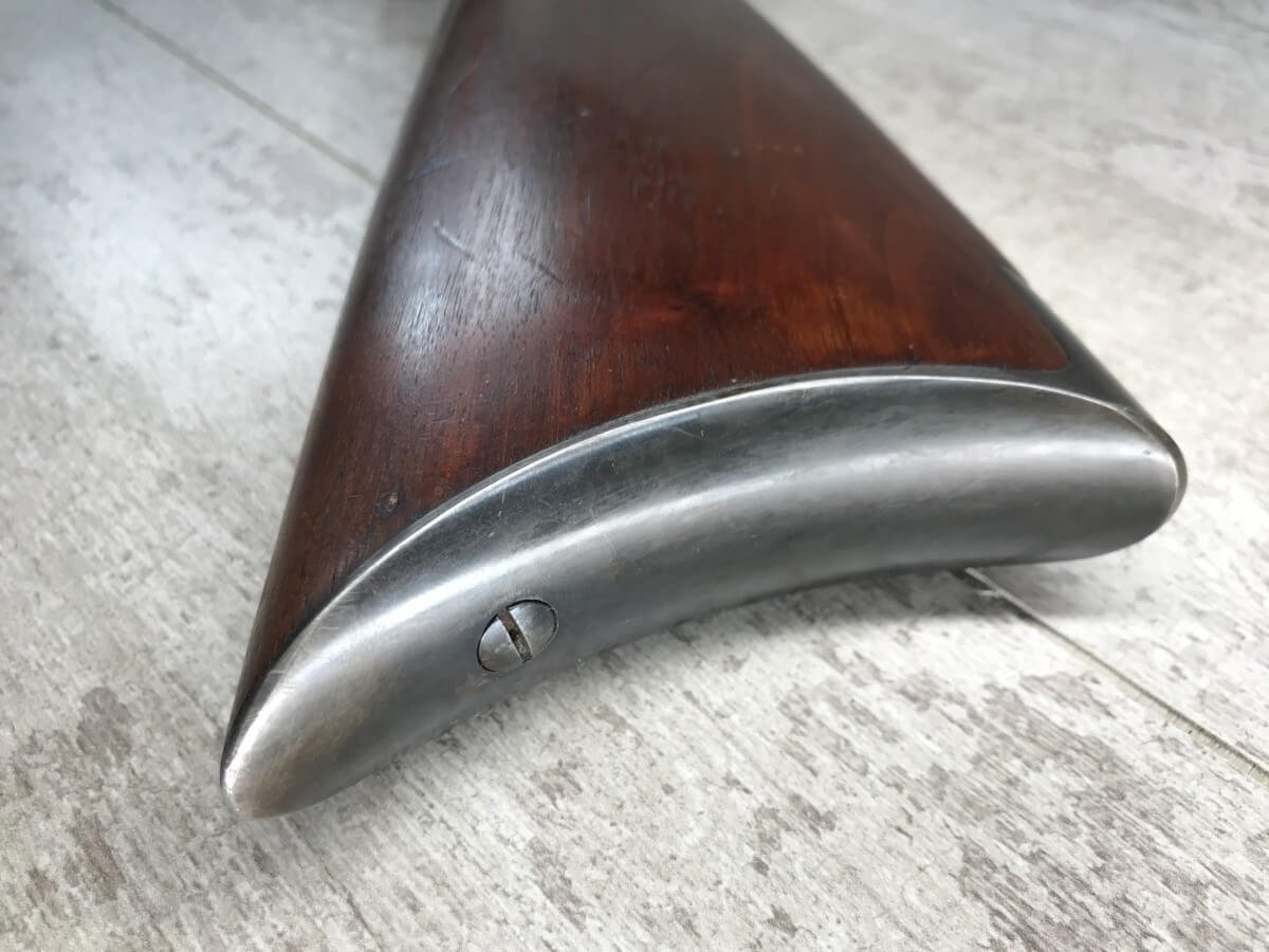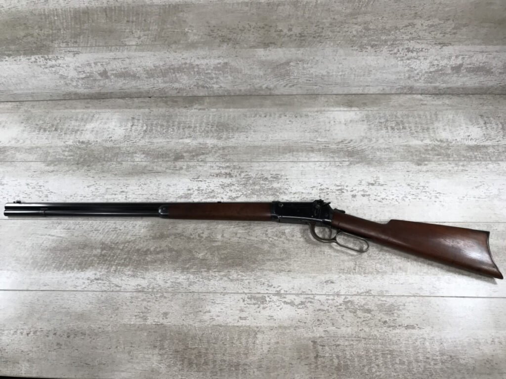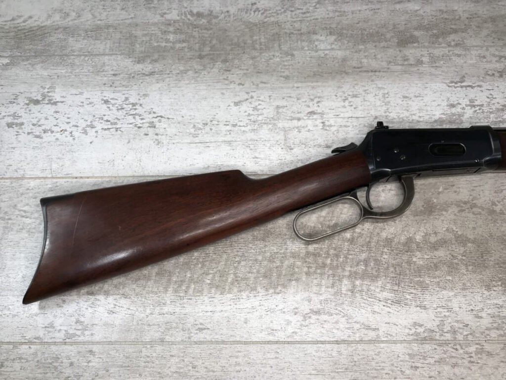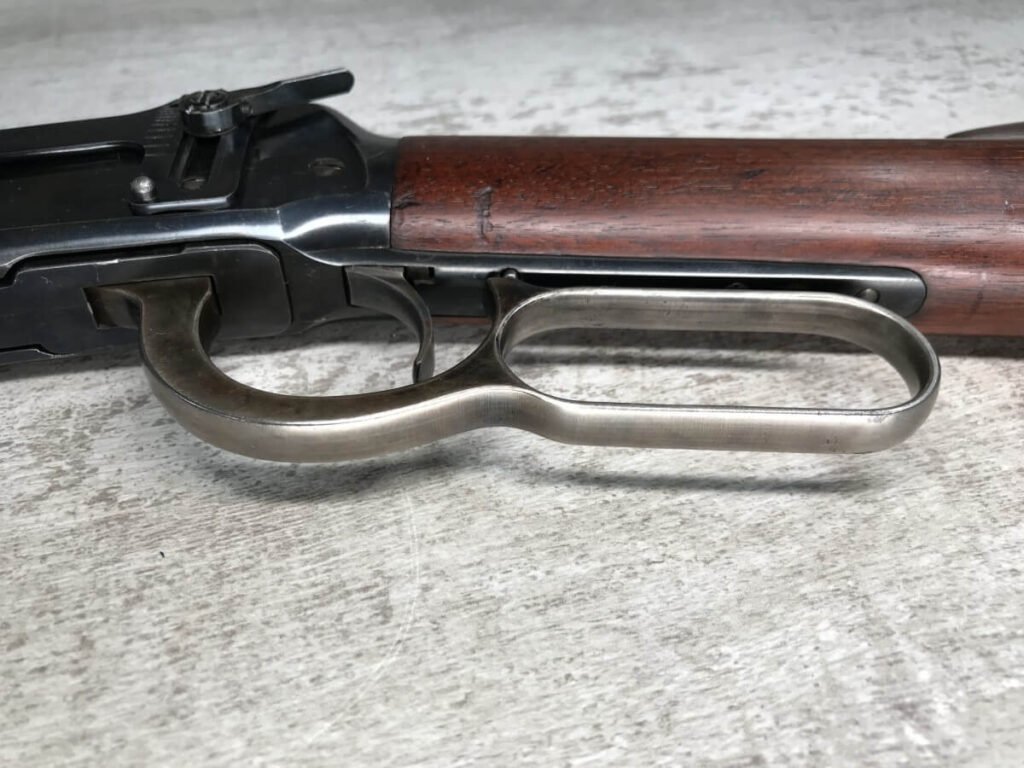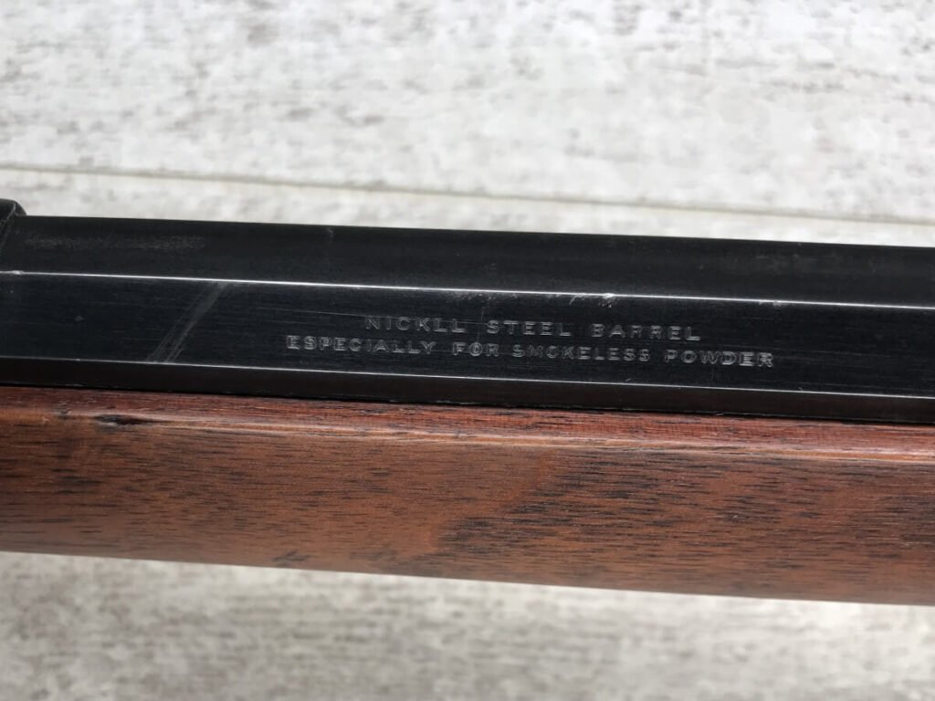 WINCHESTER MODEL 1894 LEVER ACTION RIFLE 1903 MFR #291167 .32WS, 25″ OCTAGON BARREL, 9 ROUND TUBE MAG, EXC WALNUT FOREARM AND BUTT STOCK W/SOME NICKS AND INDENTATIONS, SMOOTH BUTTPLATE, LYMAN’S 21 ADJUSTABLE SIGHT W/”DA” STAMPED ON BACK (BELIEVED TO BE ORIGINAL FROM WINCHESTER), 95% BLUE REMAINING, SOME HANDLING MARKS, LEVER HAS TURNED GREY/BROWN PATINA, BRIGHT BORE WITH EXC RIFLING, STRONG ACTION, 95% OVERALL