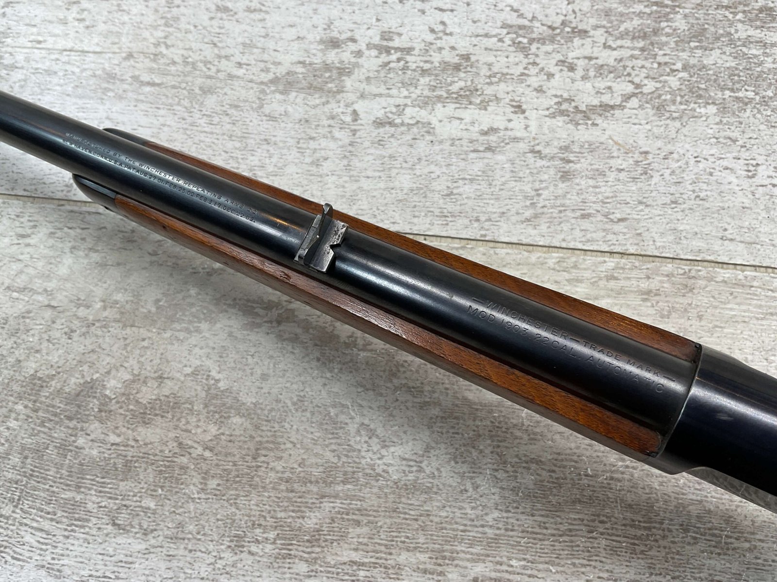 The Winchester Model 1903 is a semi-automatic rifle made by Winchester from 1903 to 1932. It shoots .22 WRA rimfire cartridges and holds up to 10 rounds in its tubular magazine. It’s popular for target shooting and small game hunting.