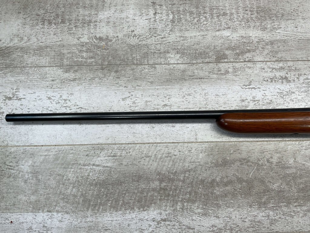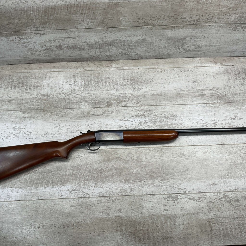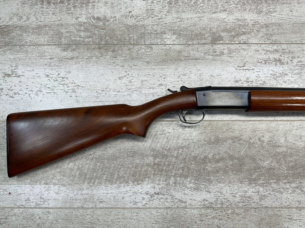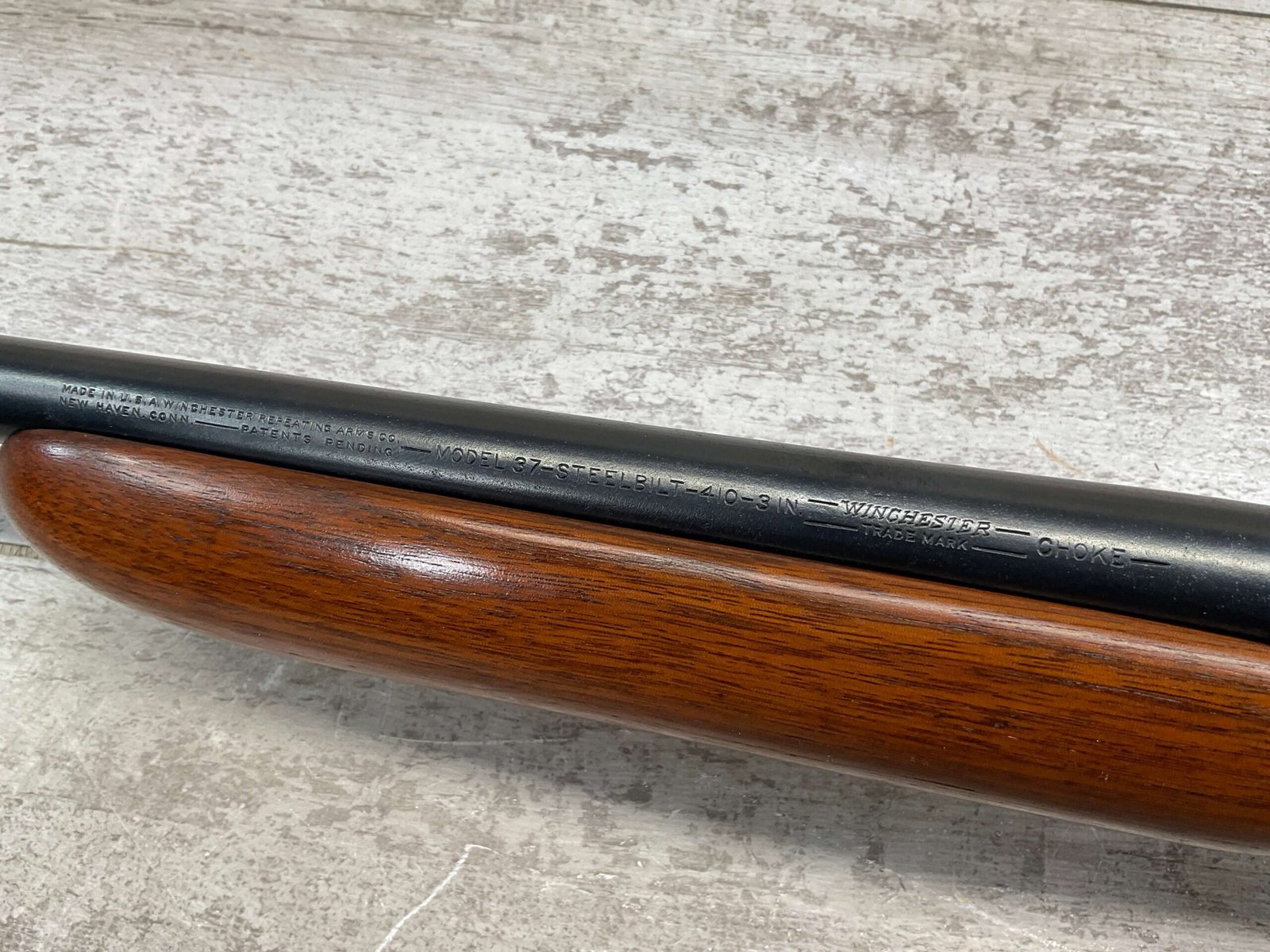 WINCHESTER MODEL 37 STEELBILT SINGLE SHOT SHOTGUN, .410GA, 3″ NSN, 28″ BARREL FULL CHOKE, EXC BRIGHT MIRROR BORE, EXC BLUE, EXC WOOD STOCK W/MINIMAL WEAR, COPPER BEAD END SIGHT, ORIGINAL PLASTIC RECOIL PAD, LOP 13.5″ OVERALL, 98+% OVERALL