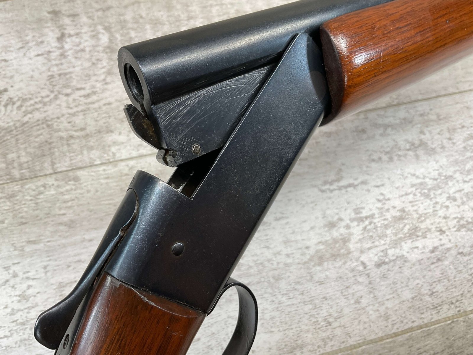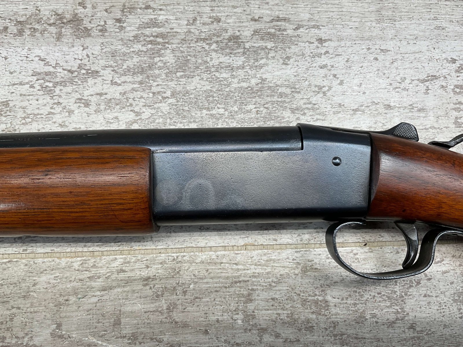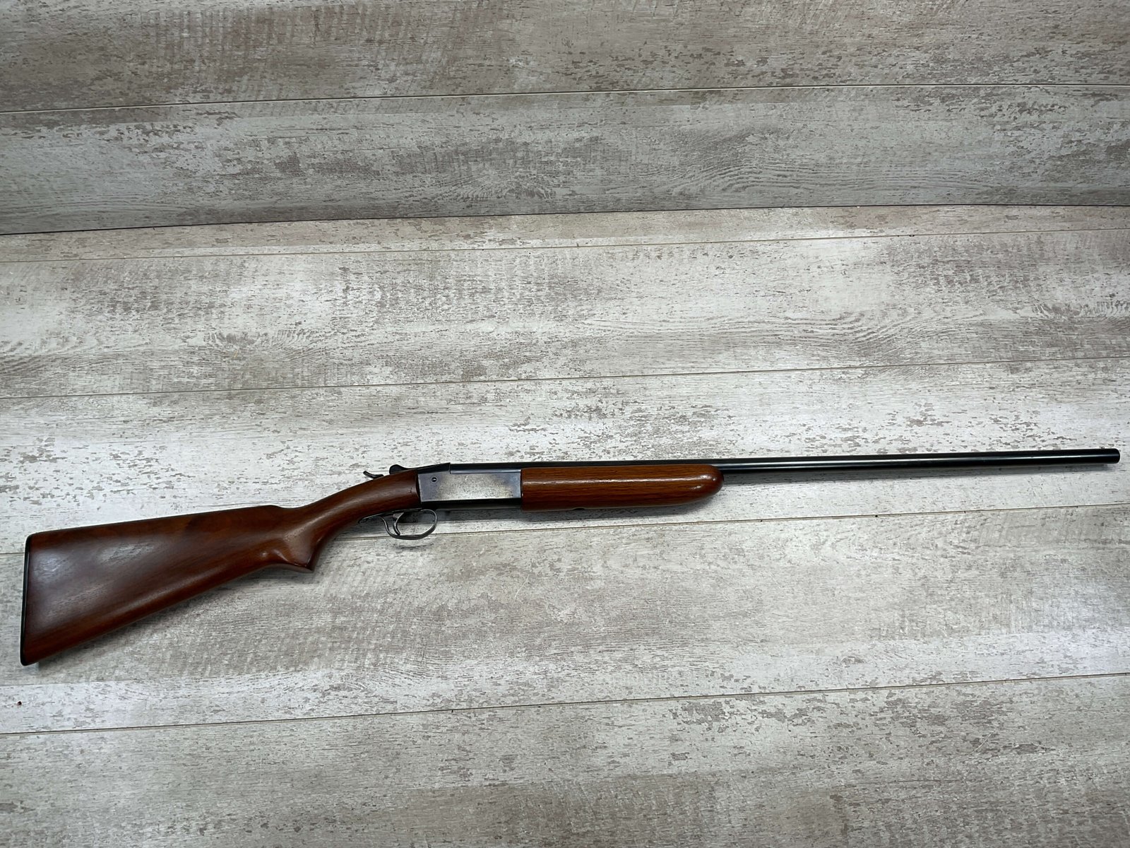 WINCHESTER MODEL 37 STEELBILT SINGLE SHOT SHOTGUN, .410GA, 3″ NSN, 28″ BARREL FULL CHOKE, EXC BRIGHT MIRROR BORE, EXC BLUE, EXC WOOD STOCK W/MINIMAL WEAR, COPPER BEAD END SIGHT, ORIGINAL PLASTIC RECOIL PAD, LOP 13.5″ OVERALL, 98+% OVERALL