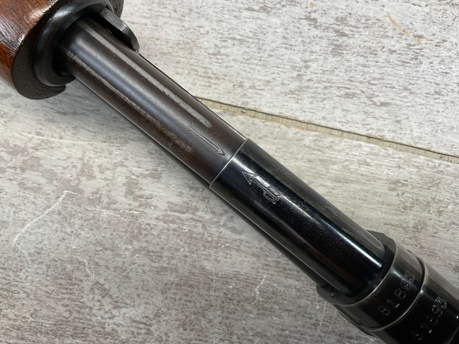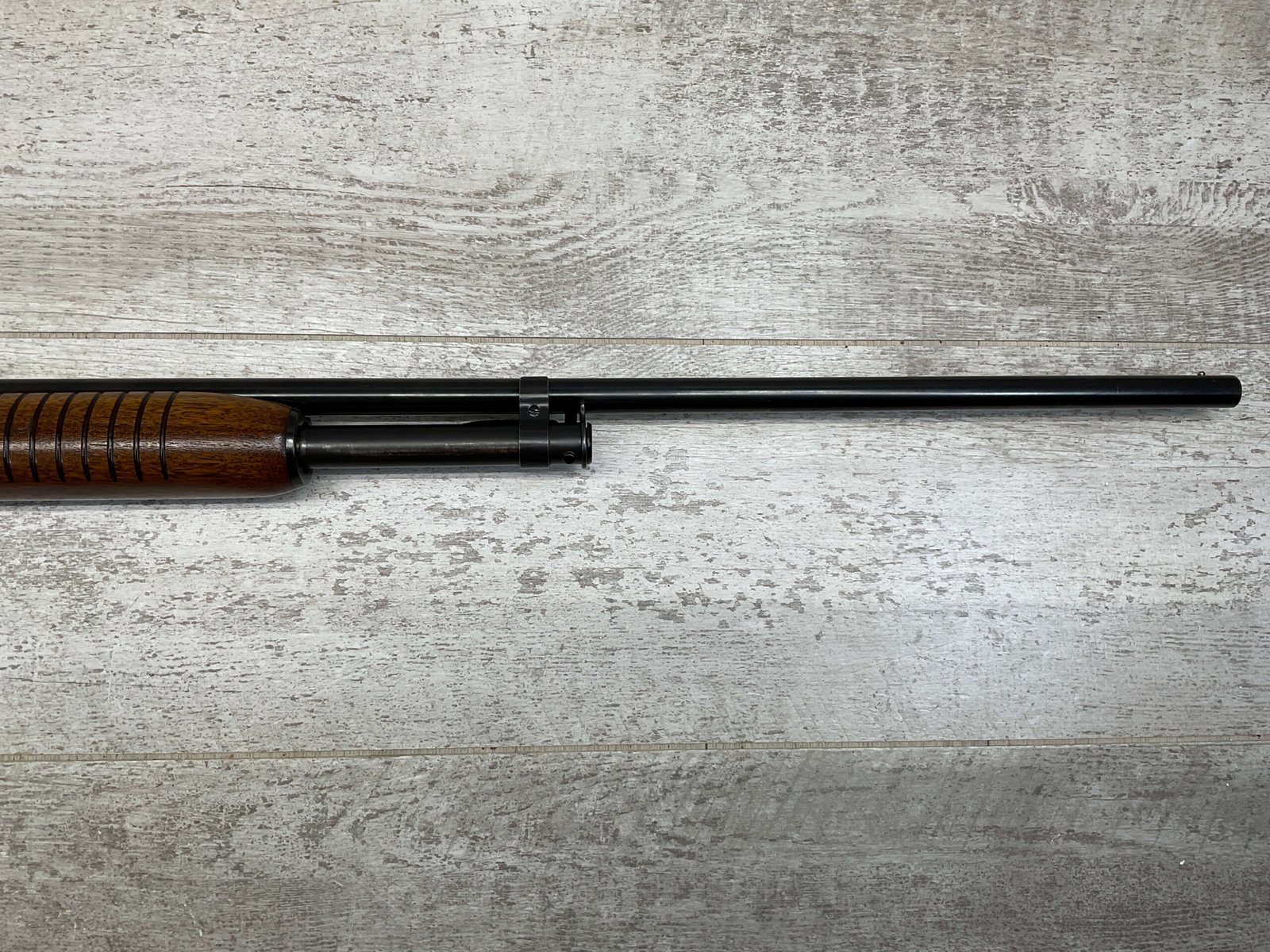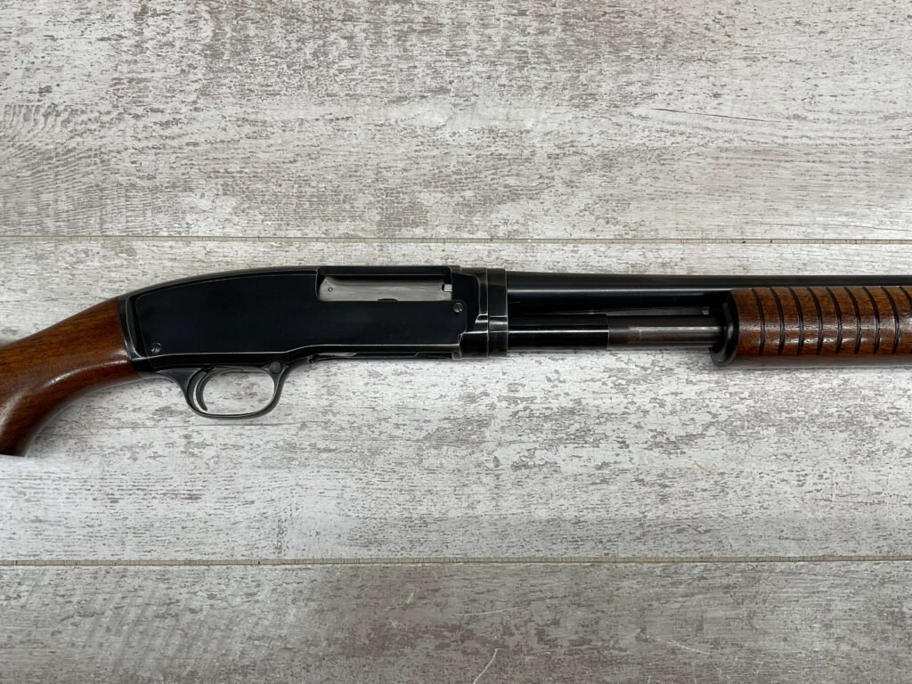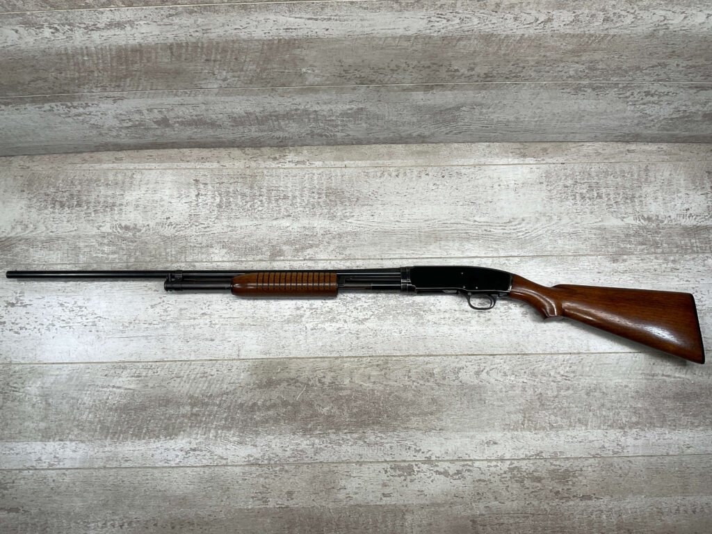 WINCHESTER MODEL 42 .410 PUMP SHOTGUN #81893, 1950 MFR, 28″ BARREL, 98%+ ORIGINAL BLUE FINISH W/ VERY LIGHT HIGH EDGE WEAR, EXC PISTOL GRIP BEAUTIFUL WALNUT STOCK W/ VERY LIGHT HANDLING MARKS & BLACK PLASTIC BUTT PLATE, NEAR MINT BORE, FULL CHOKE, 1/2 TUBE MAGAZINE, NOT SURE YOU’LL FIND ONE NICER!! 98%+ OVERALL