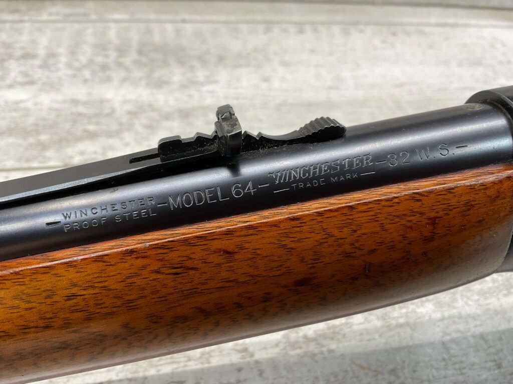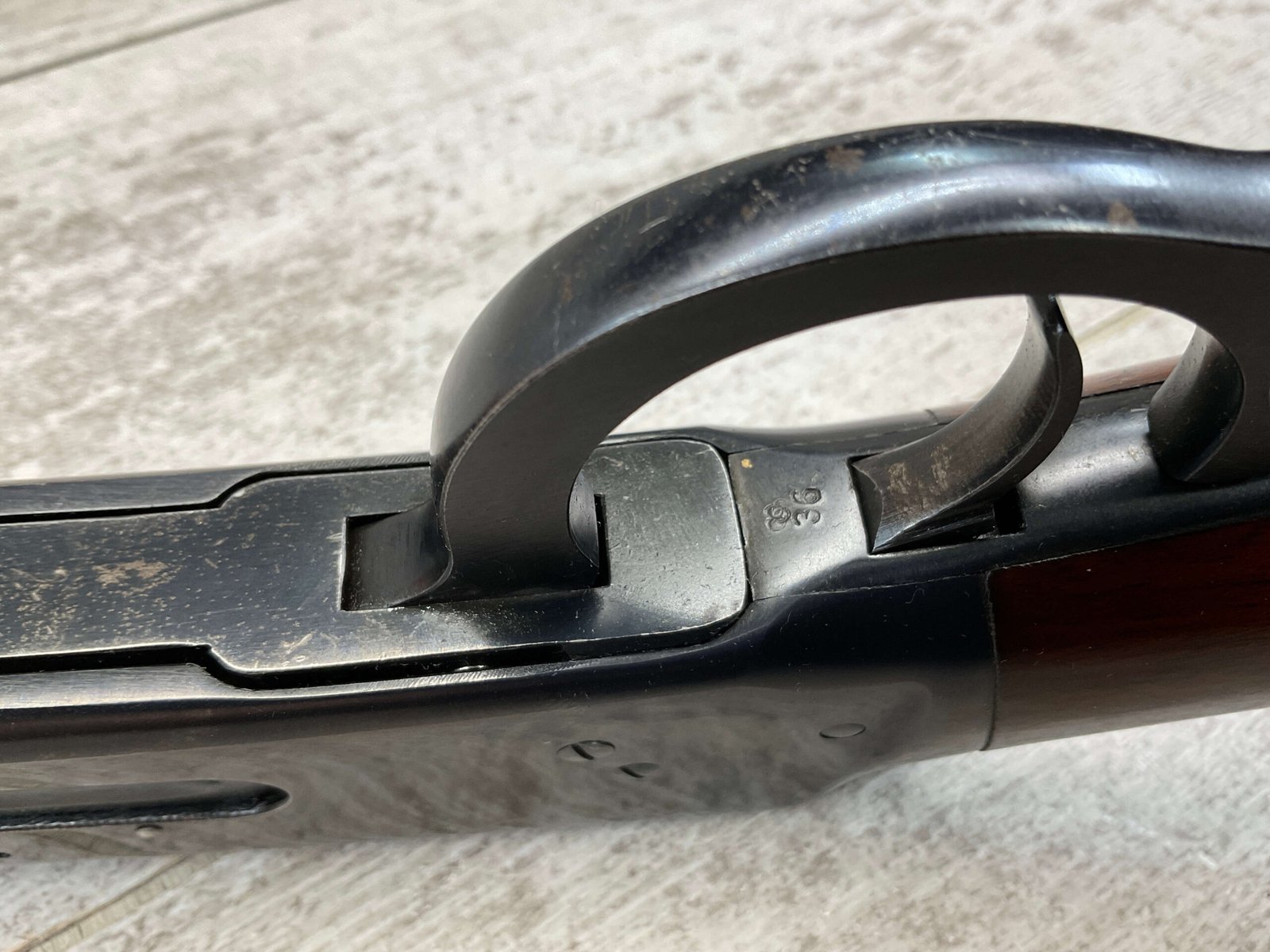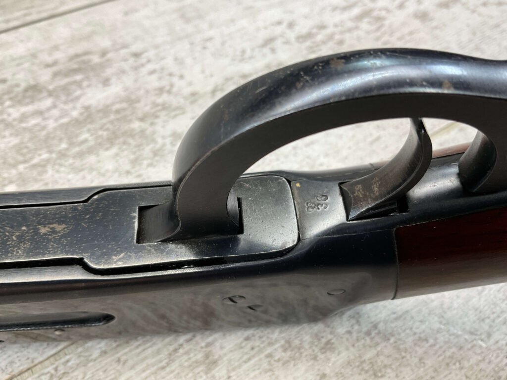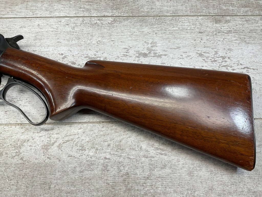 WINCHESTER MODEL 53 25-20 CAL LEVER ACTION RIFLE, 1927 MFR #980258, 22″ ROUND BARREL, GREAT BORE & RIFLING, EXC WALNUT STOCK W/ SHOTGUN BUTT & METAL PLATE, 93% ORIGINAL BLUE FINISH W/ RECEIVER TURNING PATINA & LIGHT PITTING IN A COUPLE OF AREAS, BUTTON MAGAZINE TUBE, EXC WALNUT STOCK, BLADE FRONT SIGHT & FLAT TOP REAR SIGHT, VERY NICE & READY TO ADD TO YOUR COLLECTION!!
