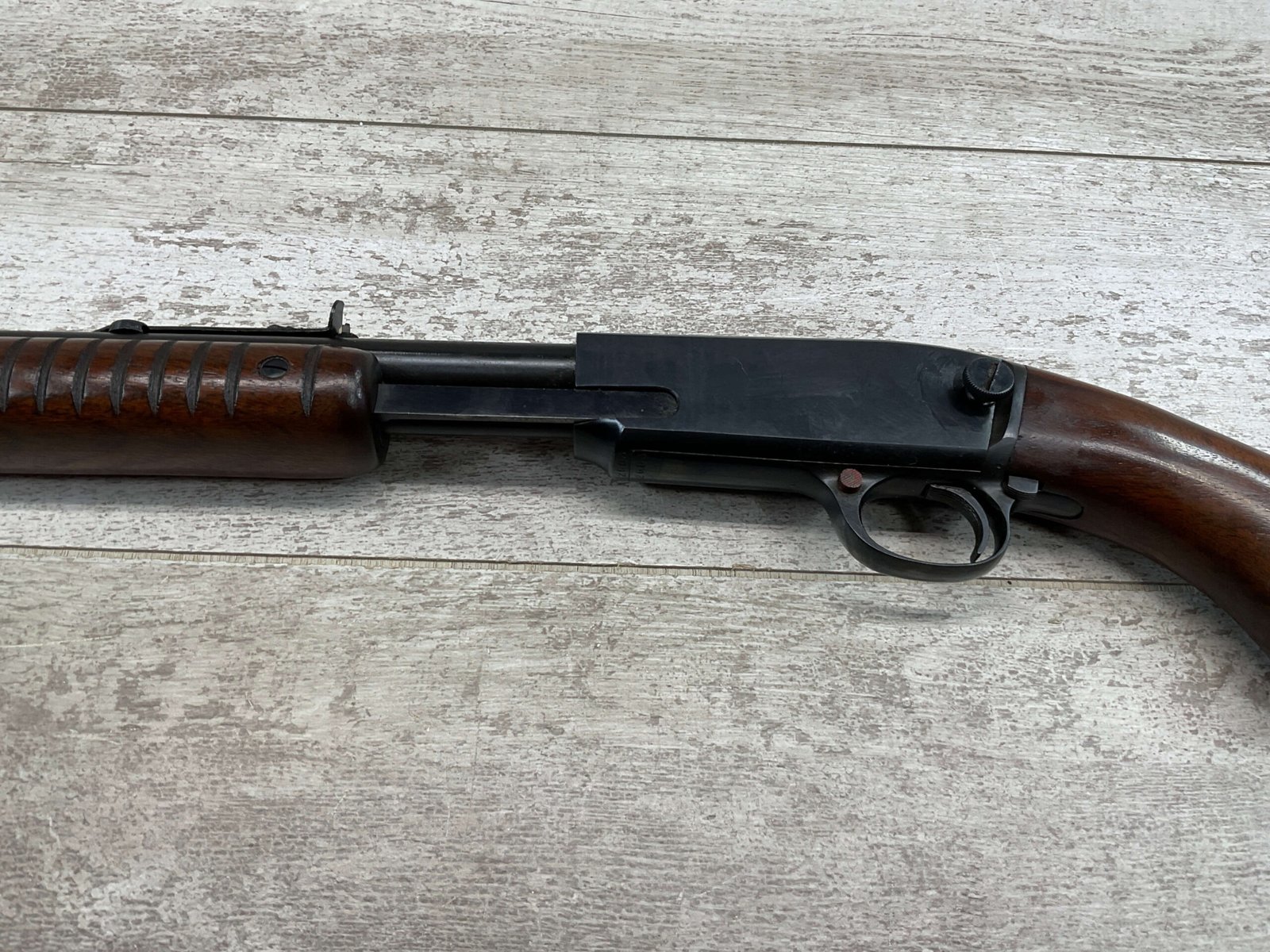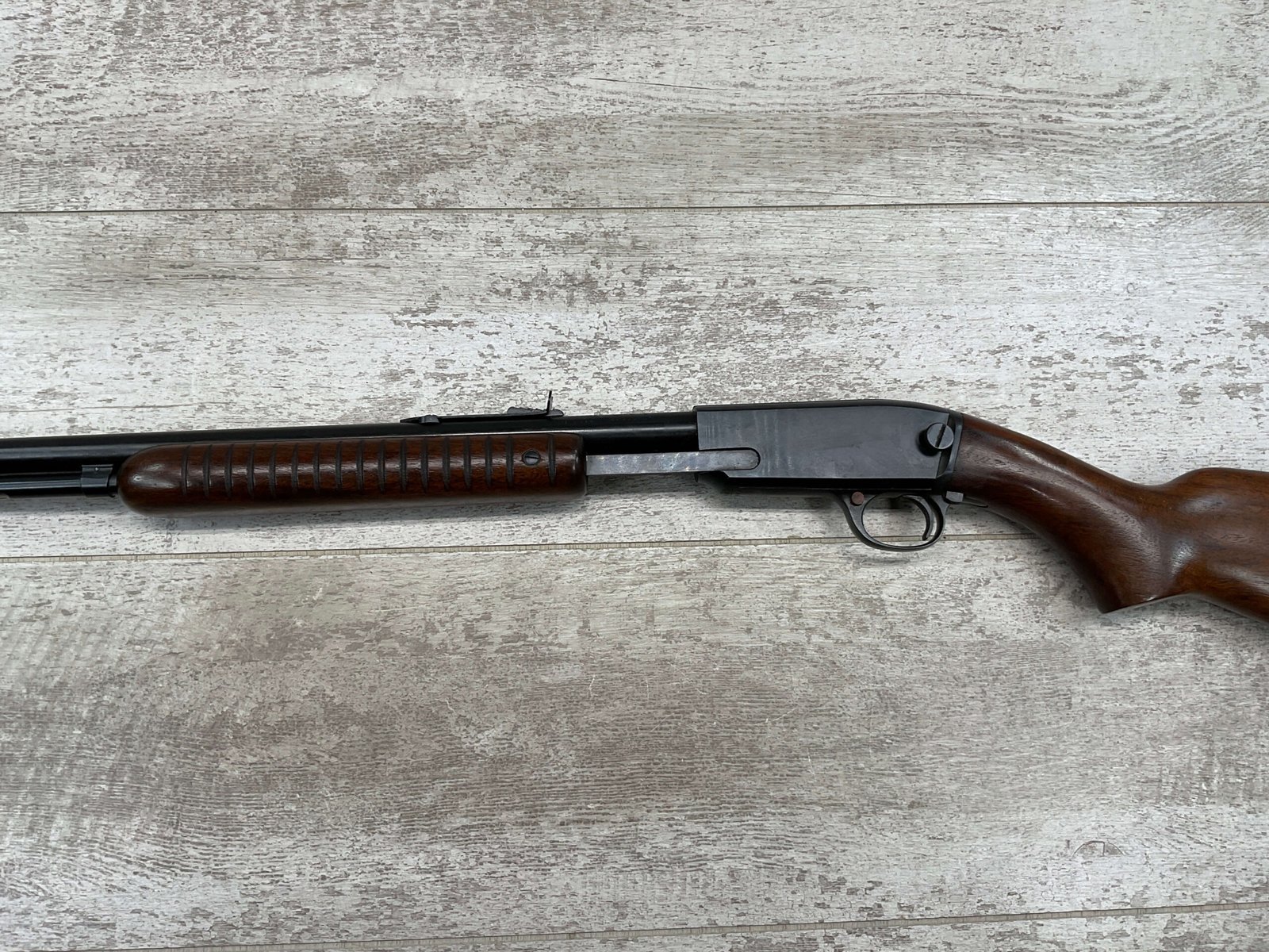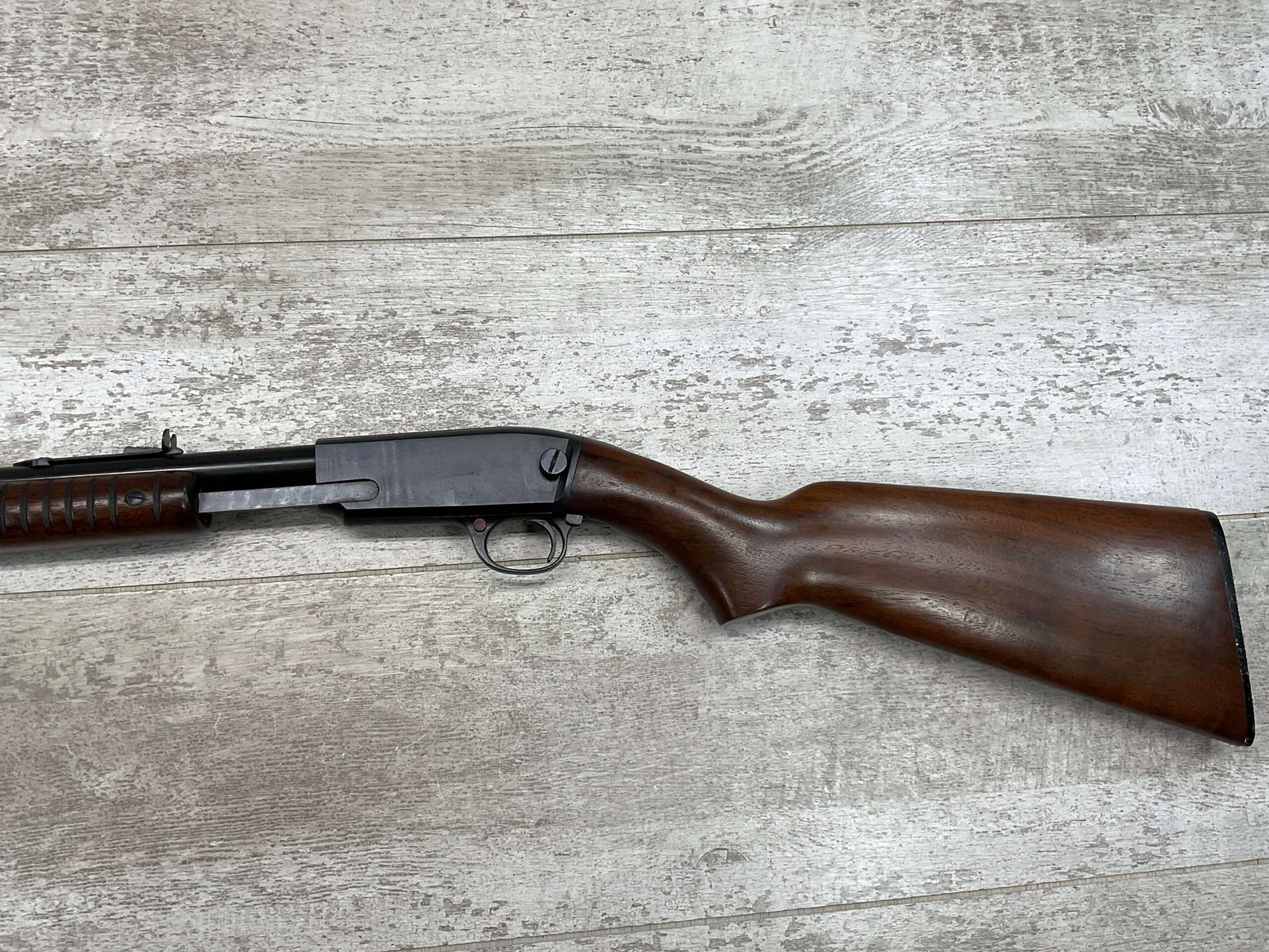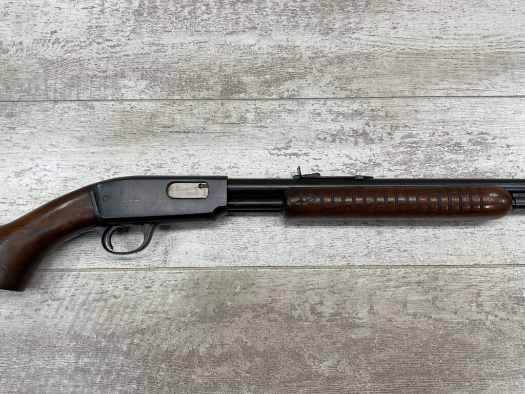 WINCHESTER MODEL 61 .22 CALIBER PUMP ACTION RIFLE, 1958 MFR #262683 98% ORIGINAL BLUE, VERY LIGHT PIN PRICKING ON LEFT SIDE OF RECEIVER, EXC 24″ BARREL, EXC BRIGHT BORE & RIFLING (9.5/10), EXC WALNUT STOCK W/VIRTUALLY NO HANDLING MARKS & ONE MINOR NICK ON LEFT SIDE OF FOREGRIP, VERY SMOOTH ACTION, THIS ONE WON’T LAST LONG!