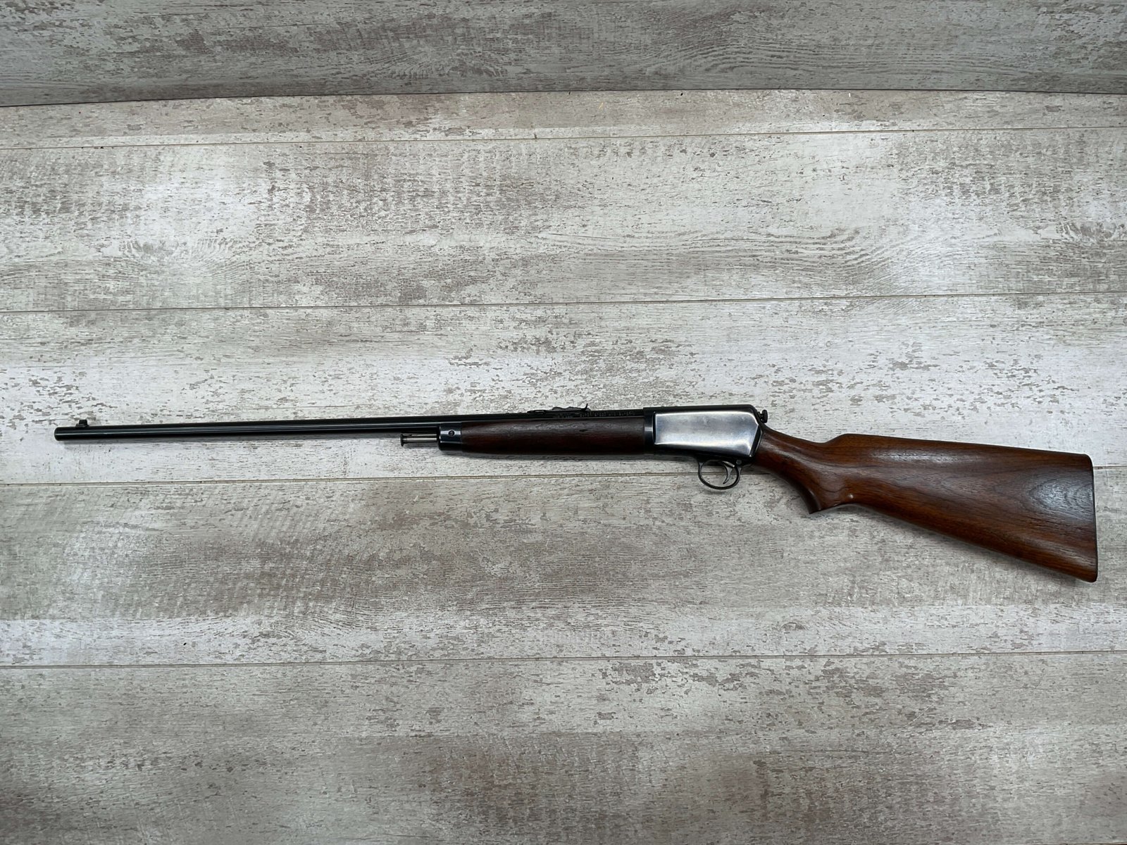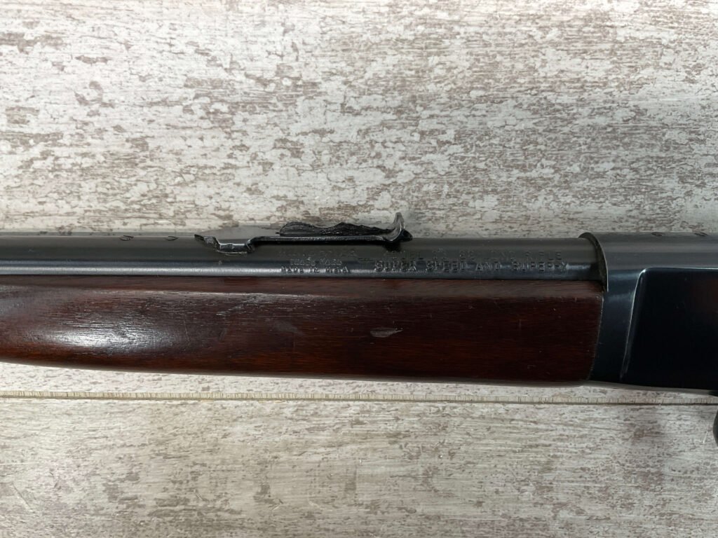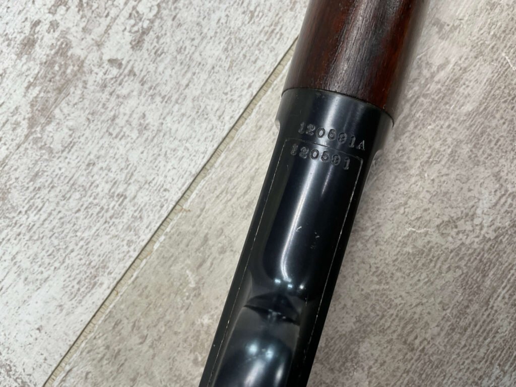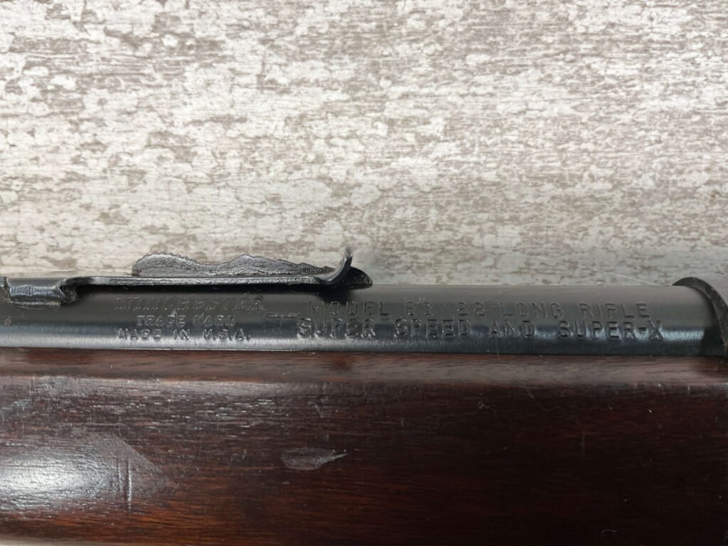 WINCHESTER MODEL 63 RIFLE, 1953 MRF, RARE #120591A, .22LR, 23″ BARREL, EXC BRIGHT BORE & RIFLING, 99% ORIGINAL BLUE W/LIGHT HANDLING MARKS, EXC WALNUT STOCK, ORIGINAL SIGHTS, BEAUTIFUL EARLY MODEL RIFLE!