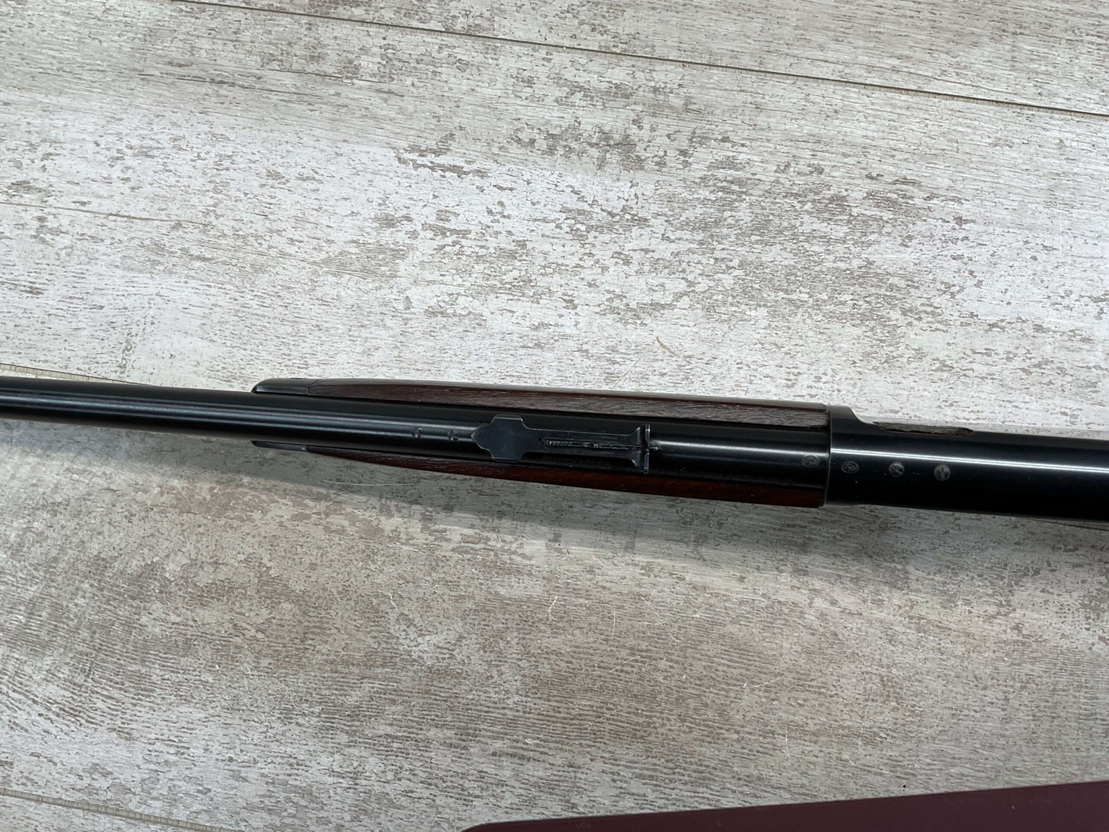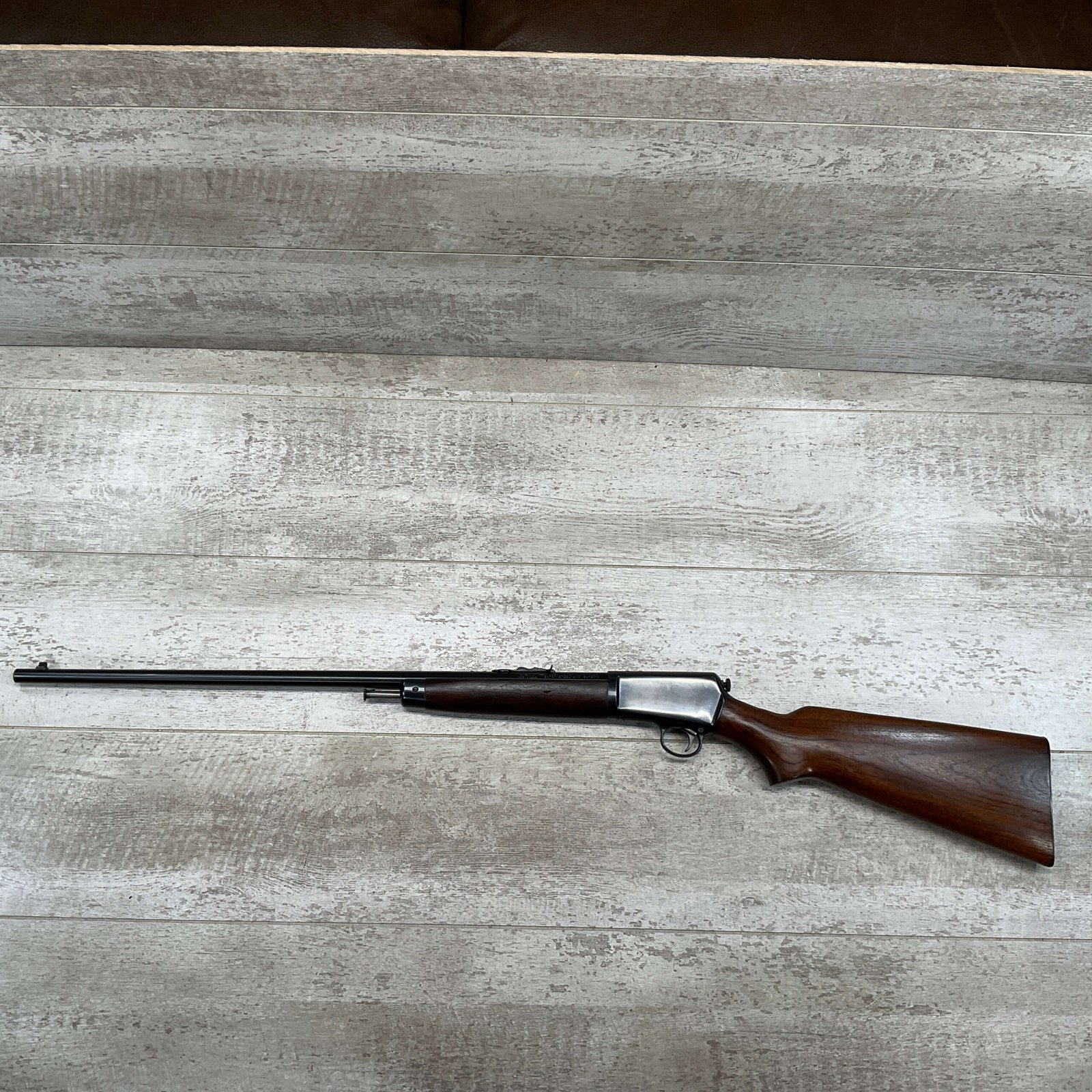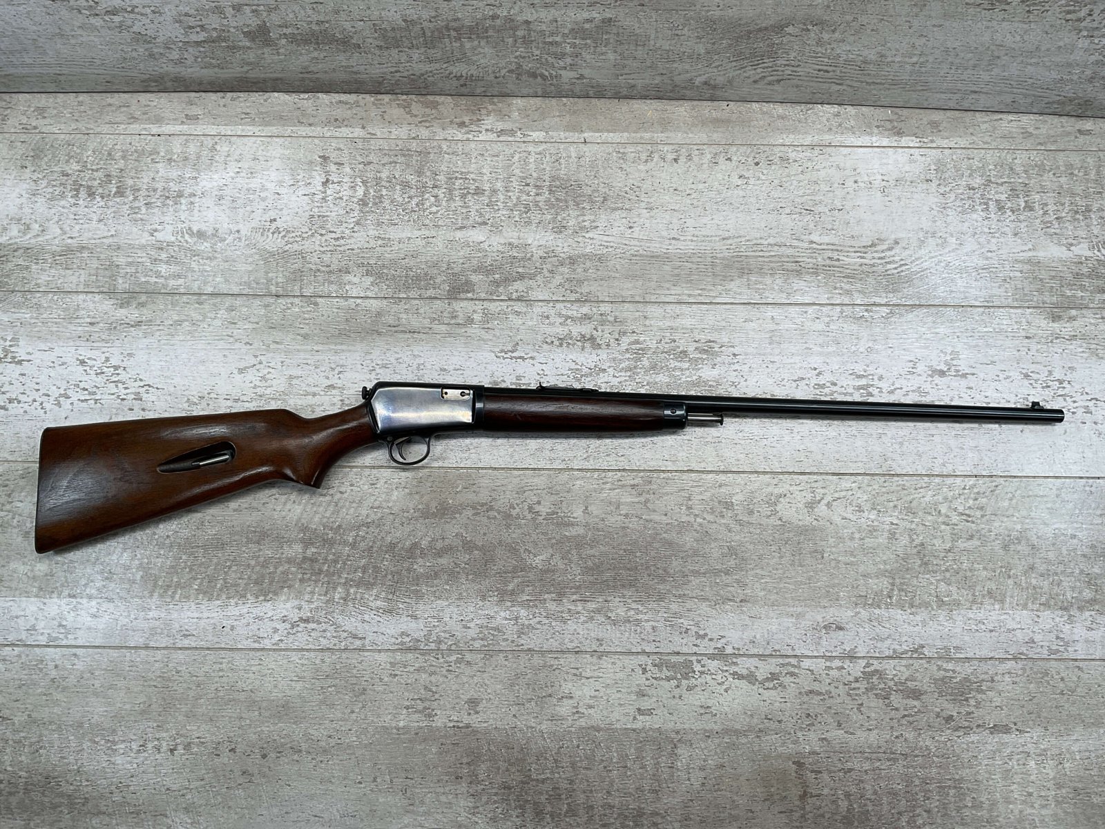 WINCHESTER MODEL 63 RIFLE, 1953 MRF, RARE #120591A, .22LR, 23″ BARREL, EXC BRIGHT BORE & RIFLING, 99% ORIGINAL BLUE W/LIGHT HANDLING MARKS, EXC WALNUT STOCK, ORIGINAL SIGHTS, BEAUTIFUL EARLY MODEL RIFLE!