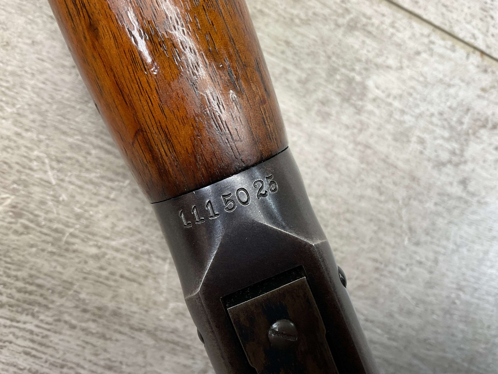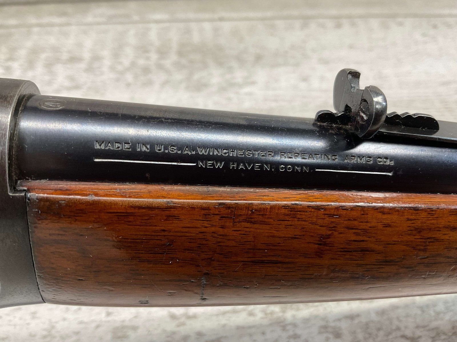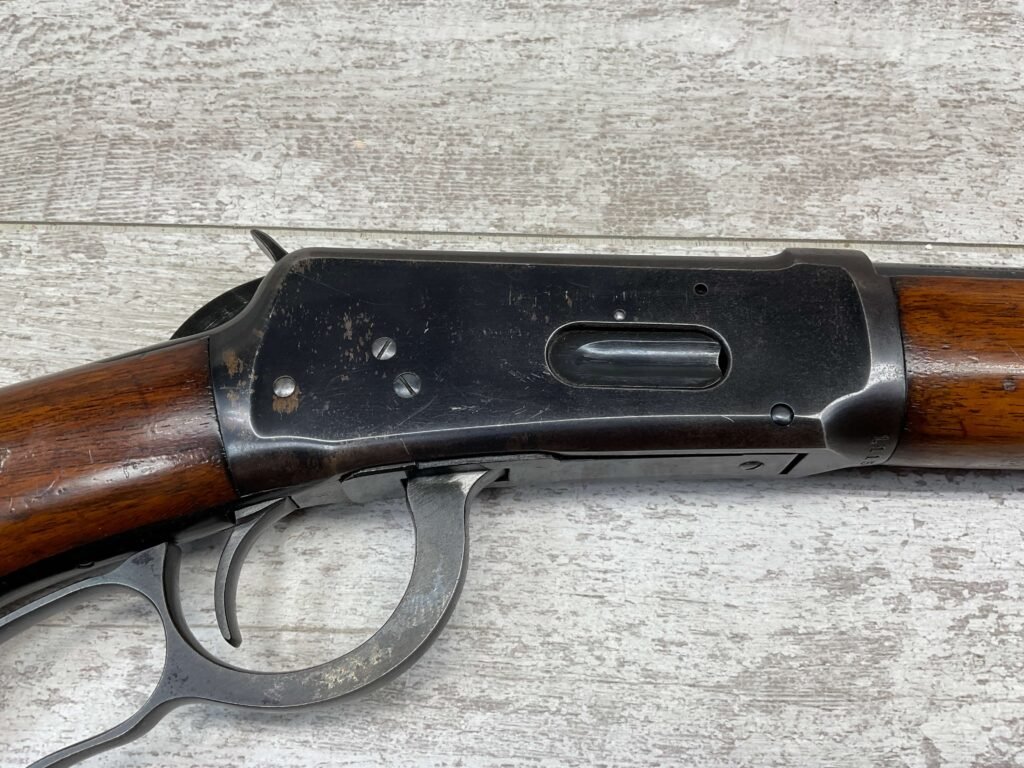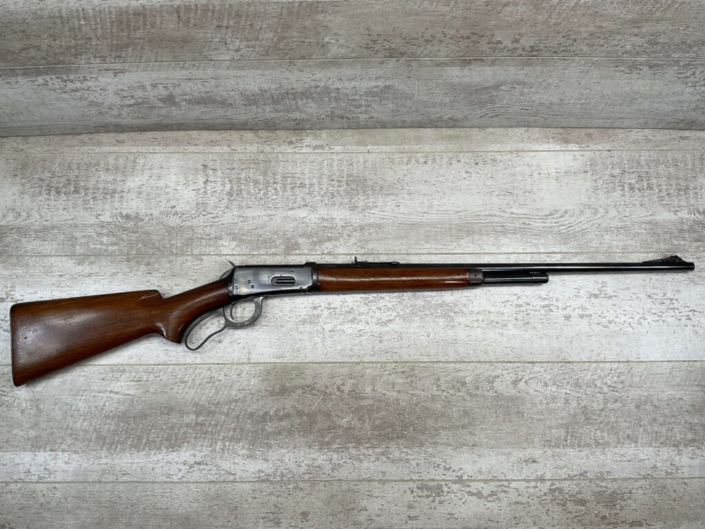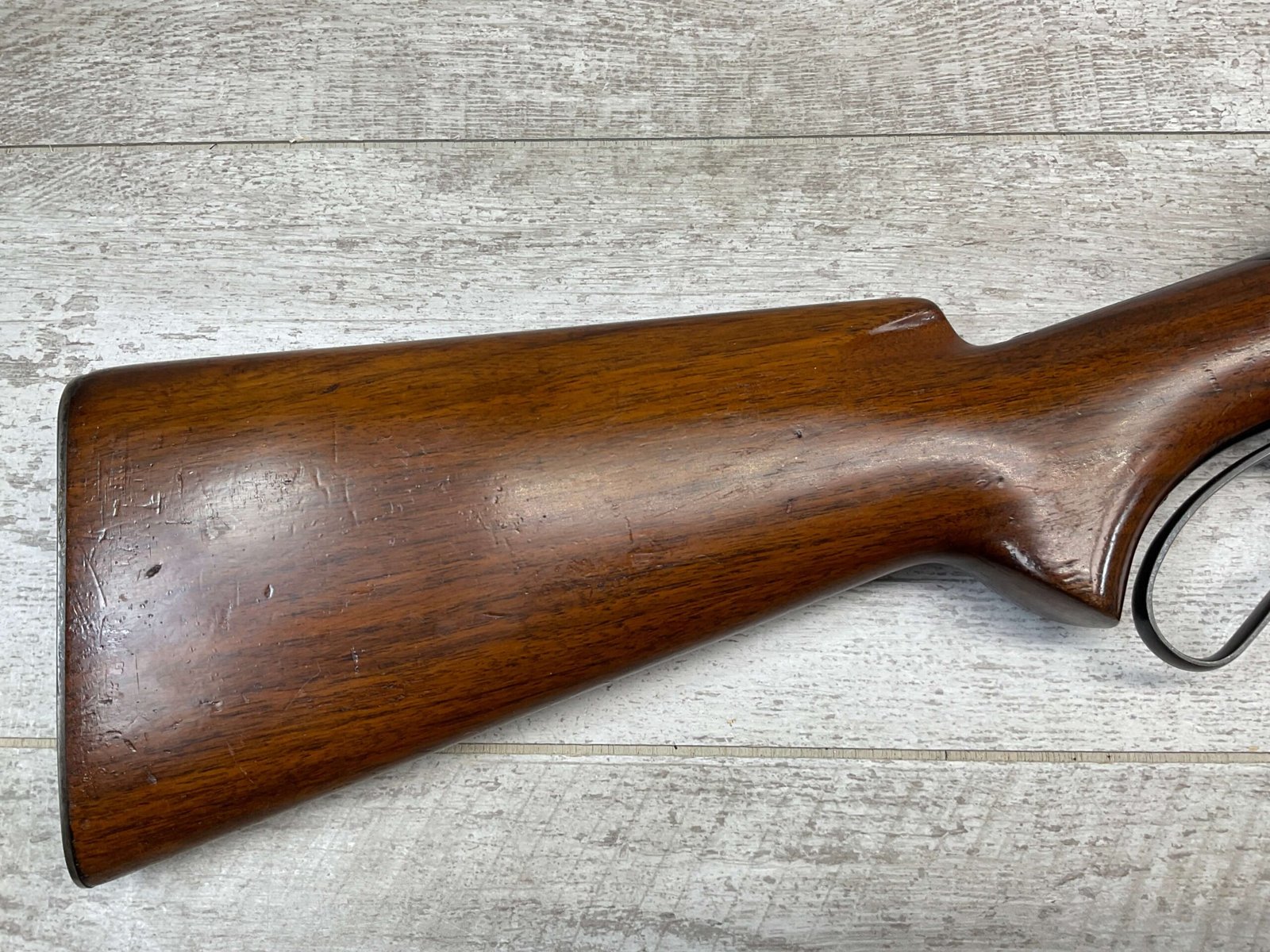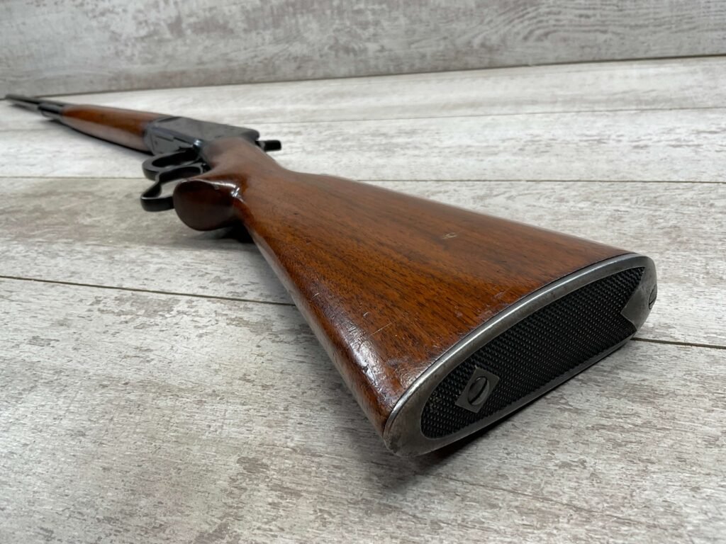 WINCHESTER MODEL 64 32 WS LEVER ACTION RIFLE, 1936 MFR #115025, 24″ ROUND BARREL, 95% ORIGINAL BLUE FINISH W/ LIGHT WEAR ON RECEIVER, EXC WALNUT STOCK W/ PISTOL GRIP & SHOTGUN BUTT STOCK & METAL PLATE, SEMI BUCKHORN REAR SIGHT & BLADE FRONT, 1/2 MAGAZINE TUBE, TYPICAL SMOOTH LEVER ACTION, C&R FFL TRANSFER