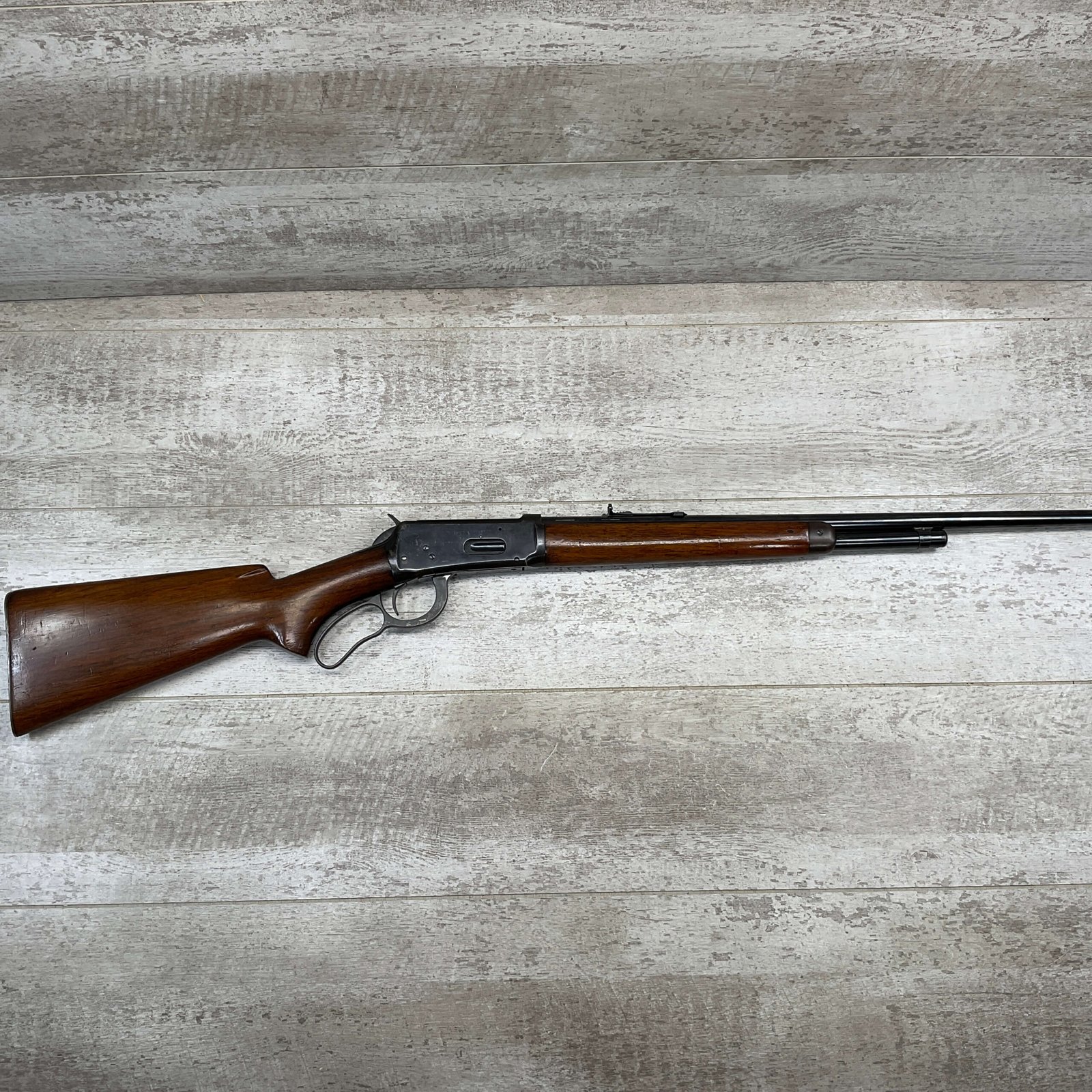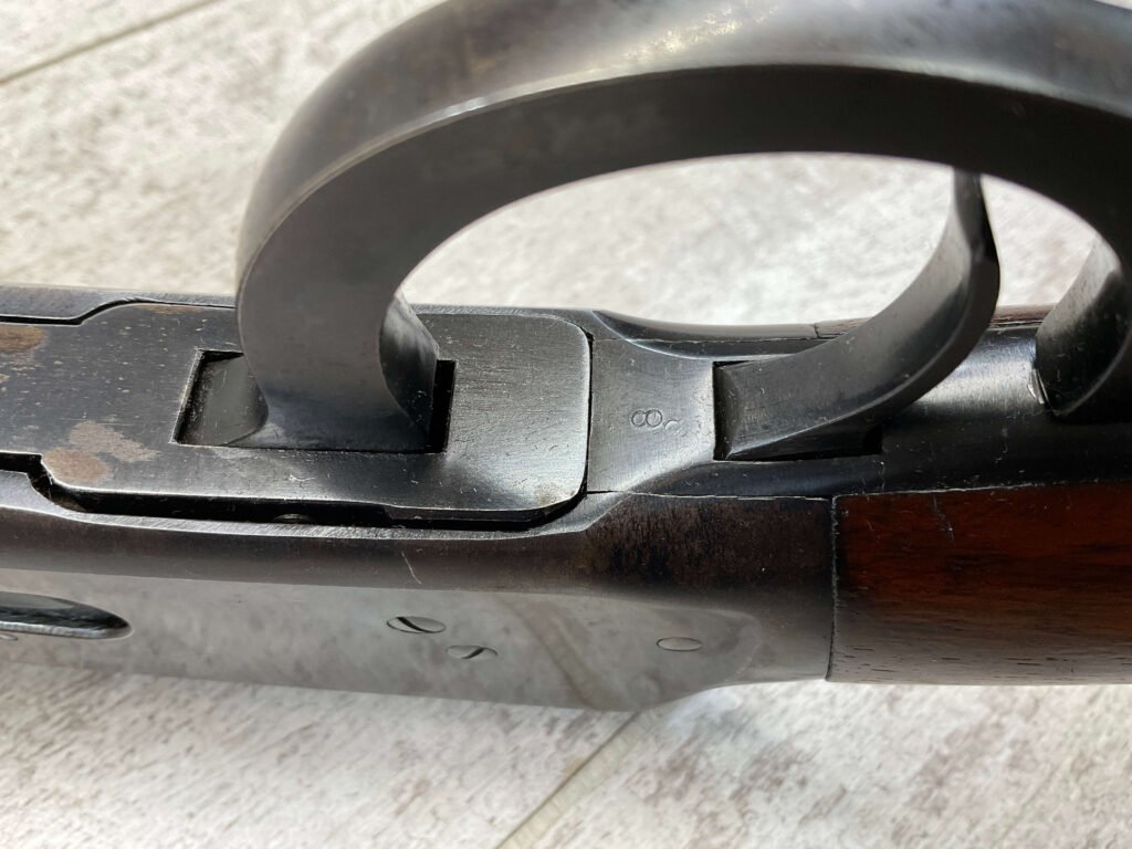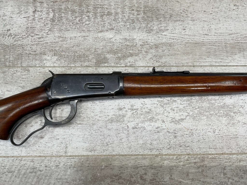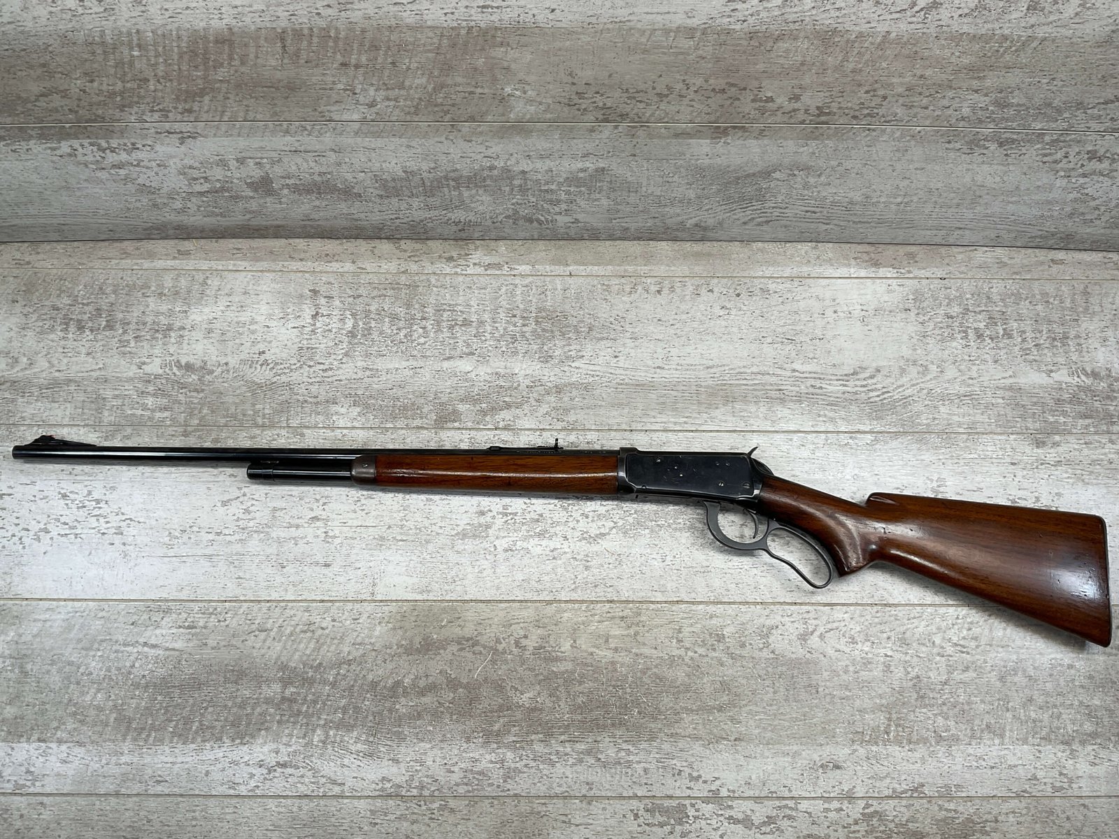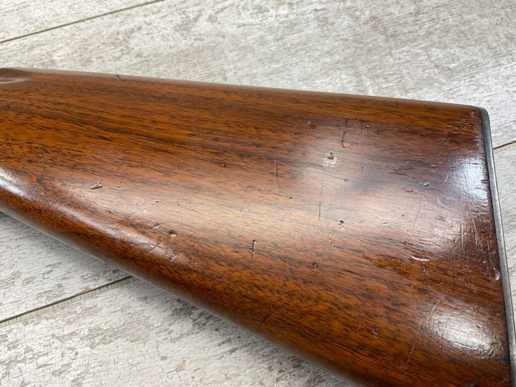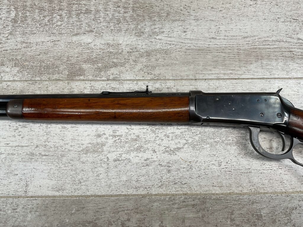 WINCHESTER MODEL 64 32 WS LEVER ACTION RIFLE, 1936 MFR #115025, 24″ ROUND BARREL, 95% ORIGINAL BLUE FINISH W/ LIGHT WEAR ON RECEIVER, EXC WALNUT STOCK W/ PISTOL GRIP & SHOTGUN BUTT STOCK & METAL PLATE, SEMI BUCKHORN REAR SIGHT & BLADE FRONT, 1/2 MAGAZINE TUBE, TYPICAL SMOOTH LEVER ACTION, C&R FFL TRANSFER